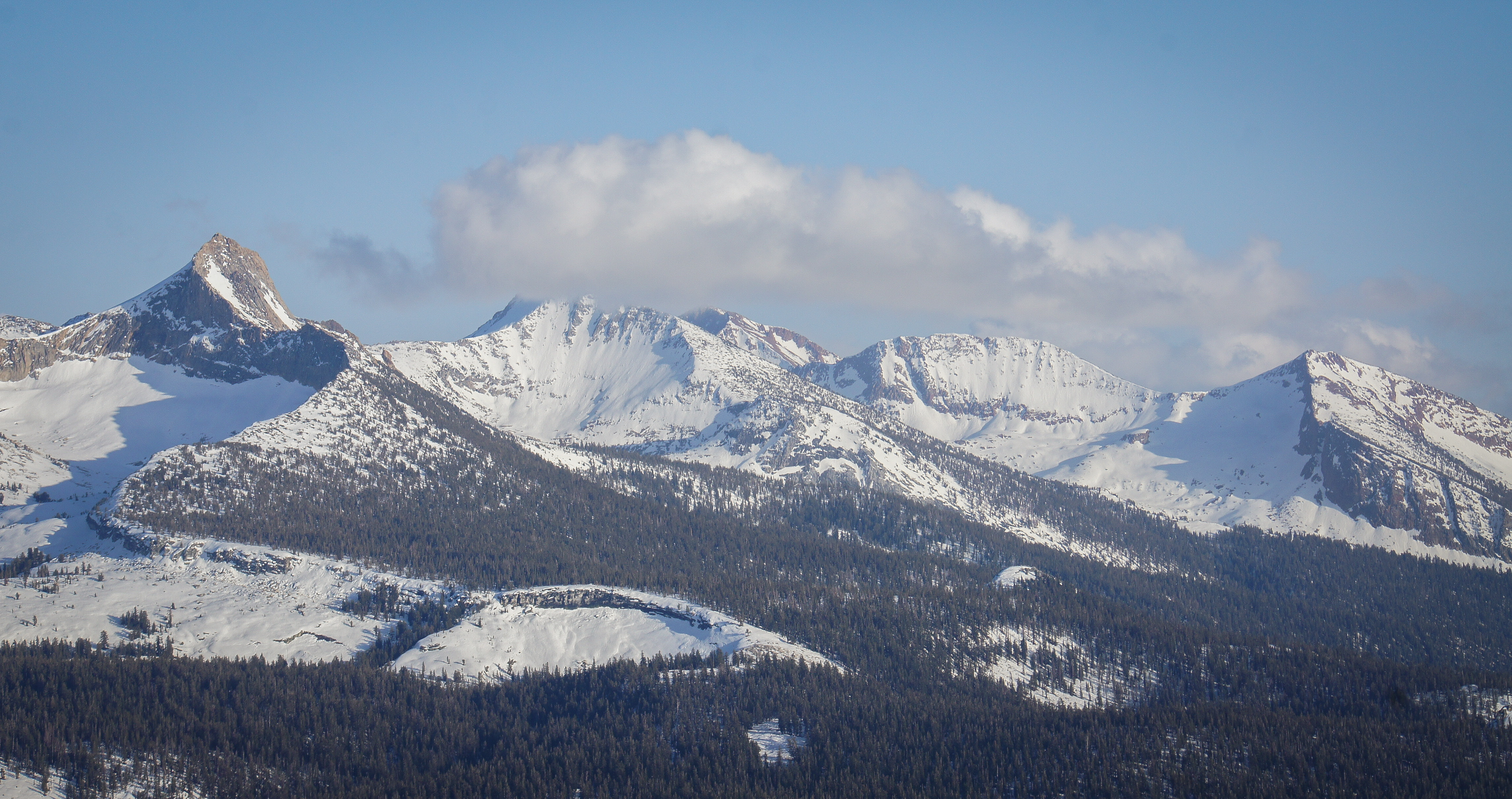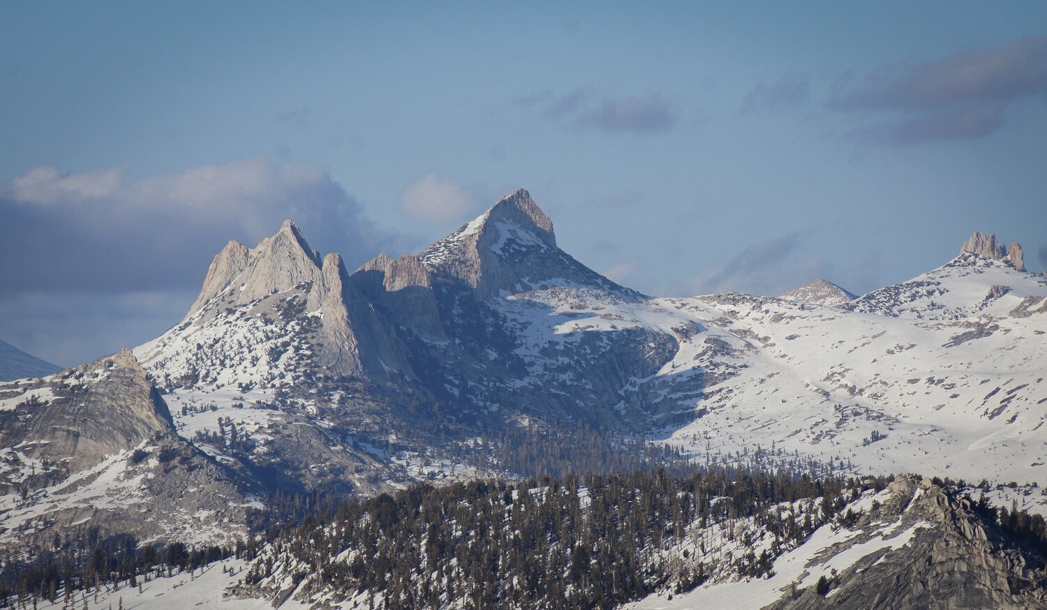 Mount Starr King from higher up somewhere. Somewhere around 8,000’ we started to hit patchy snow. But it wasn’t too deep, so we pressed on.