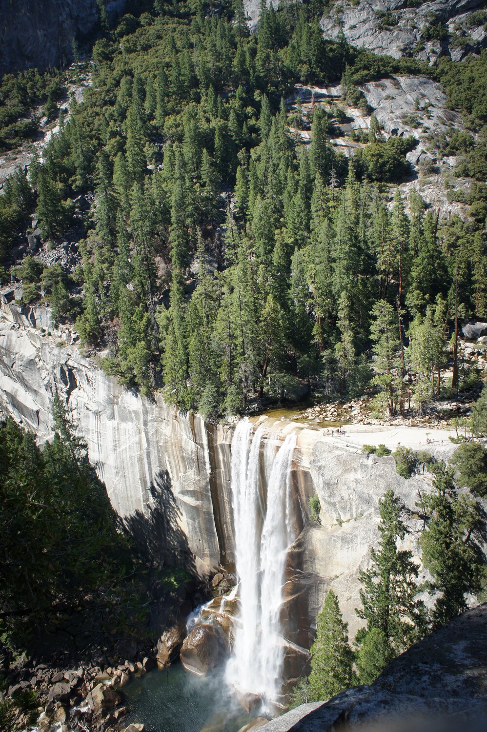 Vernal Falls and the little lookout point from the trail above.