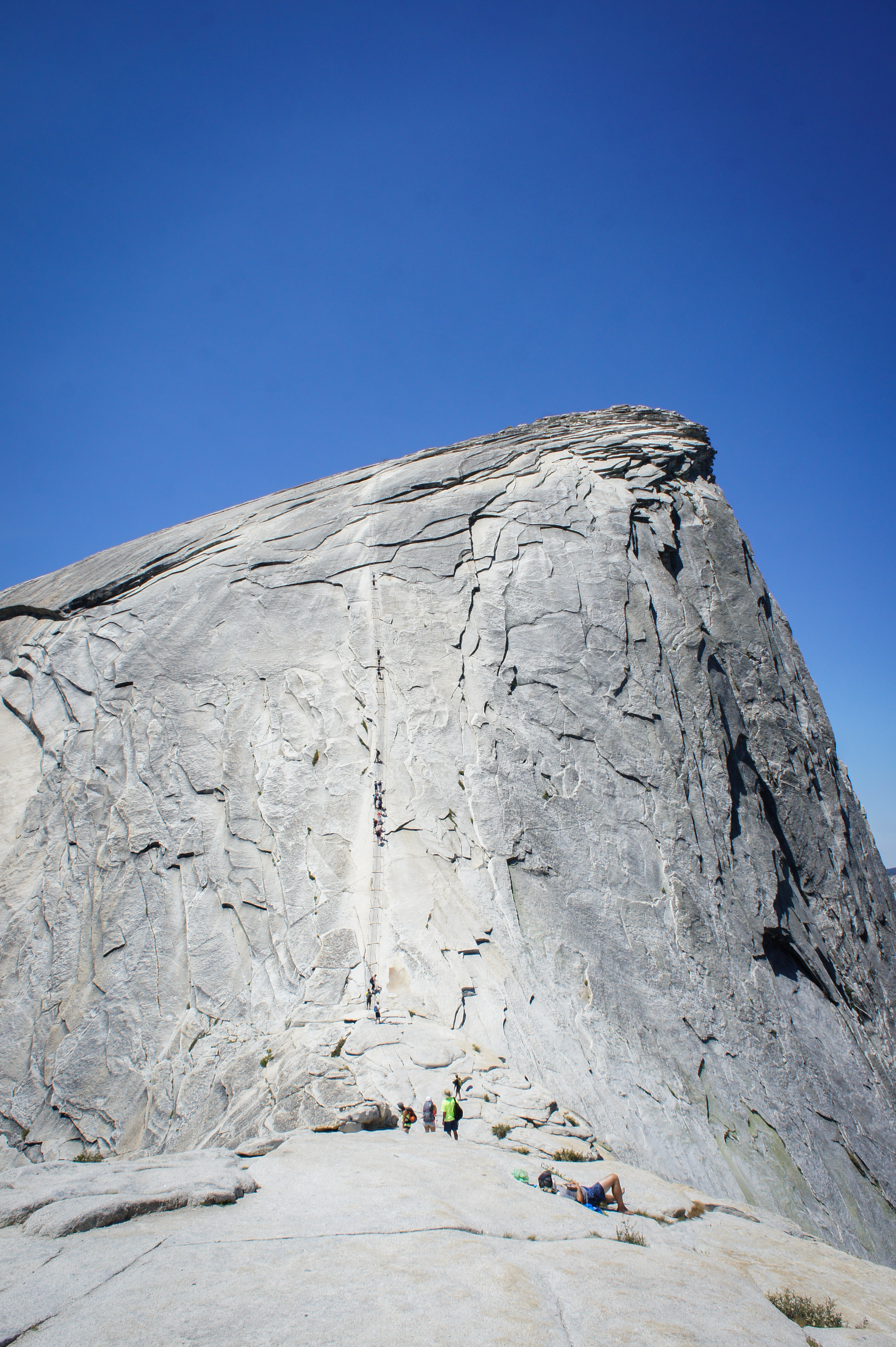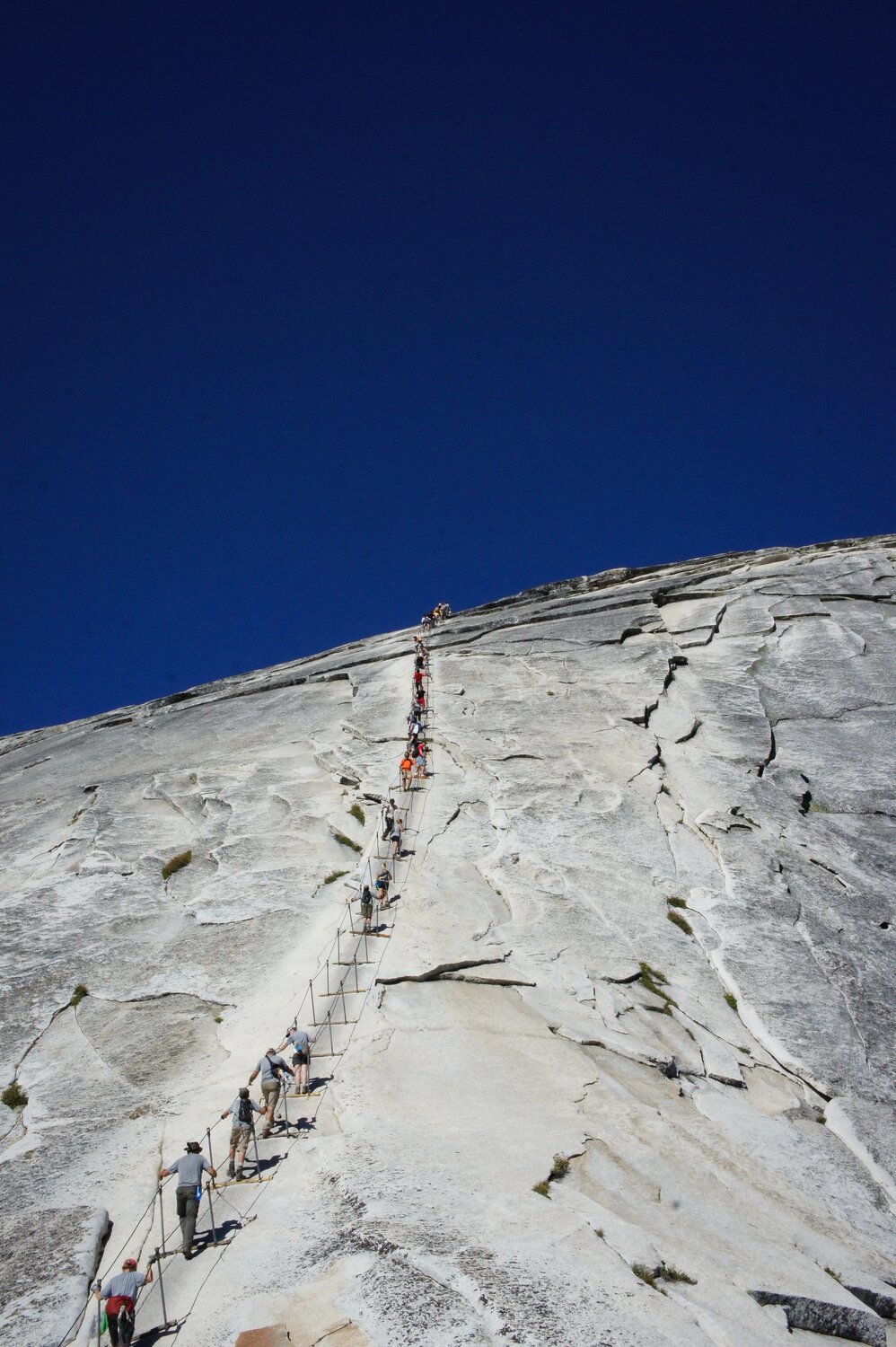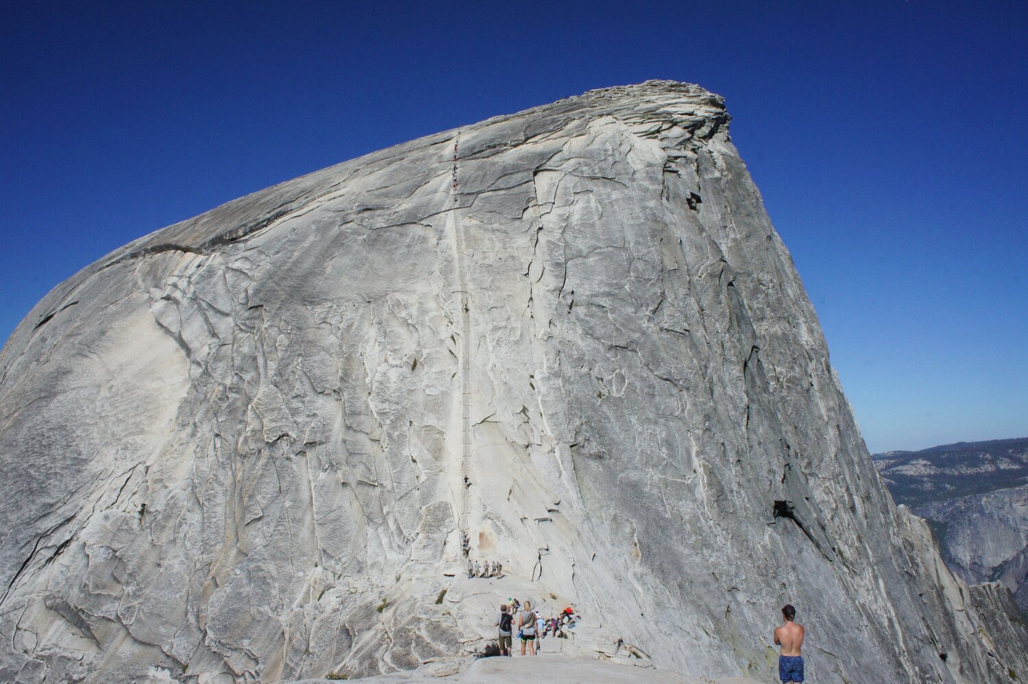 The cables and crowds from below. A ranger checked our permit just below the sub dome. No issues for us, but a couple of people were standing around just before asking if anyone had an extra space. We couldn’t help them.