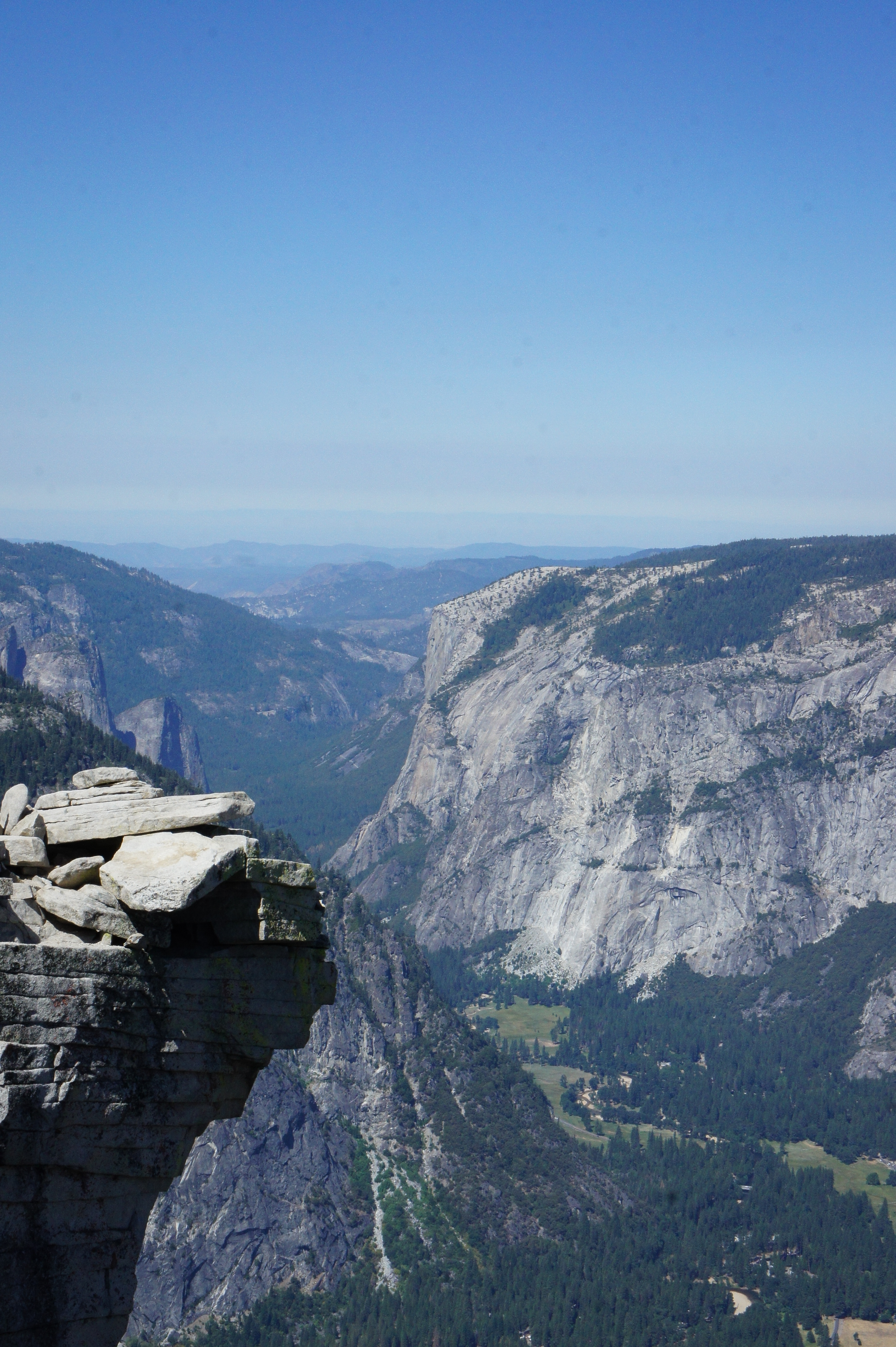 And Yosemite Valley to the west. The little rock in the foreground is “The Visor” and is quite a popular spot to pose for photos.