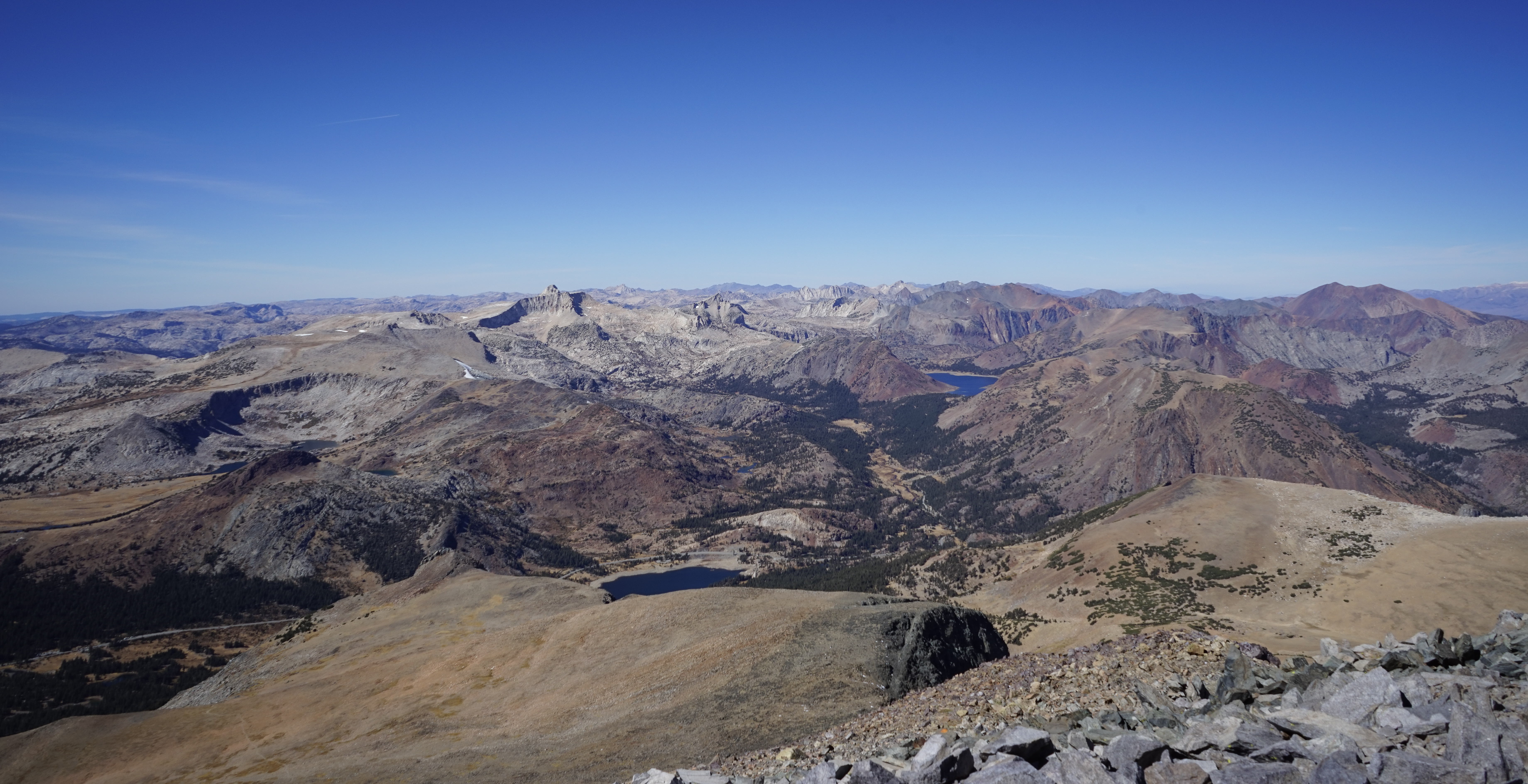 Despite its relatively high elevation (13,057’), the hike up Mount Dana is not too difficult. It’s a bit less than 3 miles to the summit, though each of those miles climbs almost 1,000’. There’s a trail for a bit which fades into a relatively well-traveled use trail to the summit.