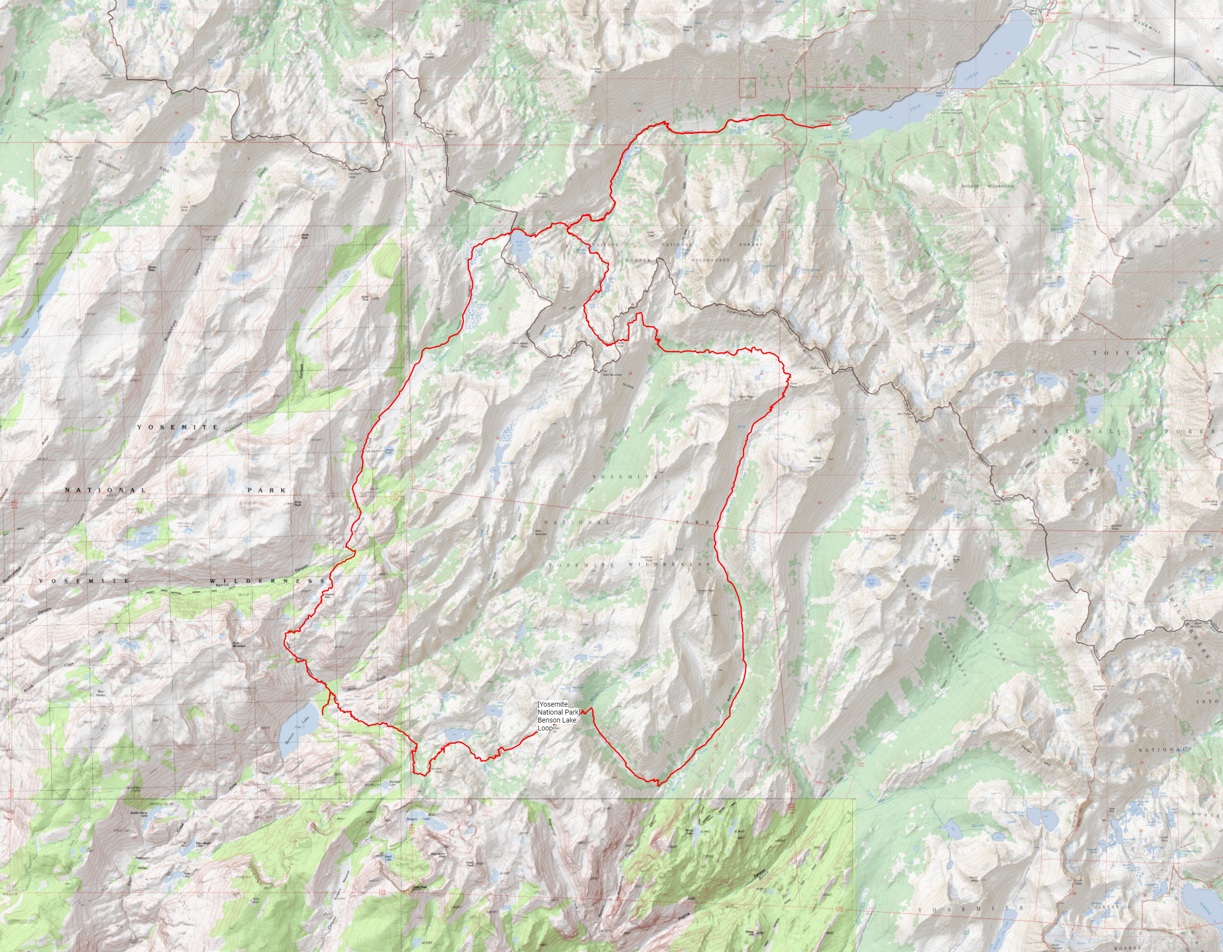 In Northern Yosemite just half a mile from a fairly remote section of the Pacific Crest Trail lies a large, sandy beach on the shore of a beautiful Alpine Lake. This is a brief trip report recounting a weekend outing to that lake, Benson Lake. This trip fell relatively early in the season, but a well-below-average snow year made it possible to reach the lake with only wet feet and a few short sections of snow. The twenty miles from the nearest trailhead provided a reasonable amount of solitude.