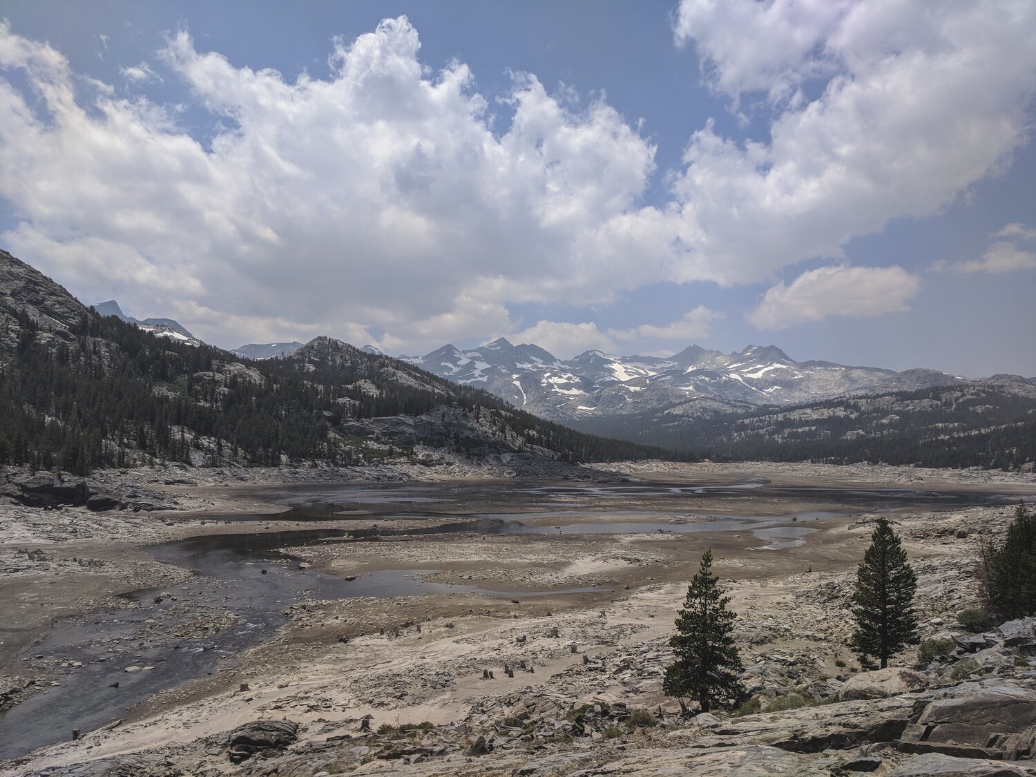 The scenery on the Rush Creek Trail was underwhelming. The trail passed by a series of unnatural, dammed up lakes with ugly bathtub rings. The uppermost of which, Waugh Lake, was drained (although it didn’t appear this was for restoration). The bugs were really awful in some of the meadows as well.