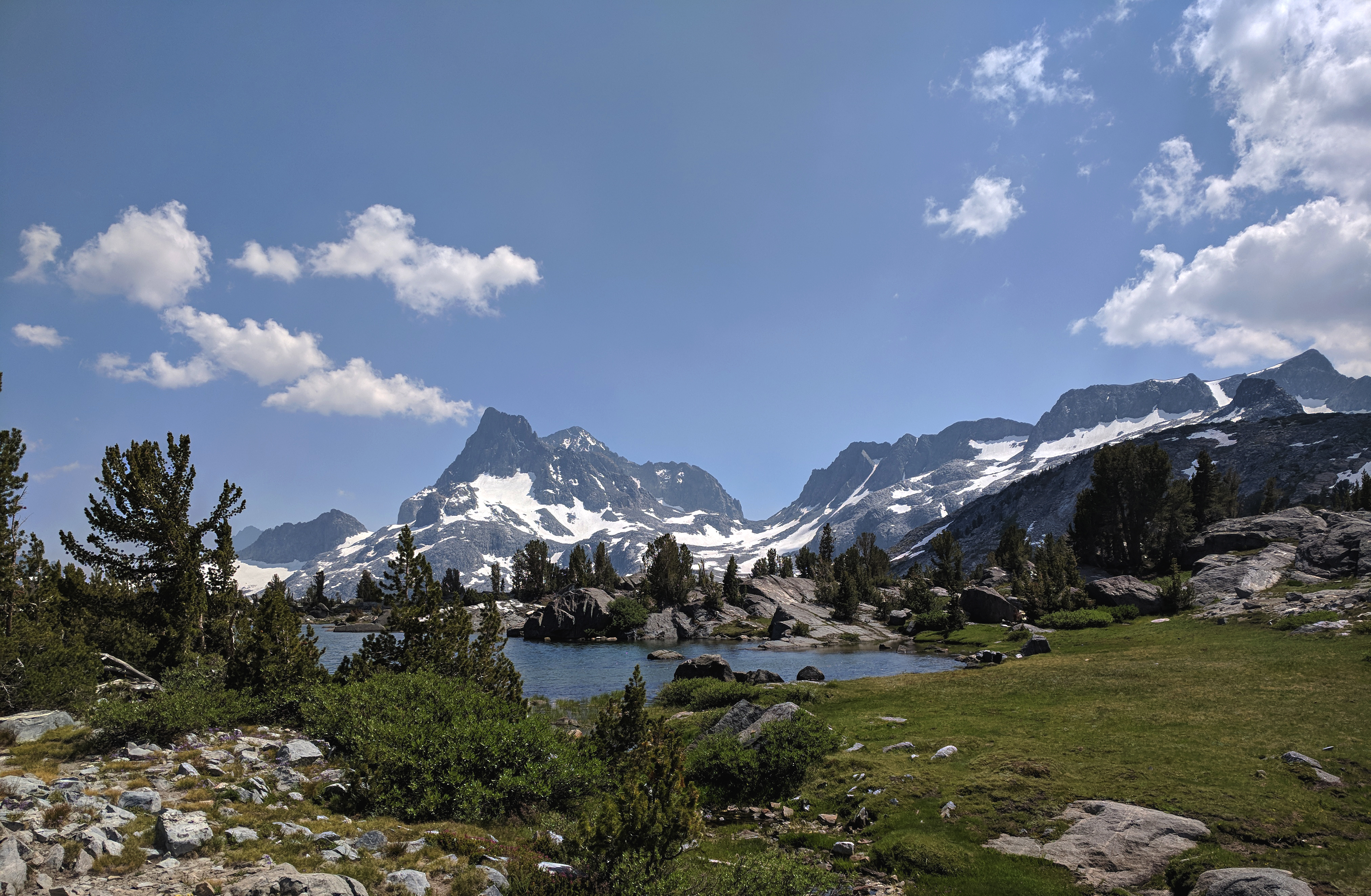 I got a bit of a late start on my first day. I hung around Mammoth to say bye to some friends who I had crashed with the night before and then had to drive up to June Lake. I think I hit the trail around 10. The nearby Lions Fire was blowing smoke into both Mammoth and June Lake that morning. There was a slight taste of smoke in the air, and fairly reduced visibility, it was also hot, my pack was fairly heavy, and my route started with a 3,000’ climb from Silver Lake to Island Pass. All of those factors combined to make for a tough first day on the trail.