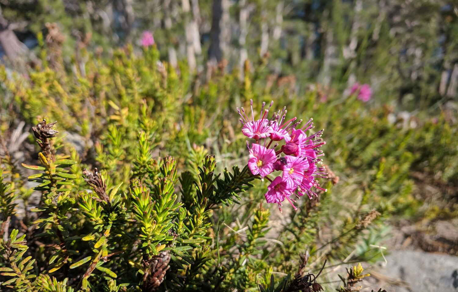 As I continued south, the smoke picked up a bit more. Here’s Garnet Lake, under a little bit of haze. From here, I continued another five or so miles south past Shadow Lake to Rosalie Lake and camped there for the night. The mosquitoes were out in force in this area, so it was a quick dinner and then to bed in the tent.