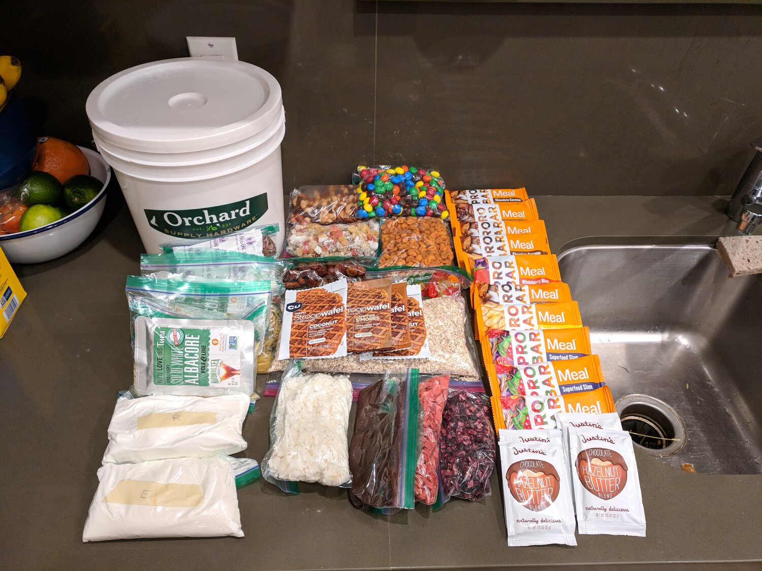 Three weeks in advance, I mailed a 12 pound bucket of food to myself at Muir Trail Ranch (MTR). It was 80 miles from Rush Creek to MTR and then 100 more to Whitney Portal. I planned it out pretty meticulously: 4,000 calories a day for 9 days. I would start with 4 days of food, and pick up 5 more days worth at MTR. If I went slower than that (20 miles a day), I would just bail early. For the abundantly curious, here’s my food planning doc. I would be happy to provide comments on what worked and what didn’t if anyone is interested.