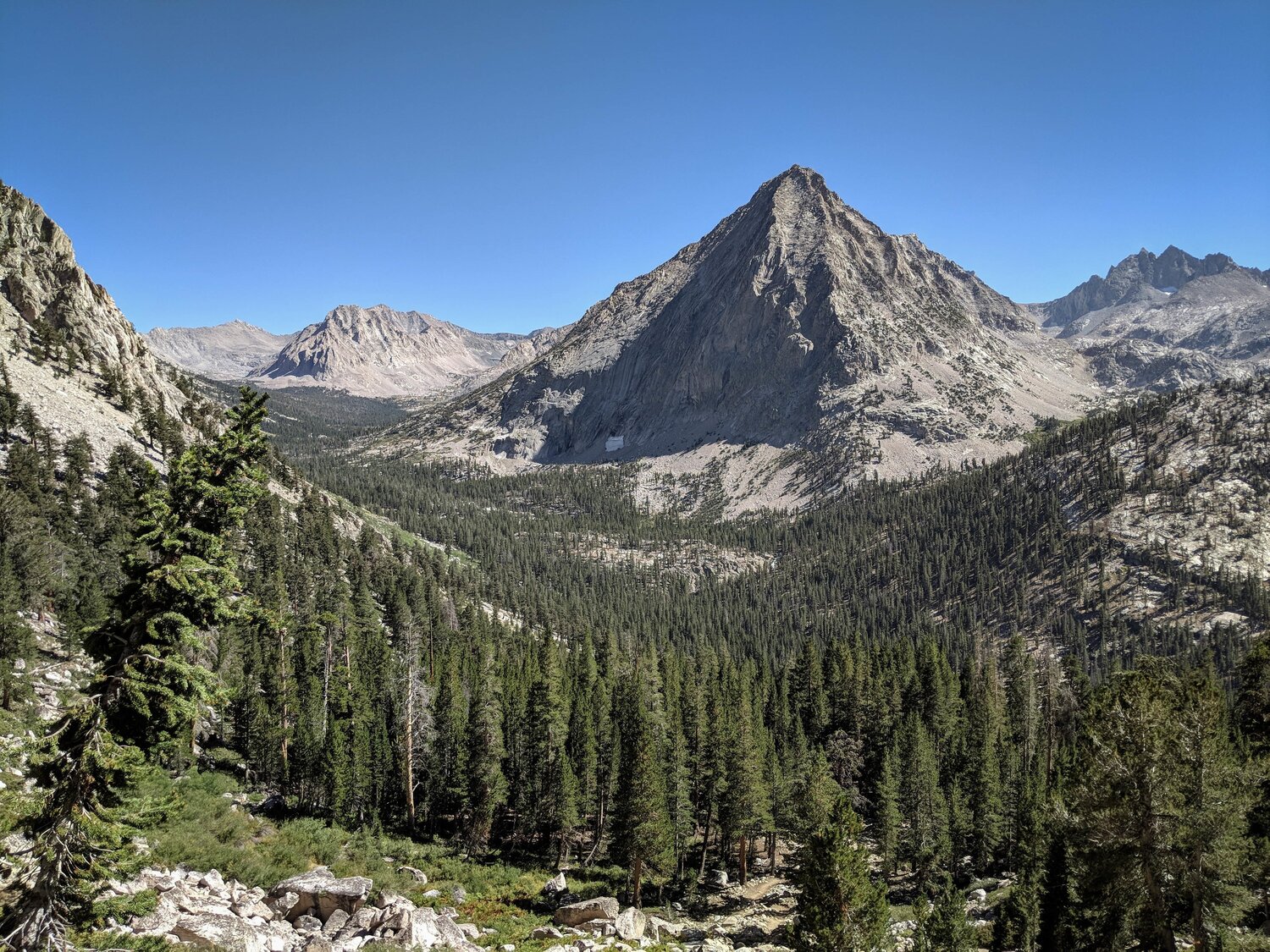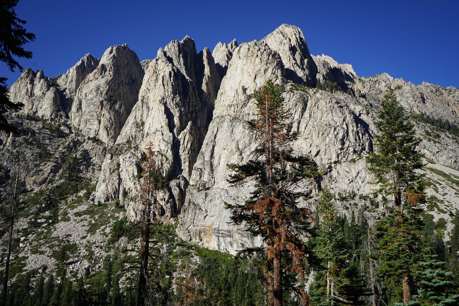 Overlooking West Vidette and the Bubbs Creek Drainage from the switchbacks below Bullfrog Lake.
