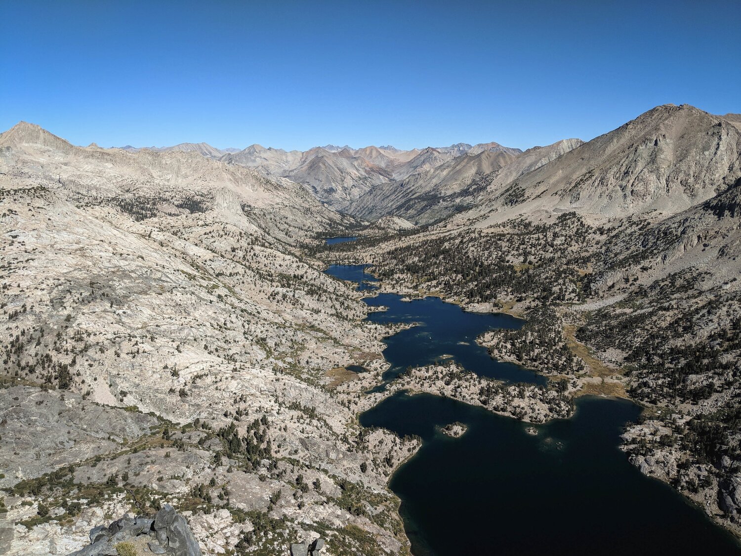 Standing atop the Painted Lady, overlooking Rae Lakes. The Palisades are poking out in the background.