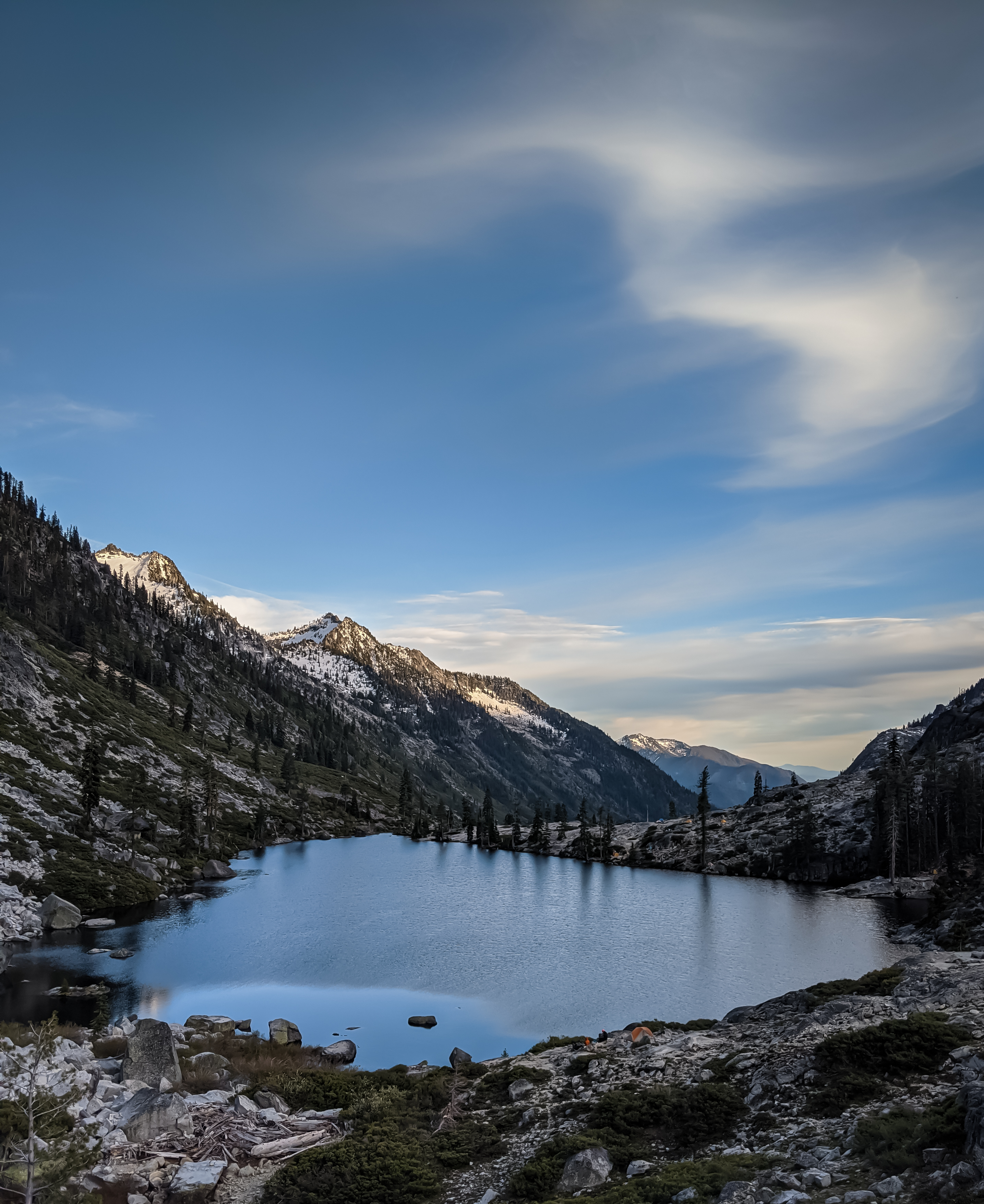 I walked past the lower lake and found a nice campsite on the isthmus between the two lakes. This is a very popular area for camping, so there are plenty of spaces.