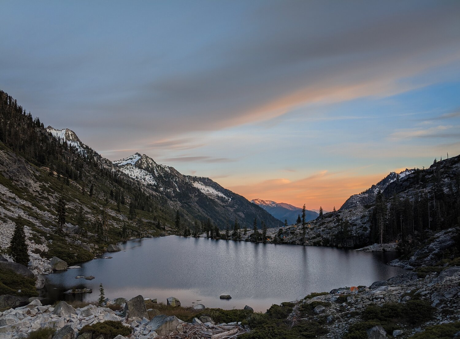 Today was Saturday and it was getting busy. With the crowds came a few people breaking the rules, campfires aren’t allowed in the Canyon Creek Lakes area (above the trail junction to Boulder Creek Lakes), but as you can see that didn’t stop some groups from having a fire just a few feet from the lakeshore. I also saw a few very ineffective bear hangs (food tied to a tree trunk 5 feet off the ground). A good reminder to please respect these rules as they exist for a reason.