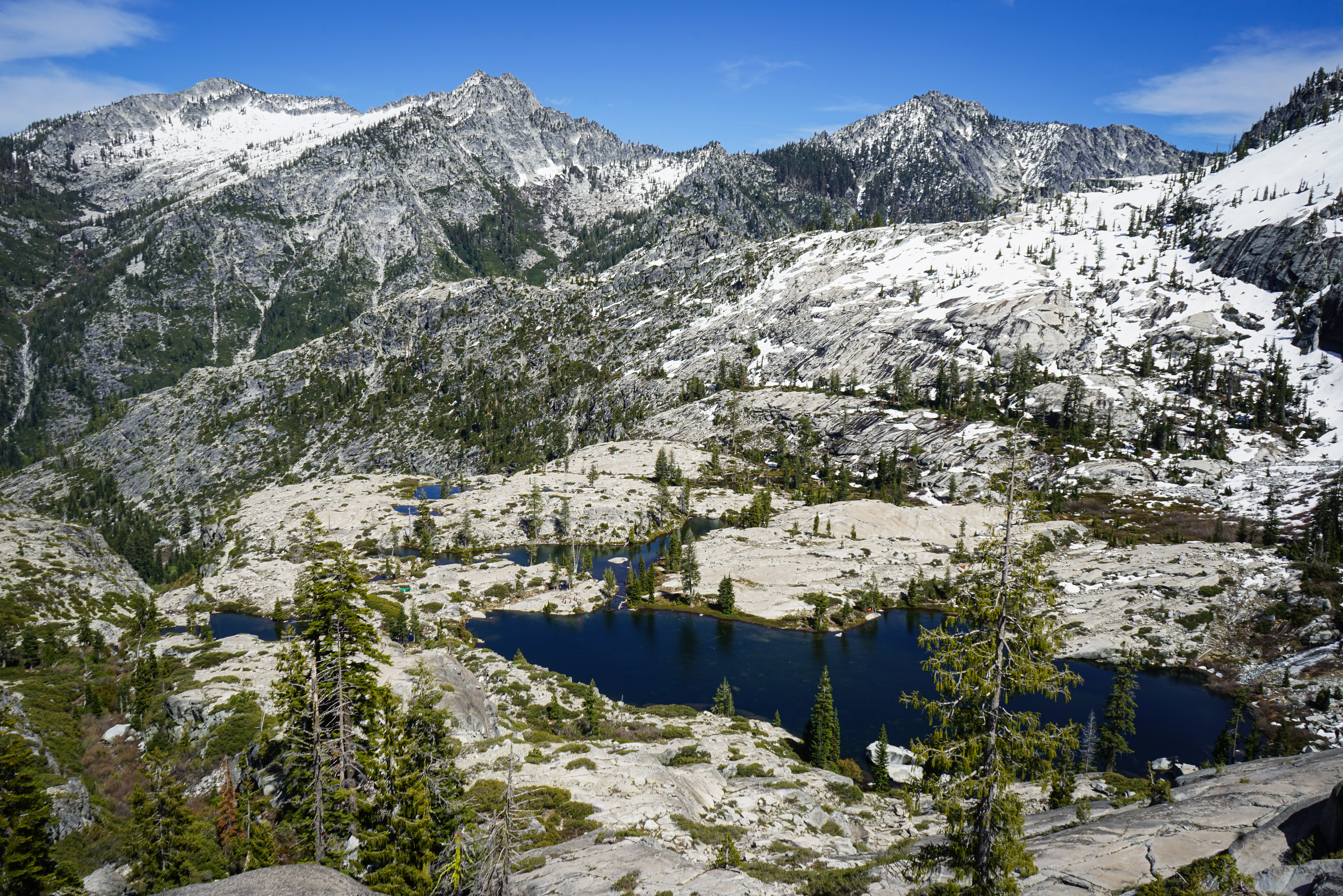 Mid-morning, I set out to hike up to L Lake, in the cirque above Canyon Creek Lakes. There’s a vague way around the lake and then up some slabs towards L Lake, but it’s mostly cross country travel with some nice views.