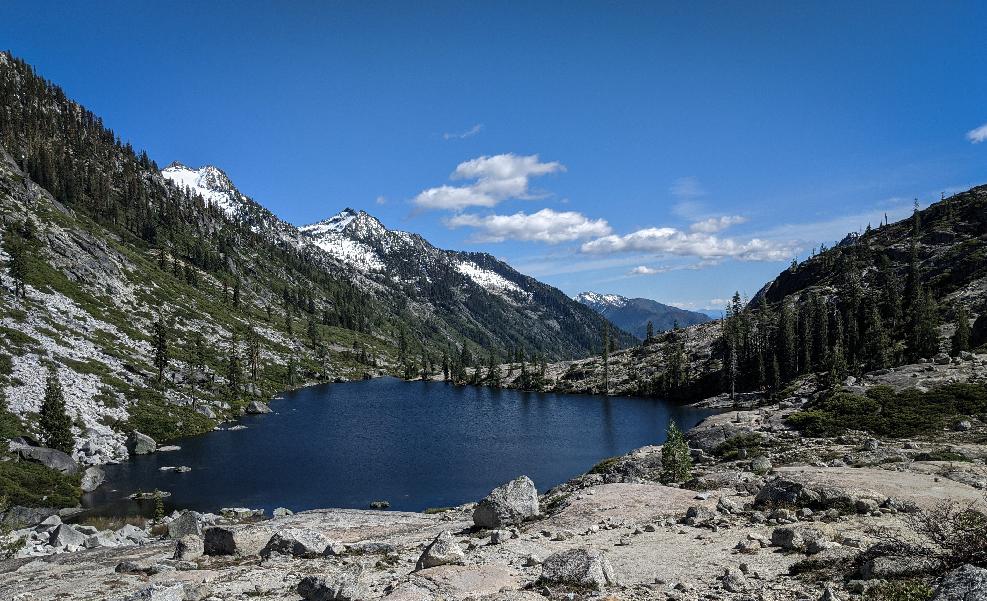 This trip report covers a 4 day backpacking trip I took in the Trinity Alps over Memorial Day weekend in 2020. I chose the Canyon Creek area of the alps because many of the other alpine areas of California were either closed due to the COVID-19 pandemic, or still snow-covered from the previous winter. The Alps were open for business and I could see on the satellite images that the lakes had melted out a few weeks early. So, I drove up on Thursday night and camped at the quiet Ripstein Campground just below the Canyon Creek trailhead and headed out the next morning.