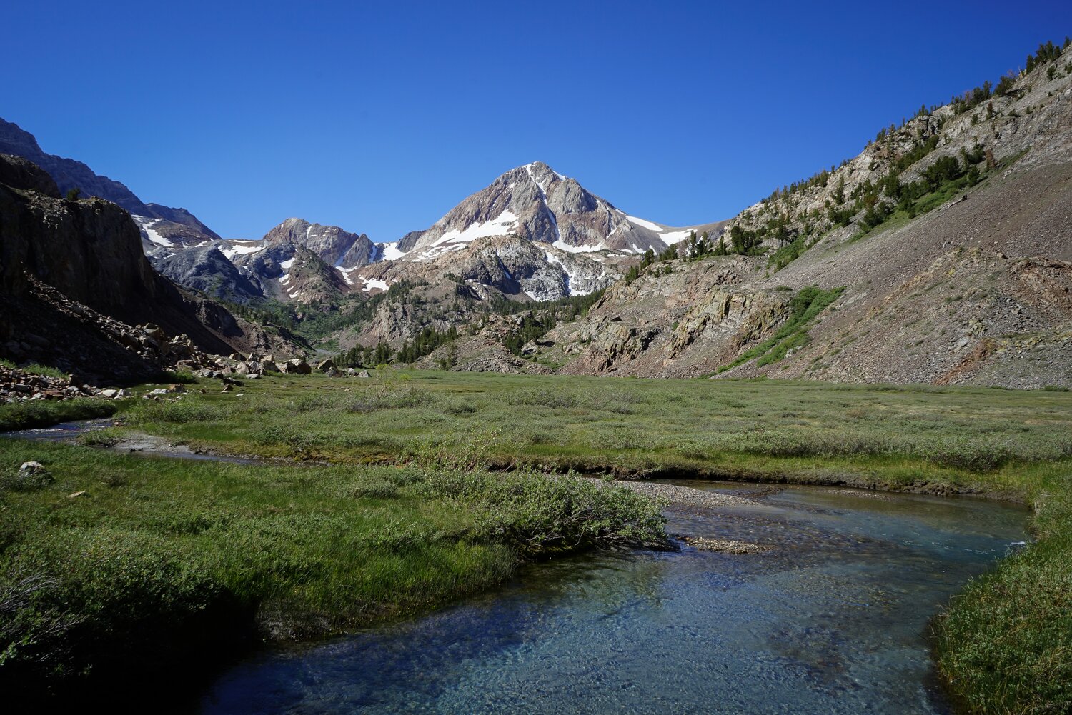 The hike up Convict Creek was no trouble, a little bit cold. The bridge across is still out, but the crossing was quite easy, I managed to keep my shoes on and feet dry.