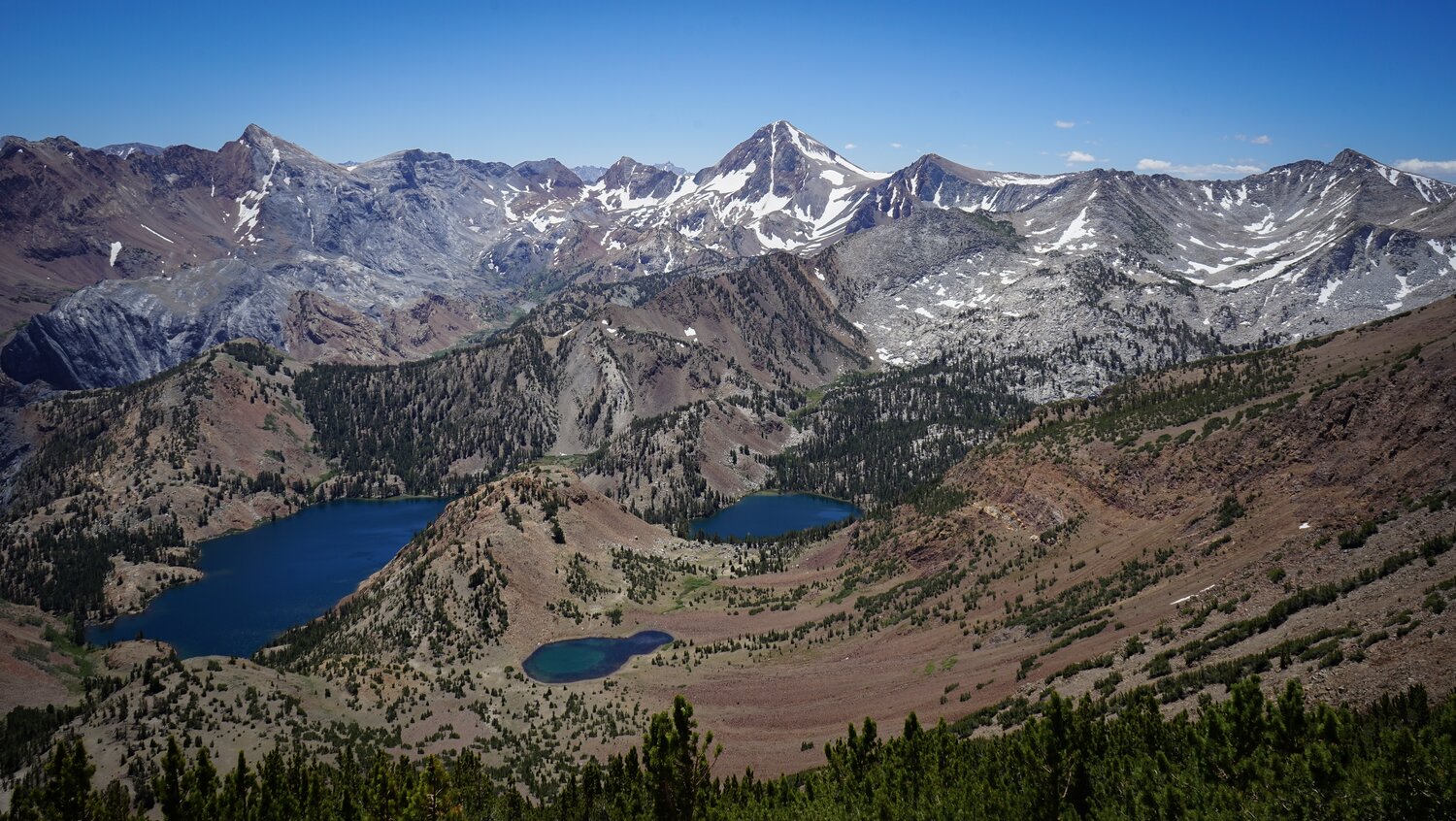 Lake Genevieve and Edith Lake from the northeast ridge of Bloody Mountain.