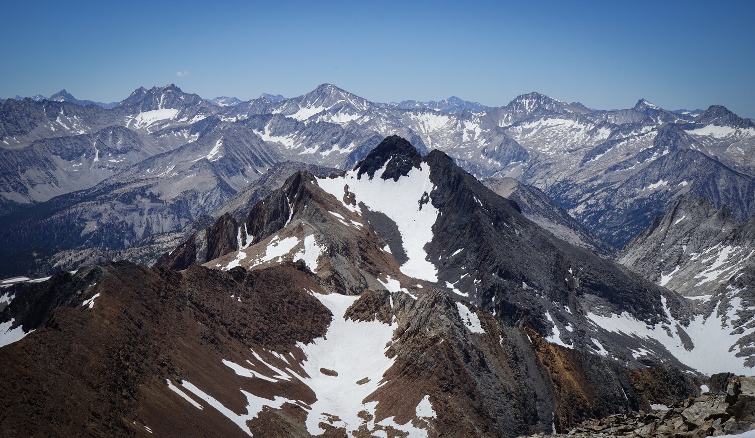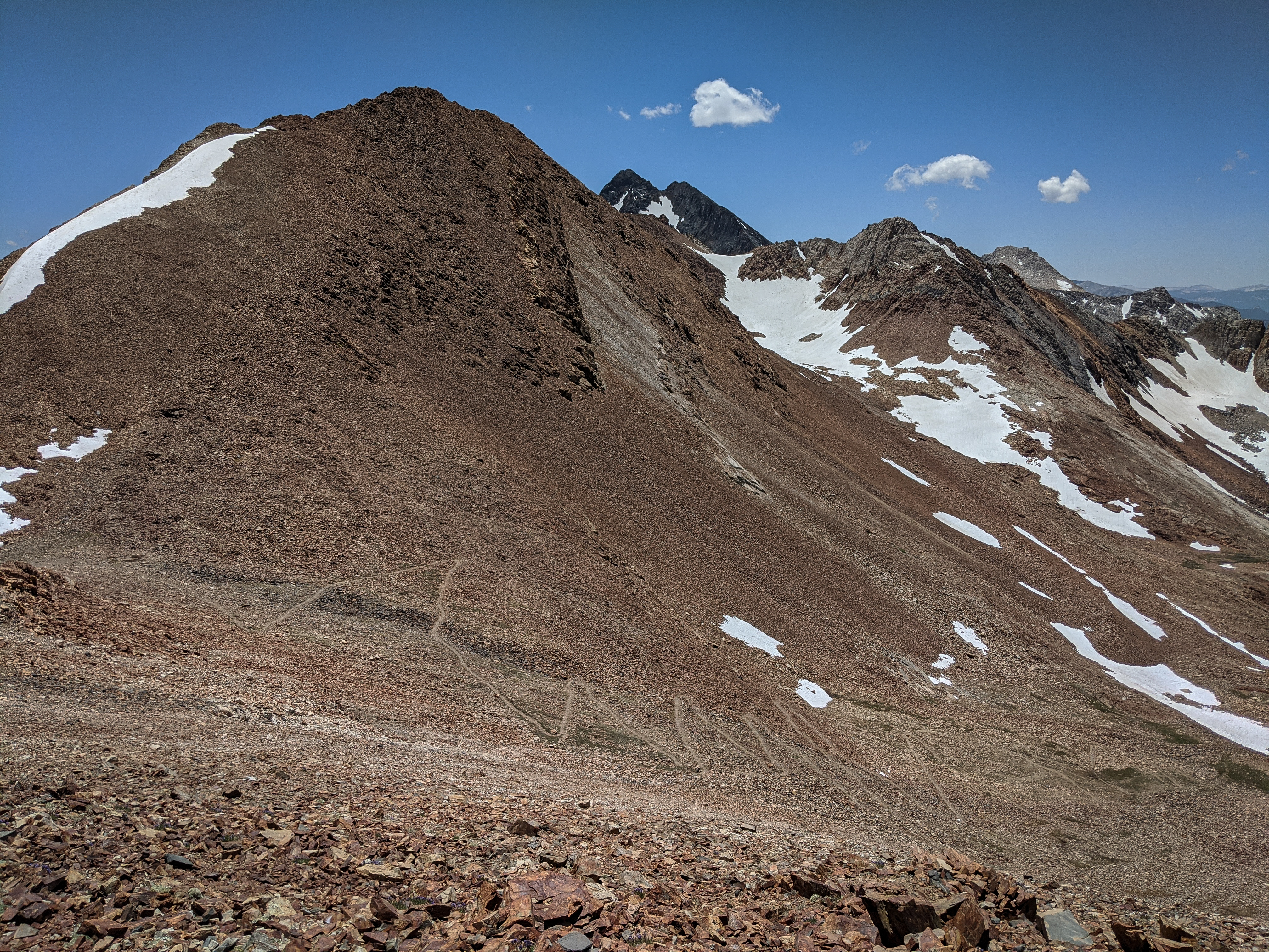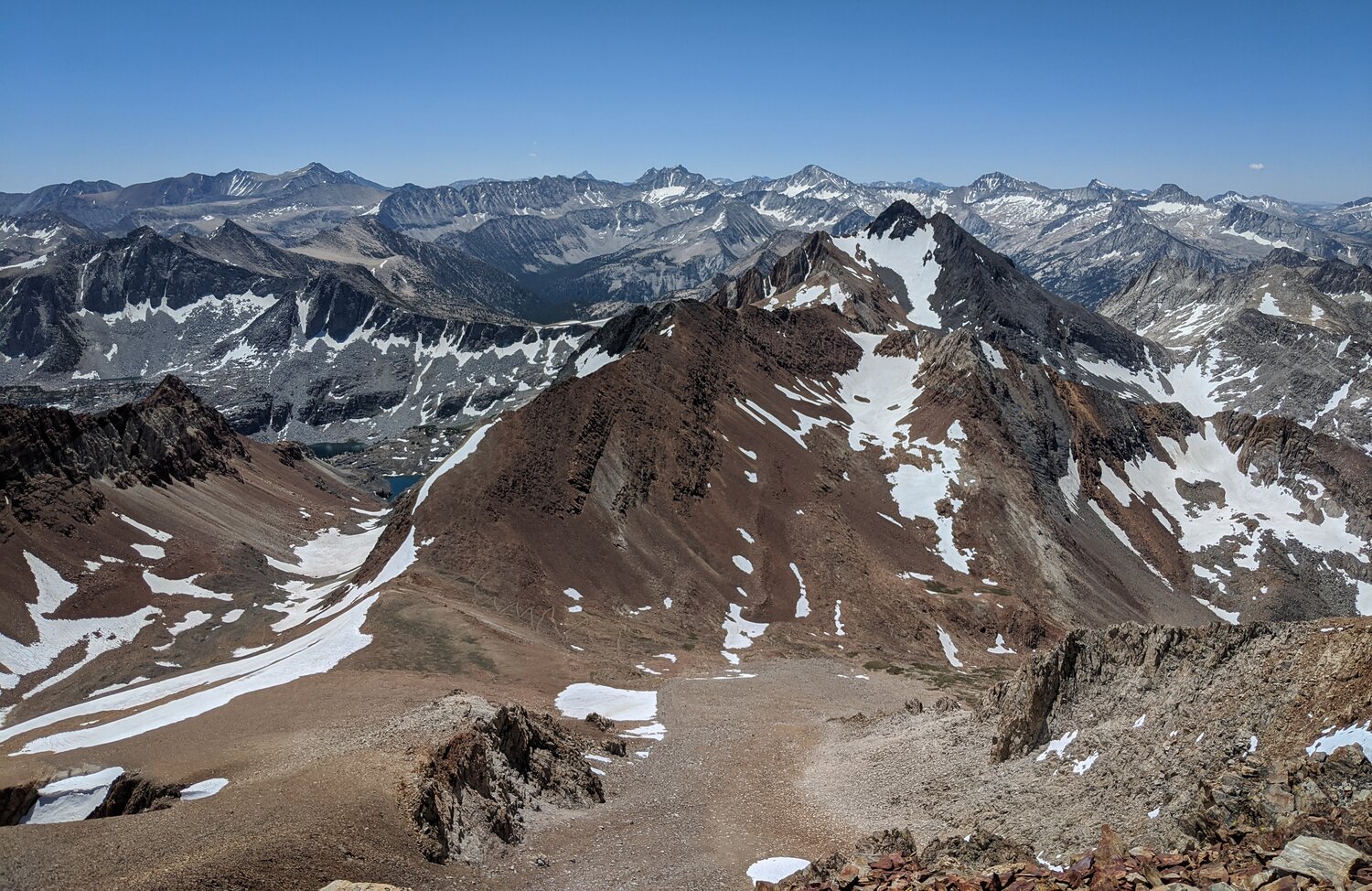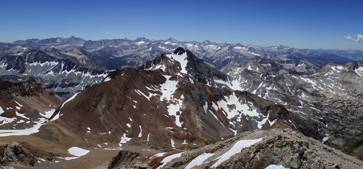 More summit views, including Mount Baldwin and Mount Morrison, from a different angle than usual. After a while enjoying the summit to myself I headed back down.