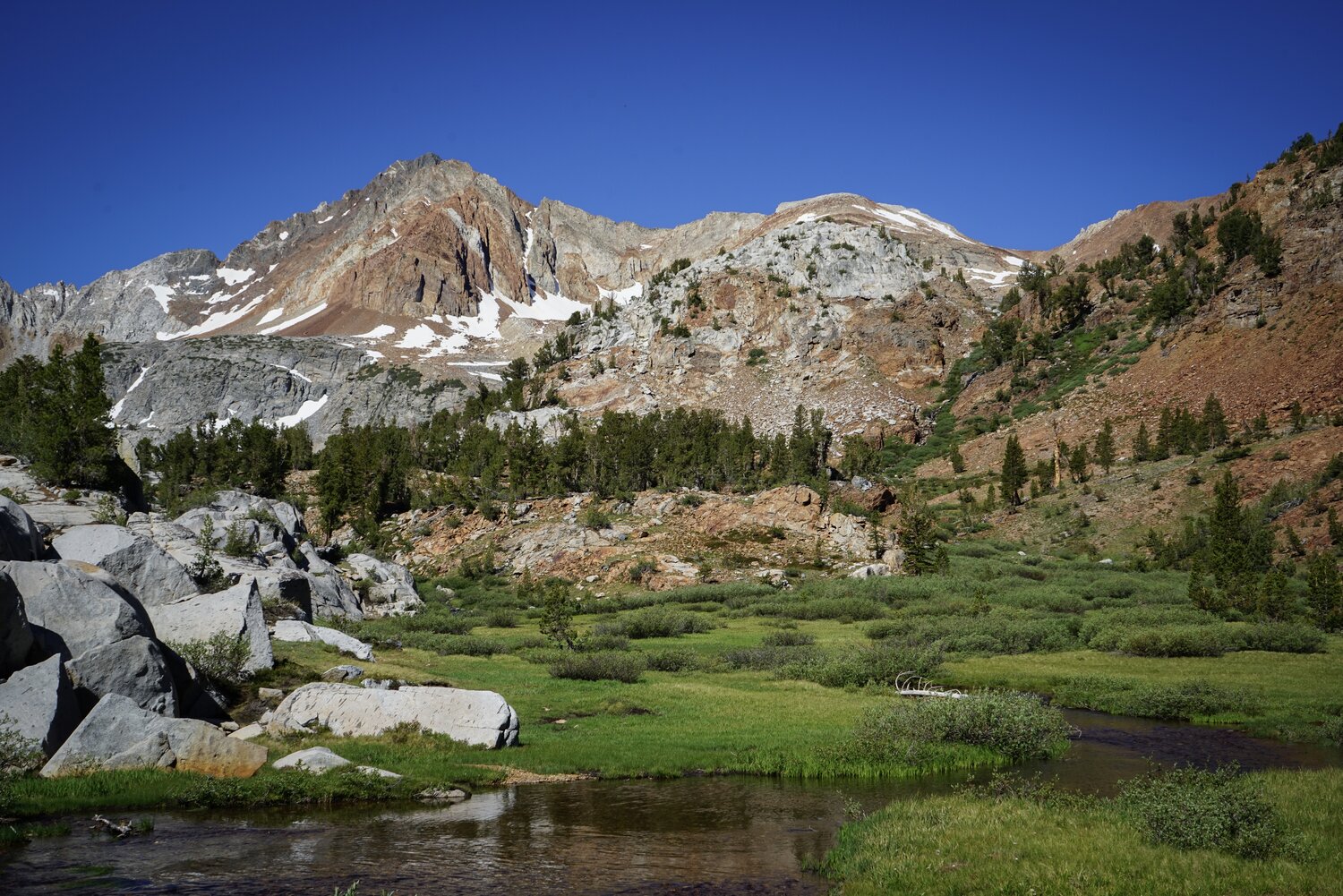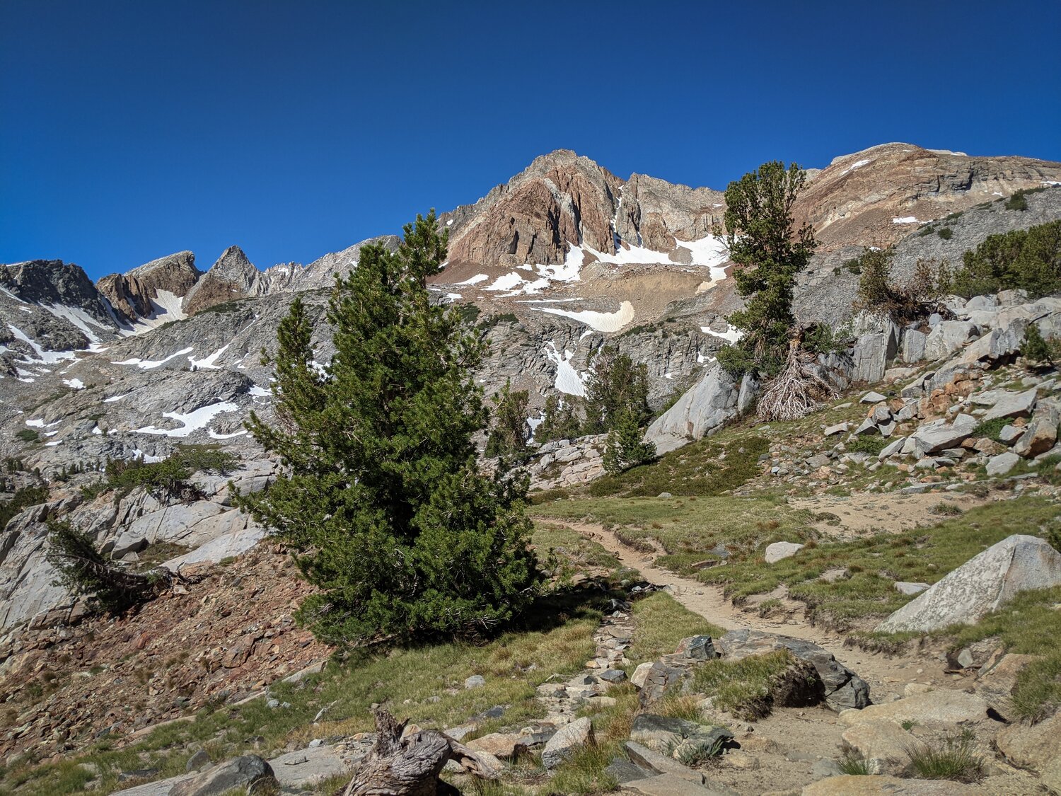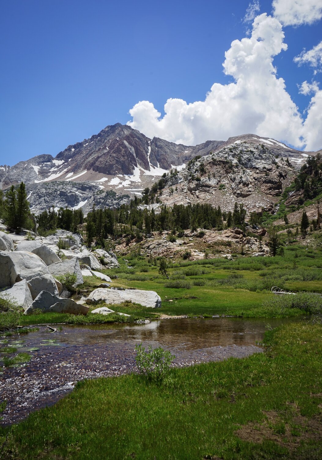 I didn’t take many pictures on the way up as there wasn’t too much to see, but the views improved once I hit the meadow below Big McGee Lake. That’s Red and White Mountain directly above Big McGee Lake.