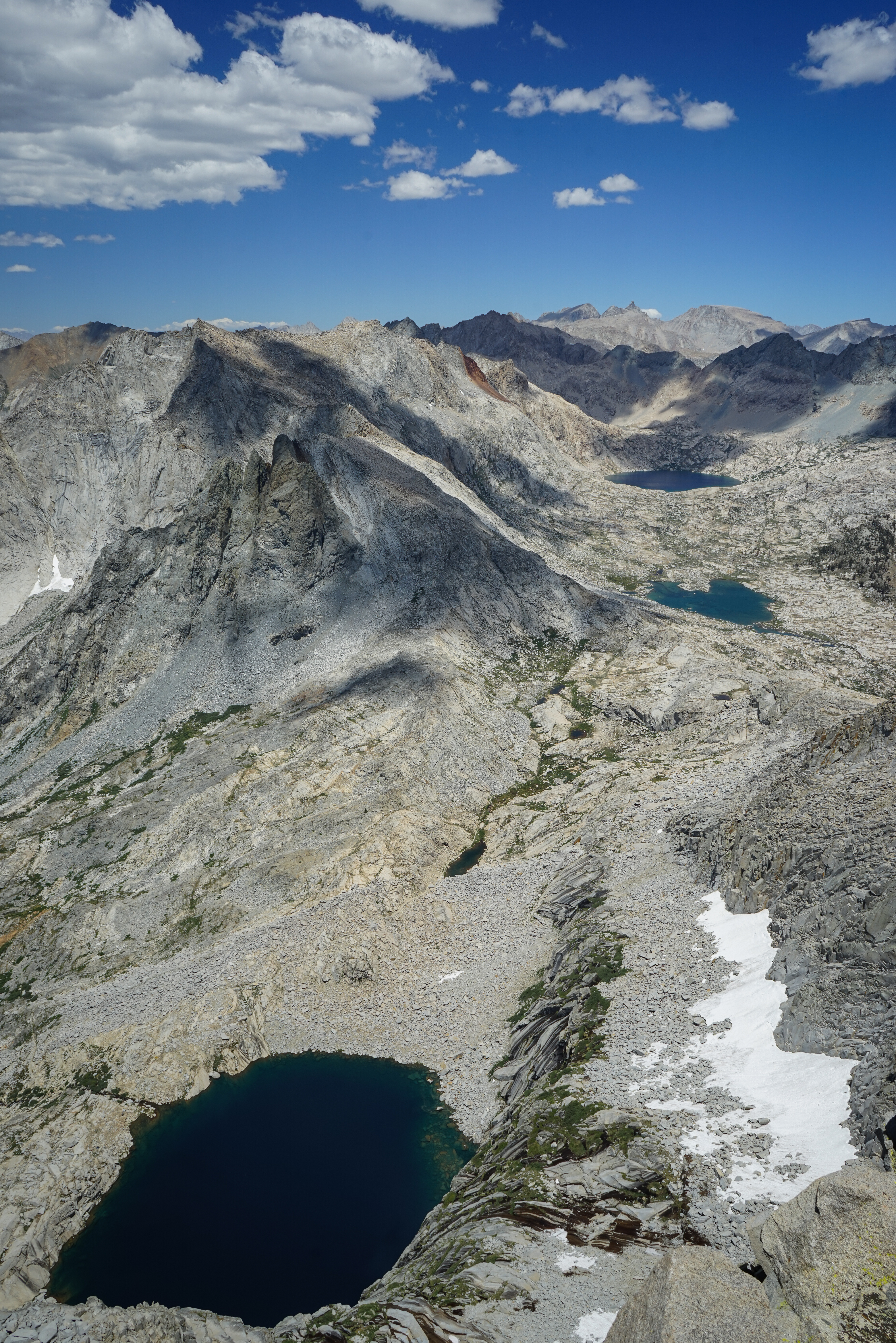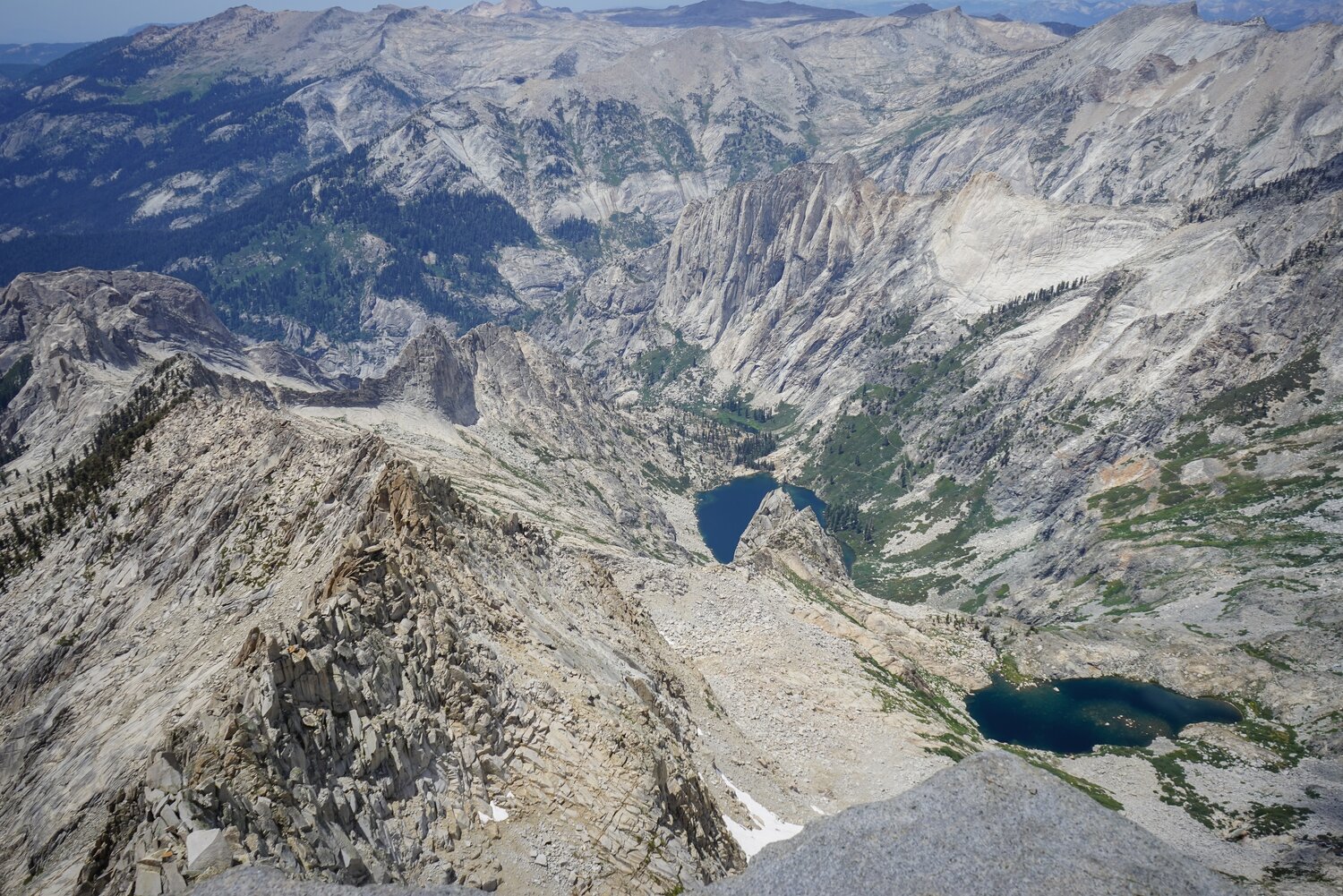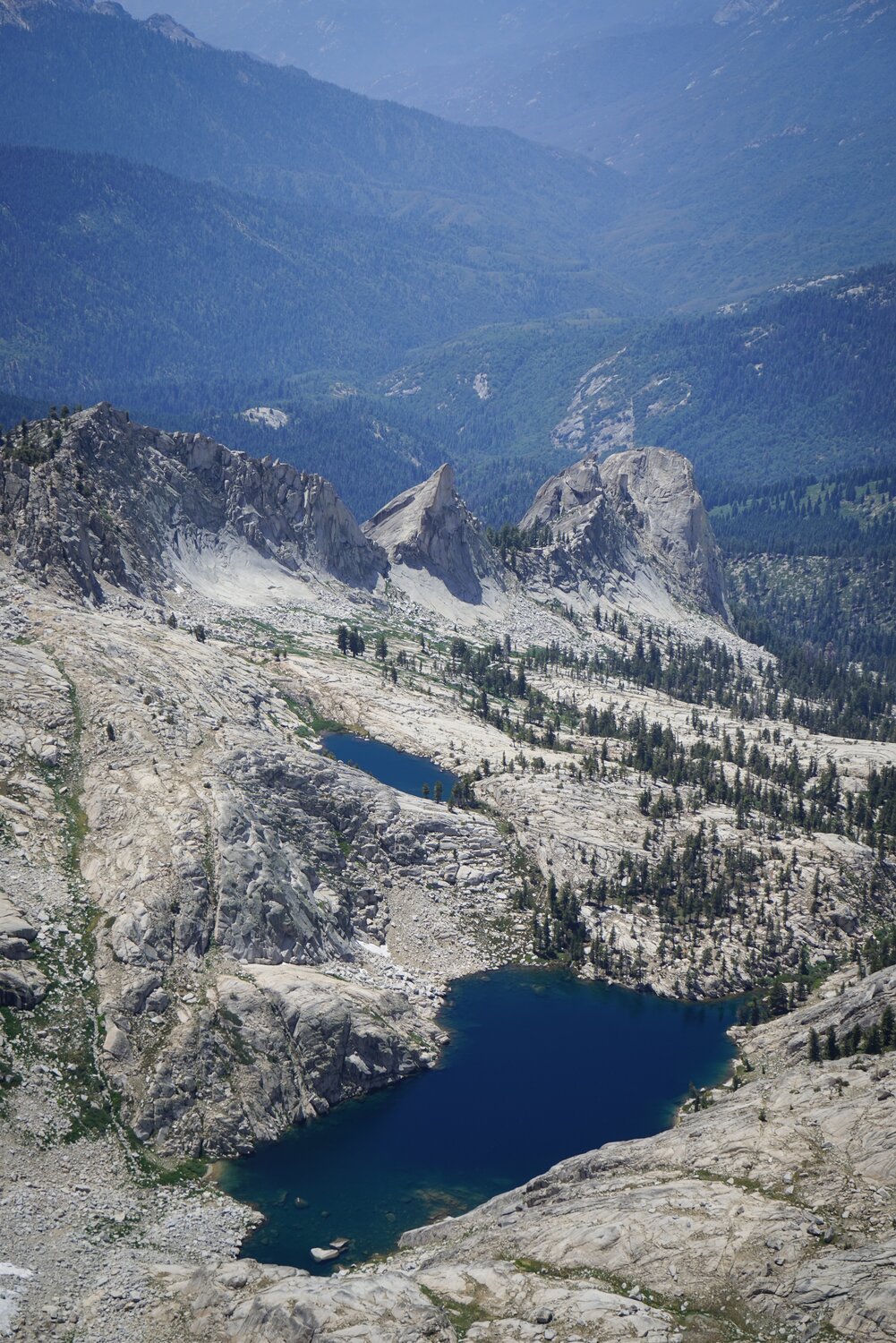 Looking down over Hamilton Lakes towards Angels Wings and Alta Peak.