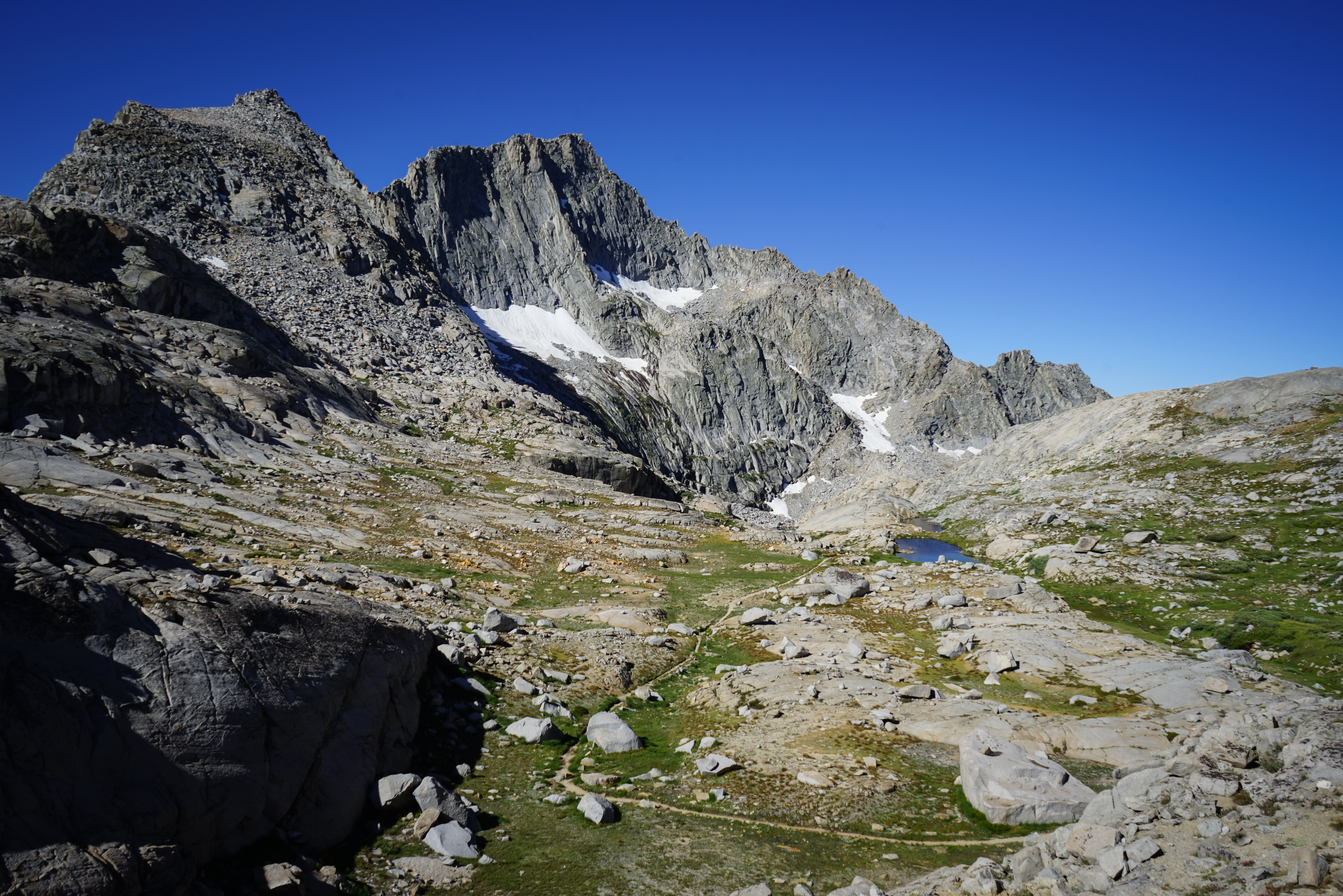 With three days remaining in our trip, it was time to start heading back for Mineral King. While we could have looped back by heading west and then south over Timber Gap, we weren’t particularly excited for what was likely to be much walking through the forest. So we decided to head back over Kaweah Gap, down Big Arroyo, past Little Five and Big Five Lakes and over Sawtooth Pass to Mineral King. That route presented more opportunity for climbing mountains too.