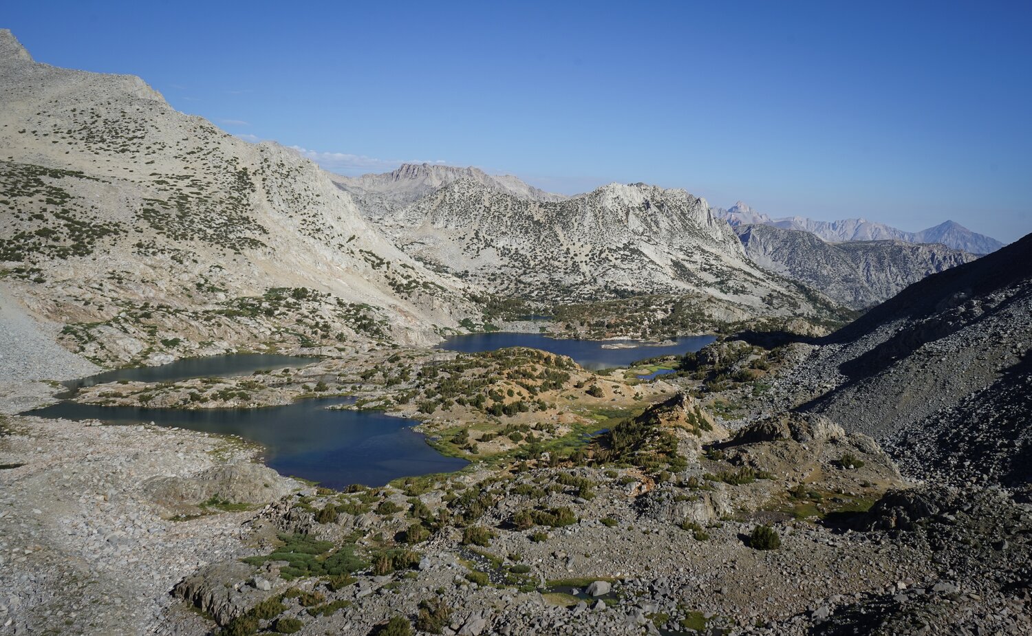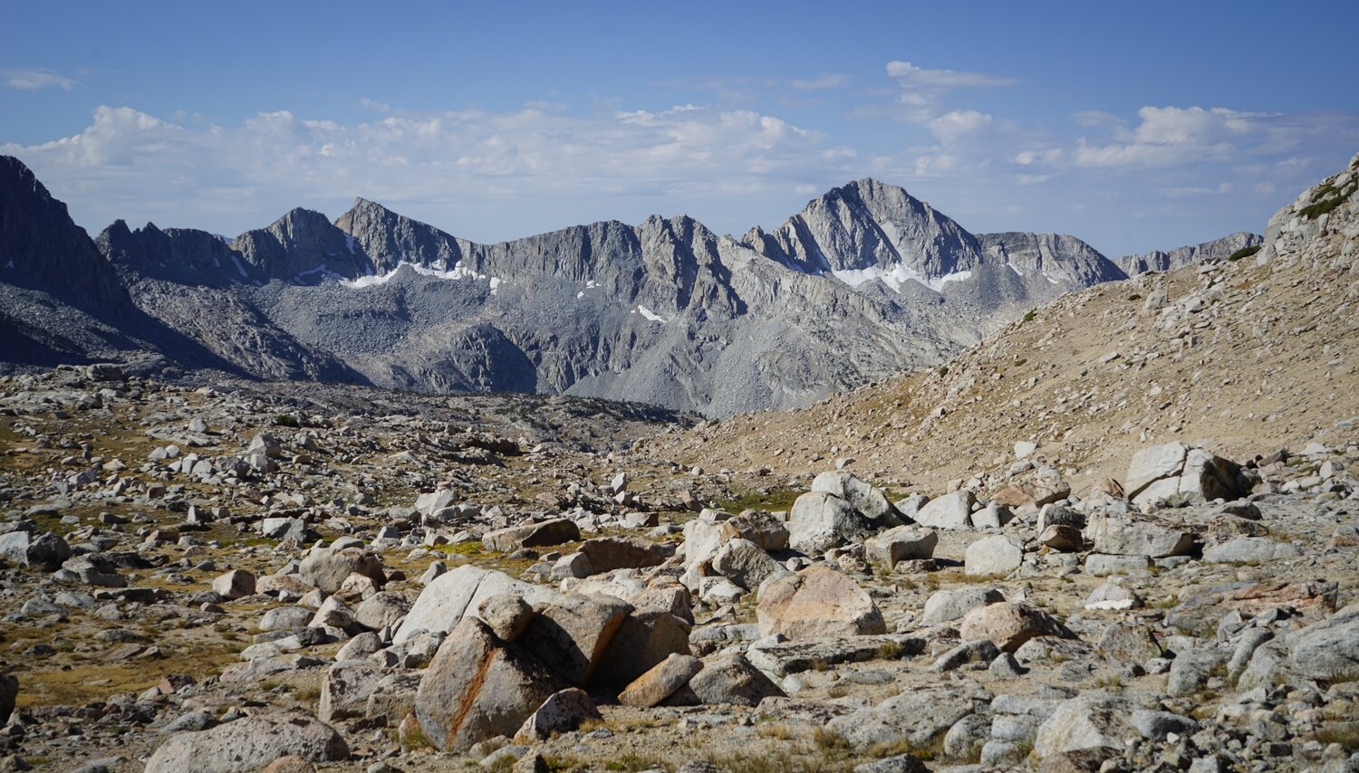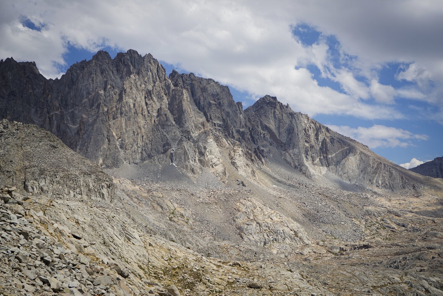 The Palisades above Barrett Lakes, with Potluck Pass pictured below Palisade Crest at right.
