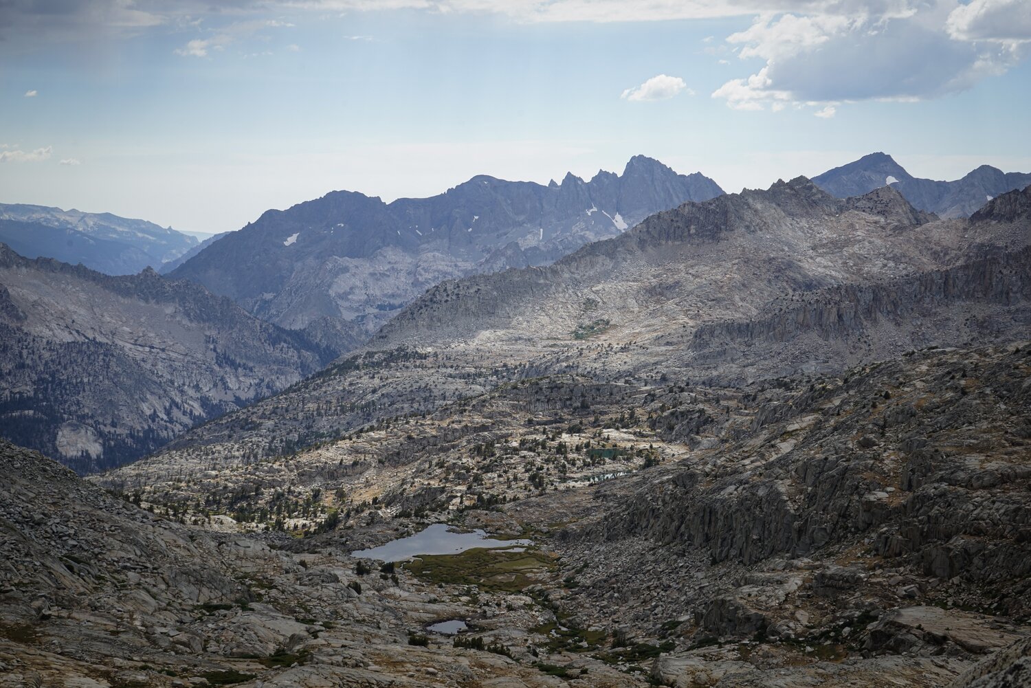 The view north to the Black Divide and Evolution Range from Knapsack Pass.