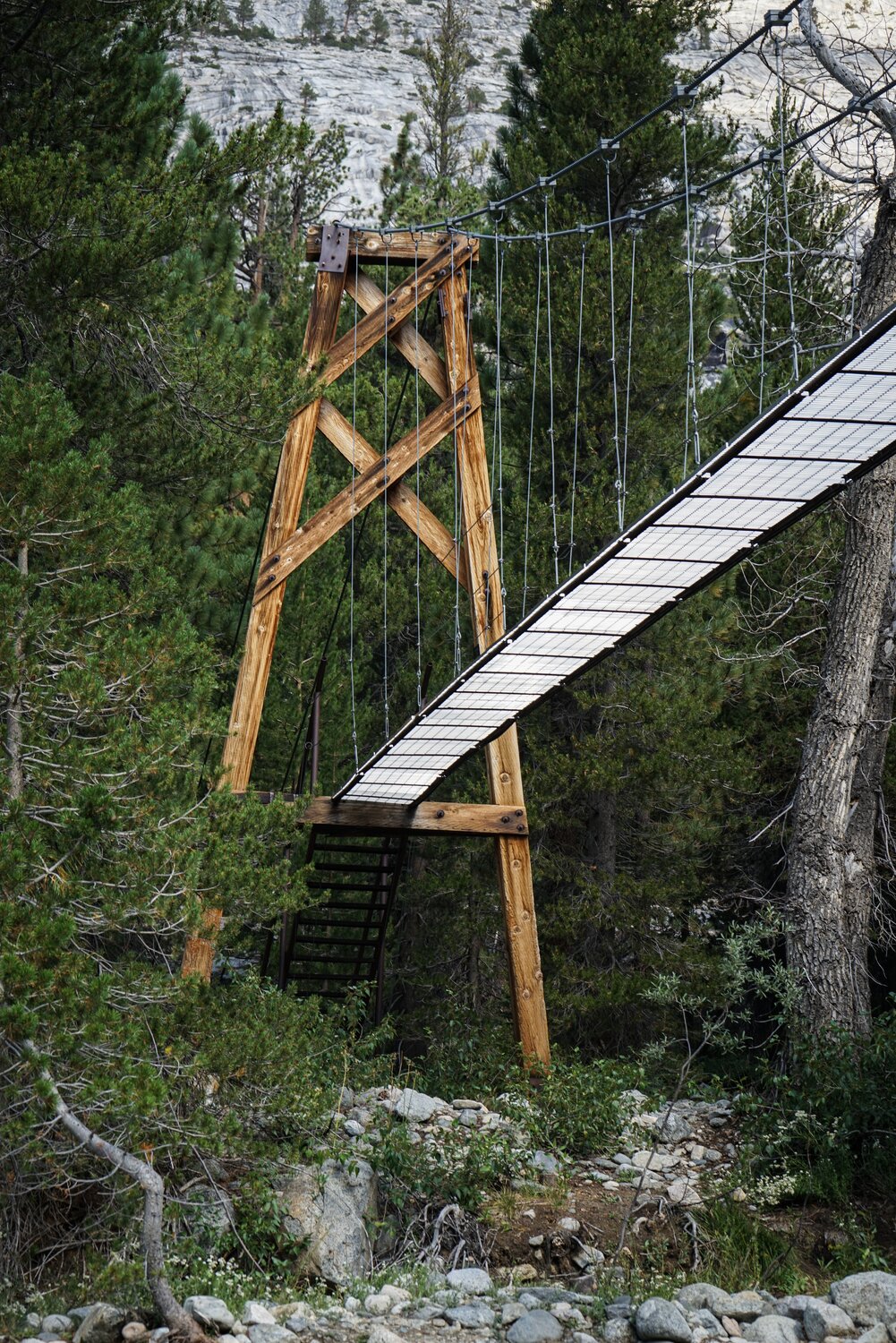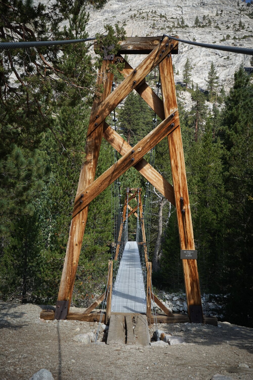 Some shots of the famous Woods Creek suspension bridge. There were a few ranger-drawn signs in this area directing people where to camp and poop, a sure sign of overuse.
