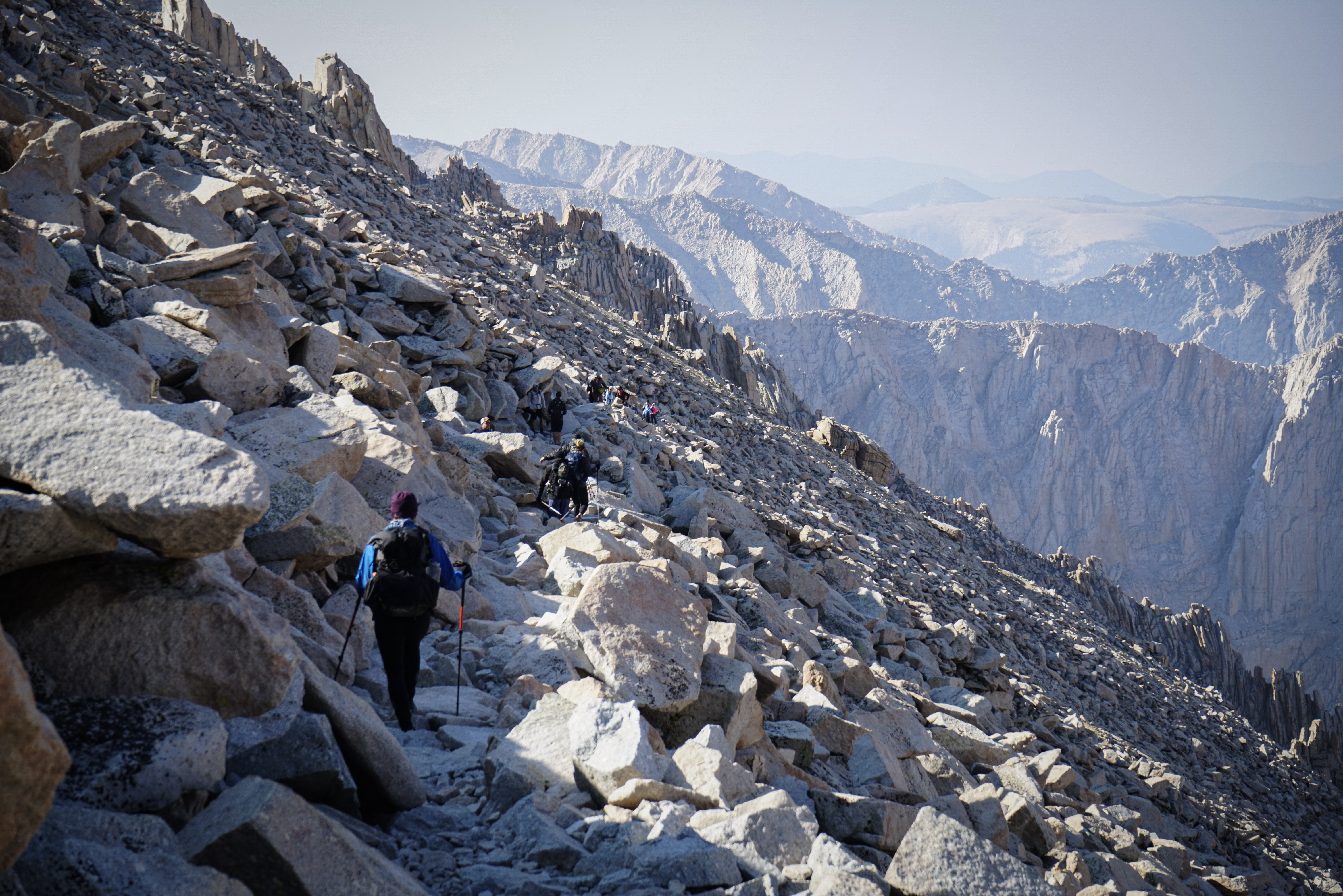 Shannon climbing the last fifty feet or so to the summit of Mount Whitney.