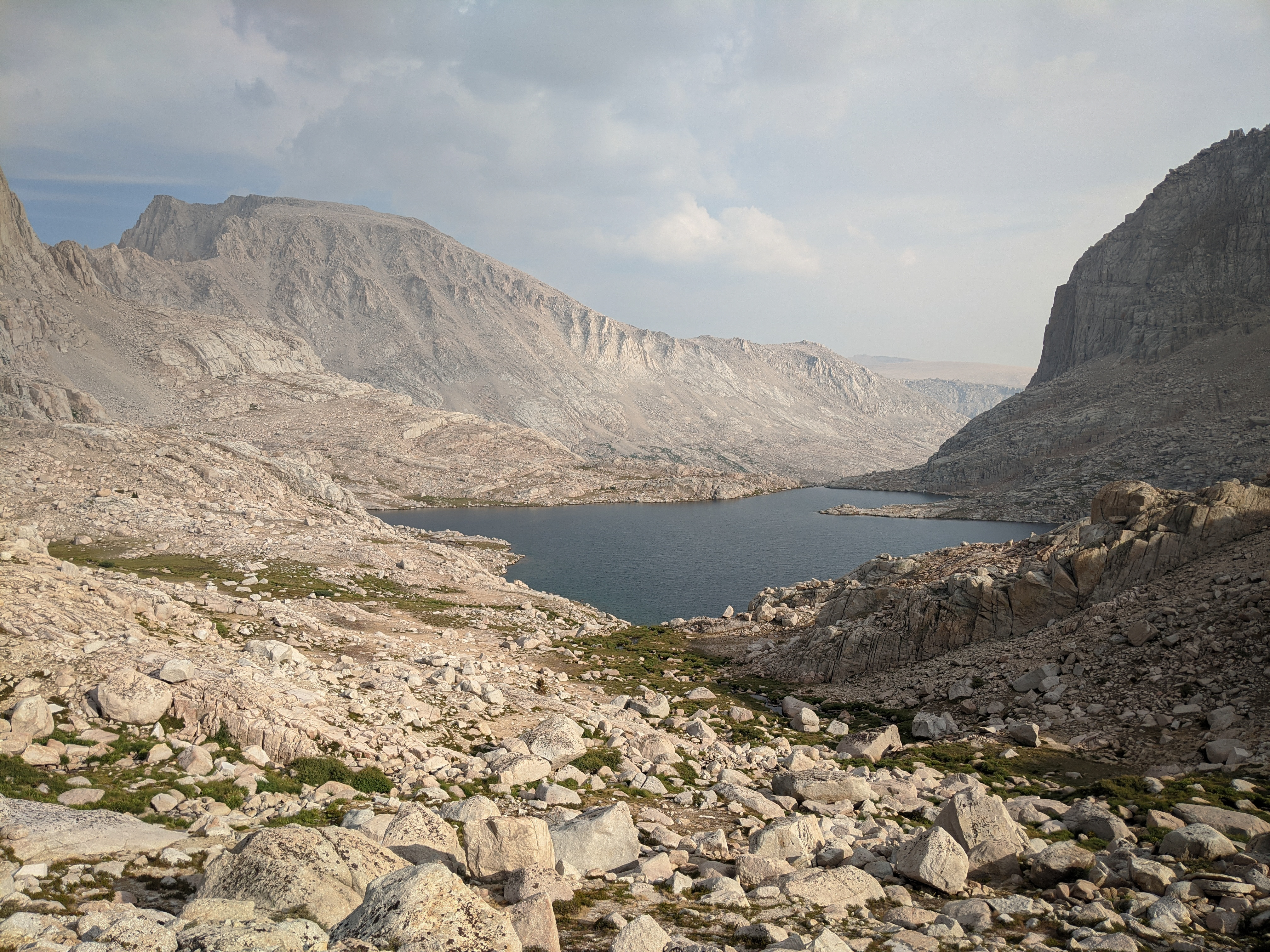 When I was refilling water from the lake, a couple of guys with very small backpacks headed past on the trail. I chatted with them for a while, they were near the tail end of a two week hike linking sections of the Yosemite High Route, the Sierra High Route, and the Southern Sierra High Route. They relayed some stories of difficult terrain crossing from the Merced drainage to Bench Canyon where they took an alternate described by Roper. They also told me about some fairly sketchy travel on the Acrodectes alternate, descending Mount Baxter, which made me happy to have skipped that section. Interestingly, they also decided to skip Junction Pass based on the description.