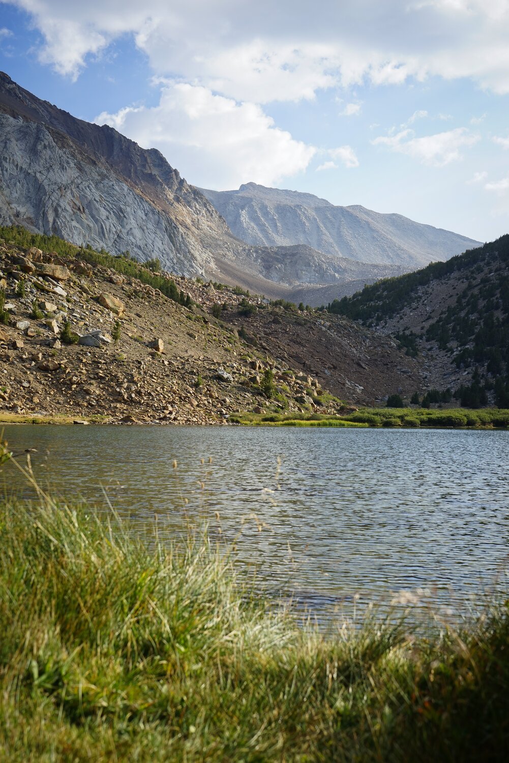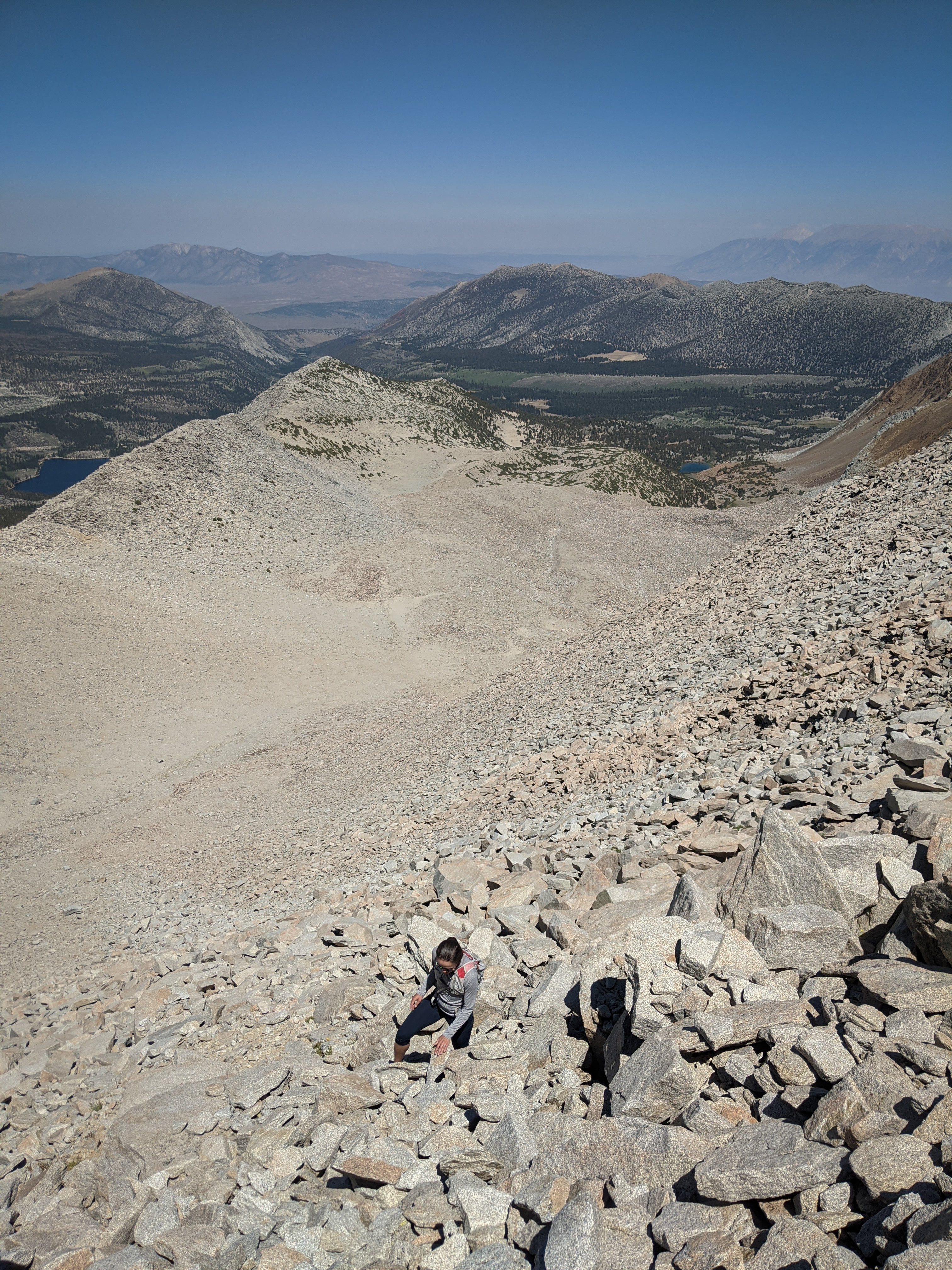 For our last full day in Mammoth after hiking the Southern Sierra High Route, Shannon and I hoped for a relatively smoke-free climb of Mount Morgan (the south one). At 13,748’ this is the highest peak in the Rock Creek area, and the 31st highest peak in California. Mount Morgan is one of the Sierra peaks that holds the distinction of there being no higher peak to its north. The easiest route, from Francis Lake, is class 1, so the only real challenge is the talus and altitude.