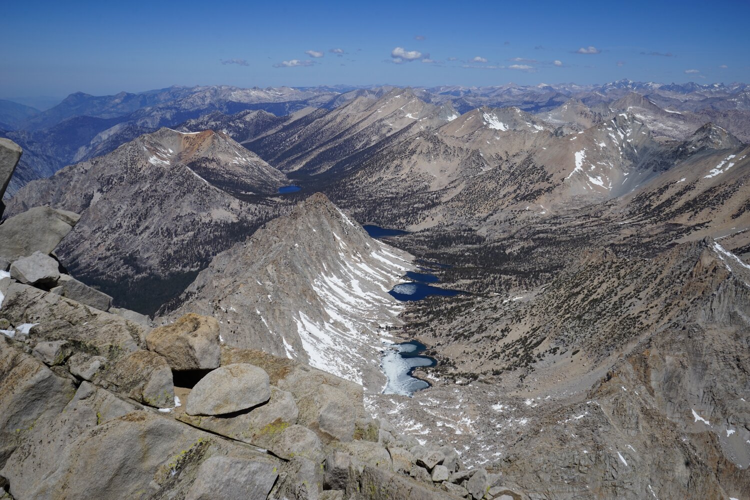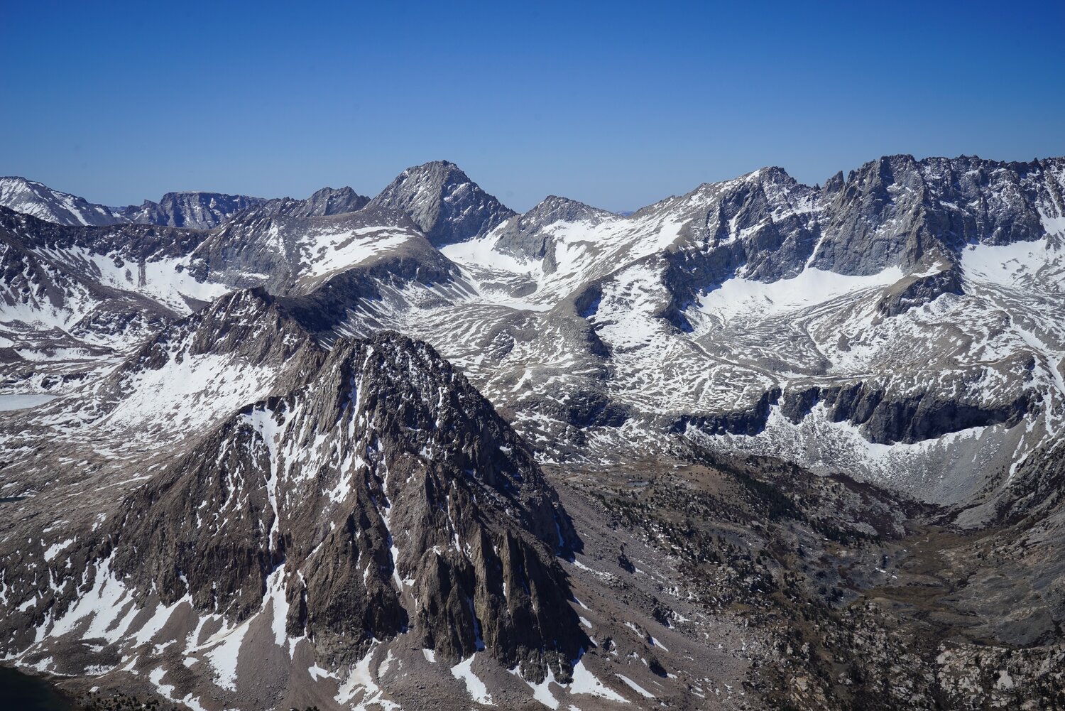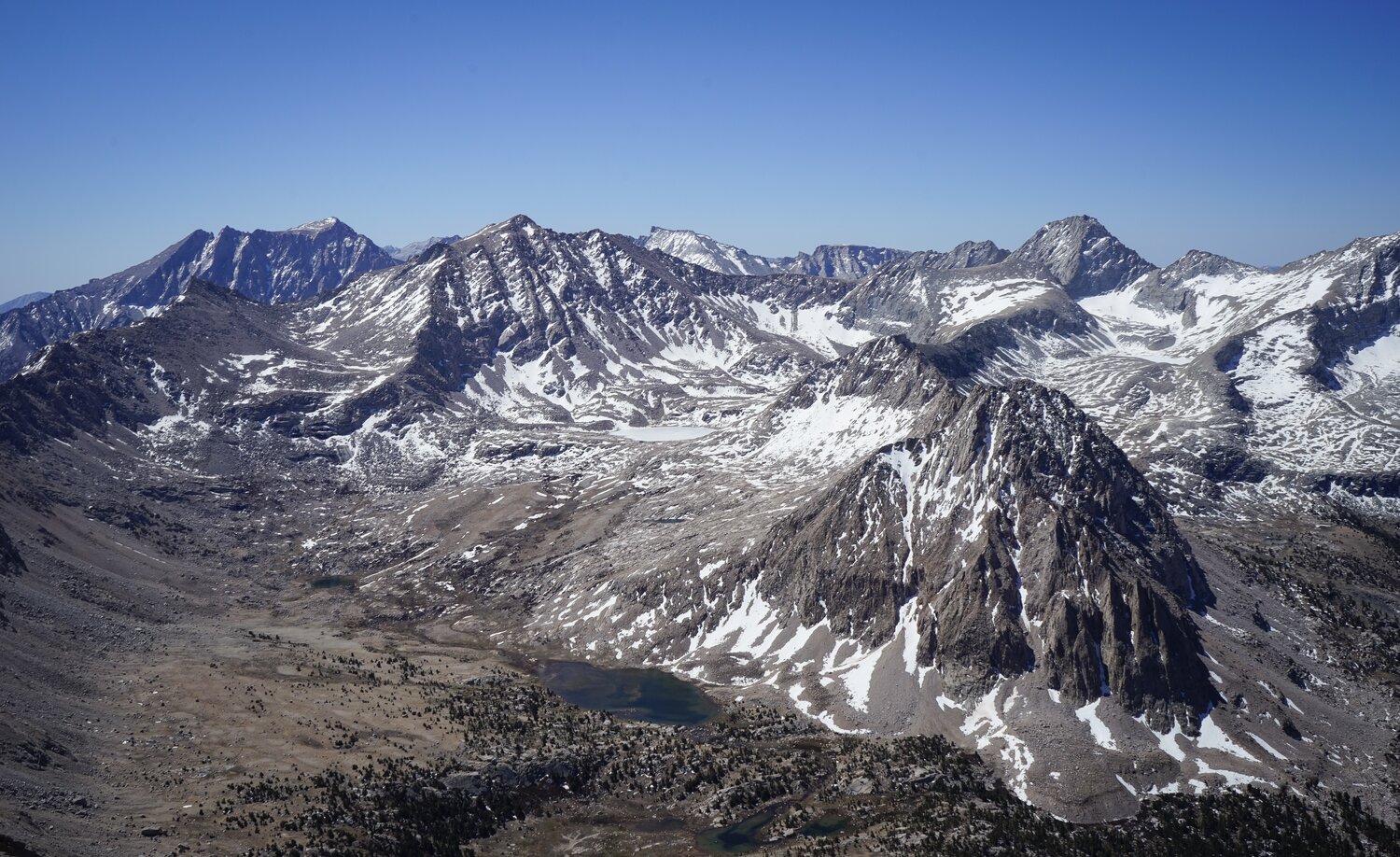 To the south, the Kings-Kern Divide and a snowy Forester Pass dominated the view.