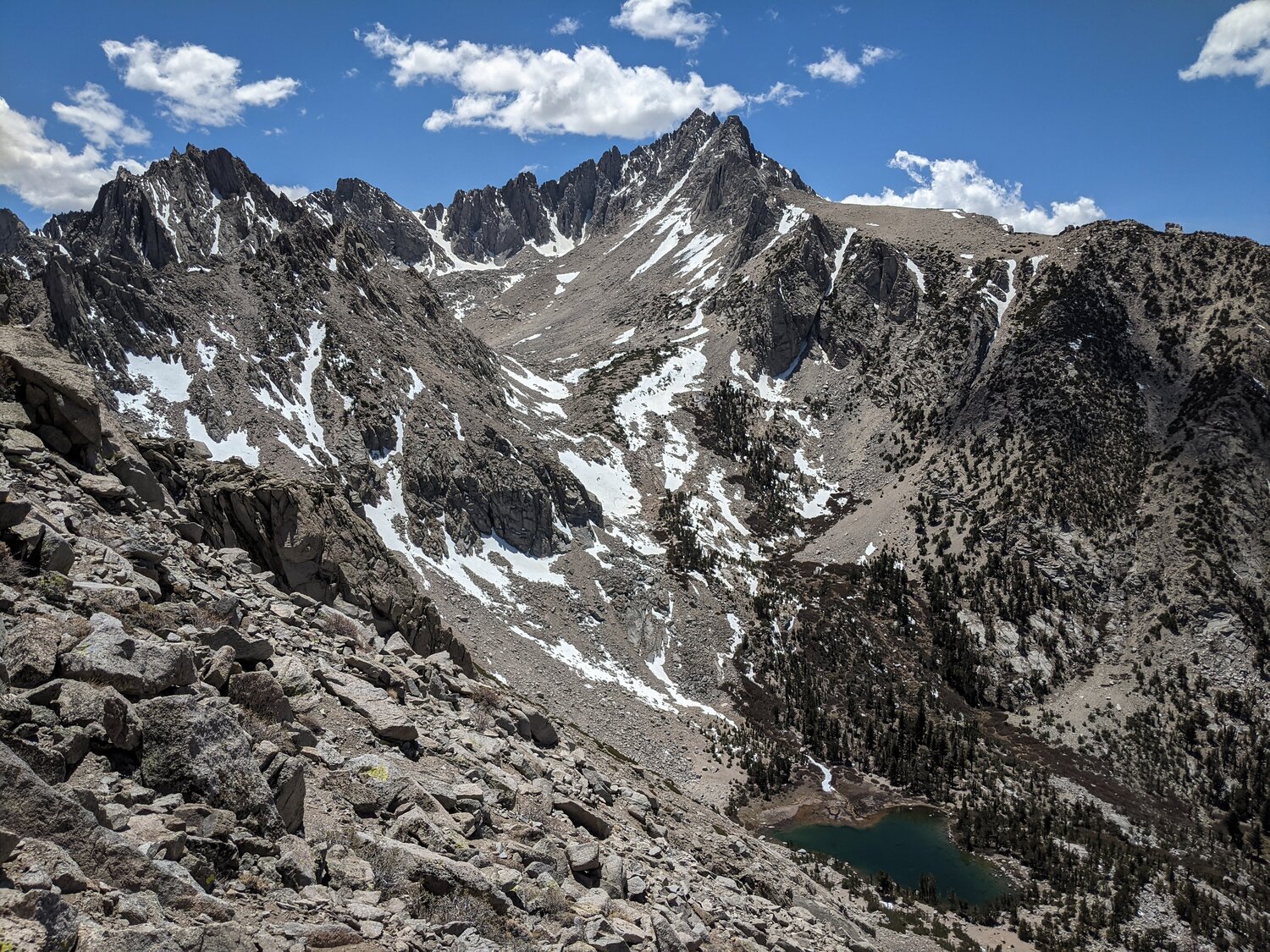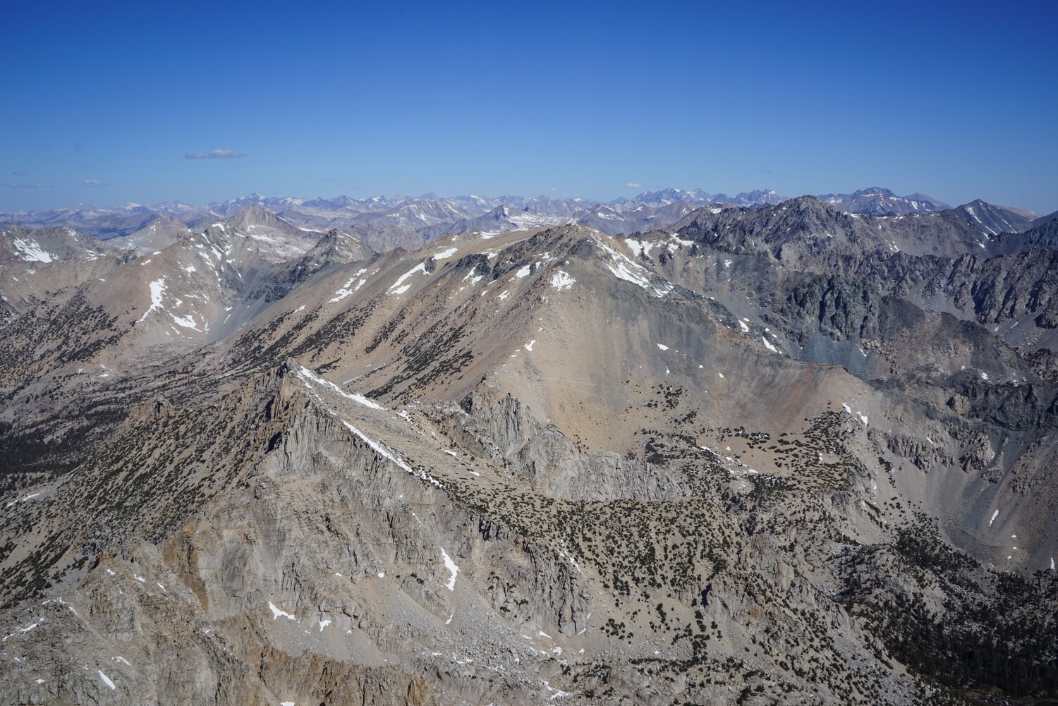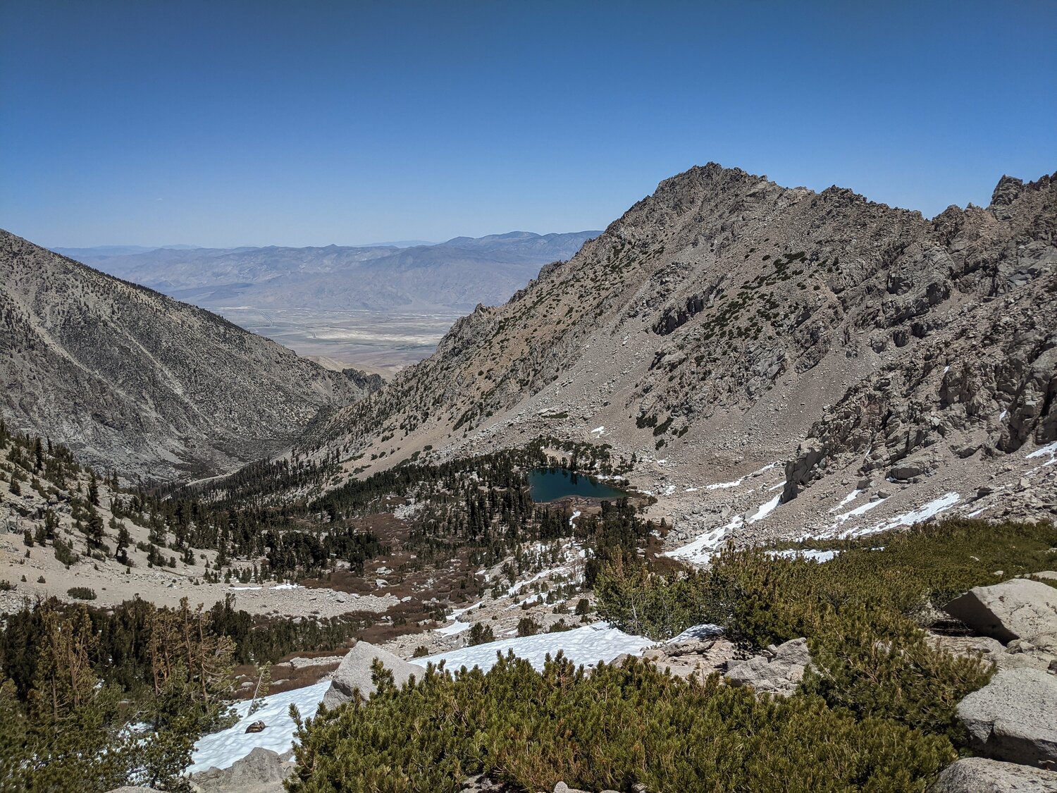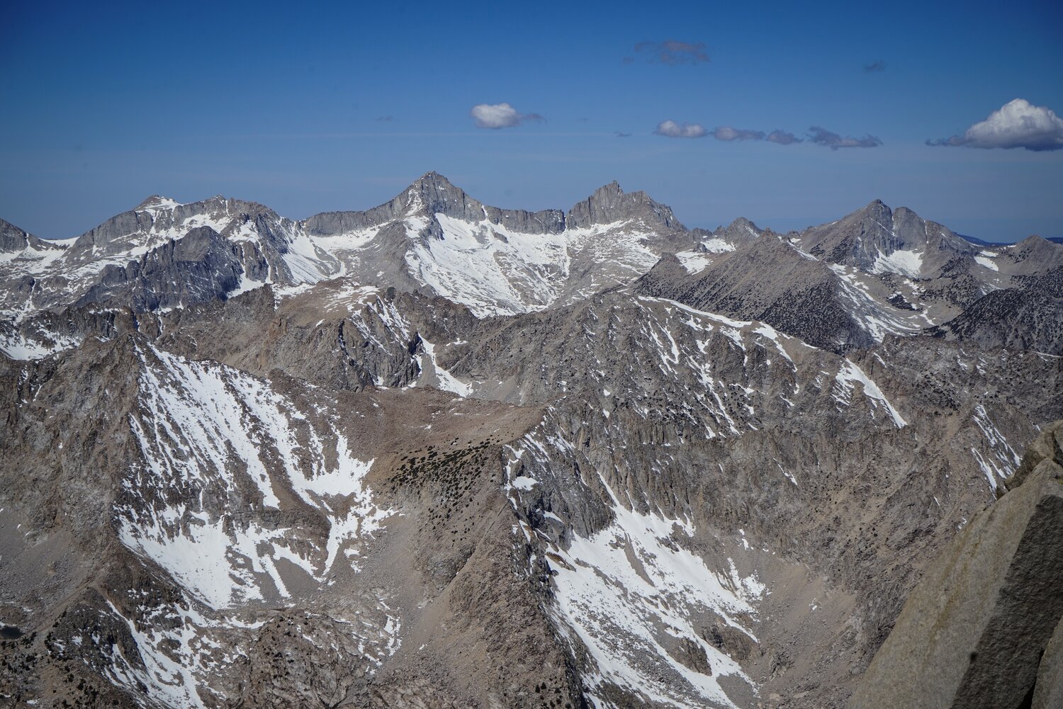 To the south, the Kings-Kern Divide and a snowy Forester Pass dominated the view.