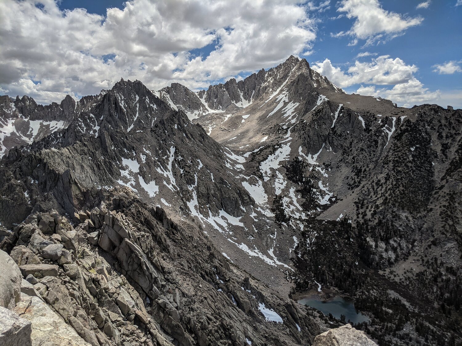 There were great views to the north, including Mount Clarence King, The Palisades, and some of the peaks in the Black Divide, Ionian Basin, and Evolution areas.