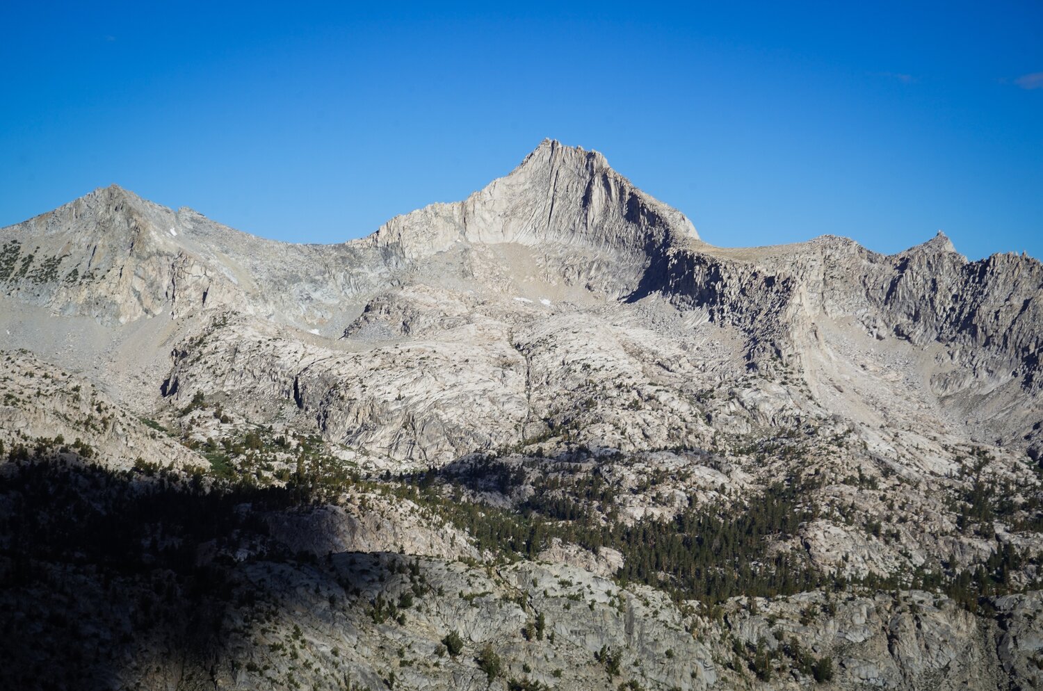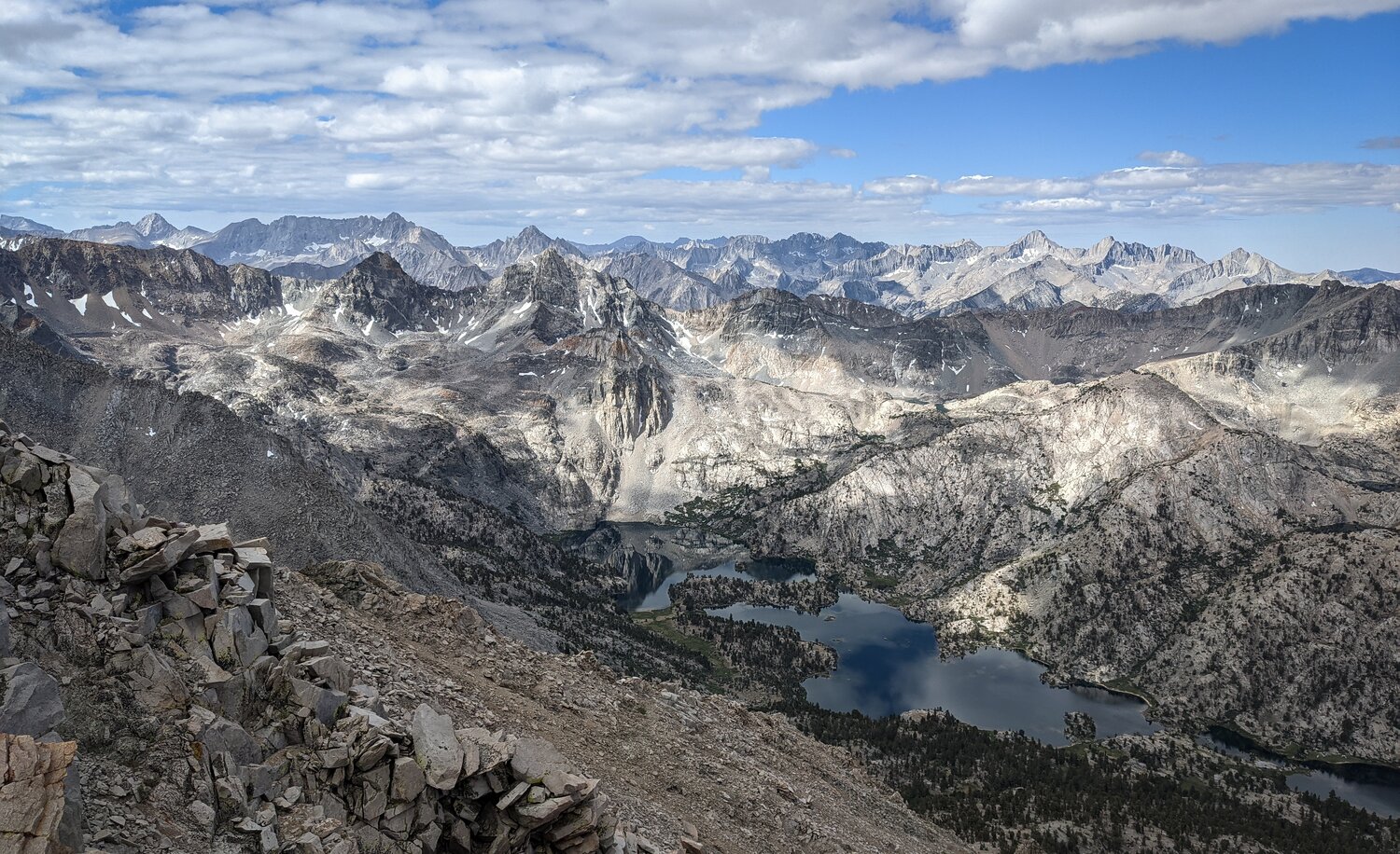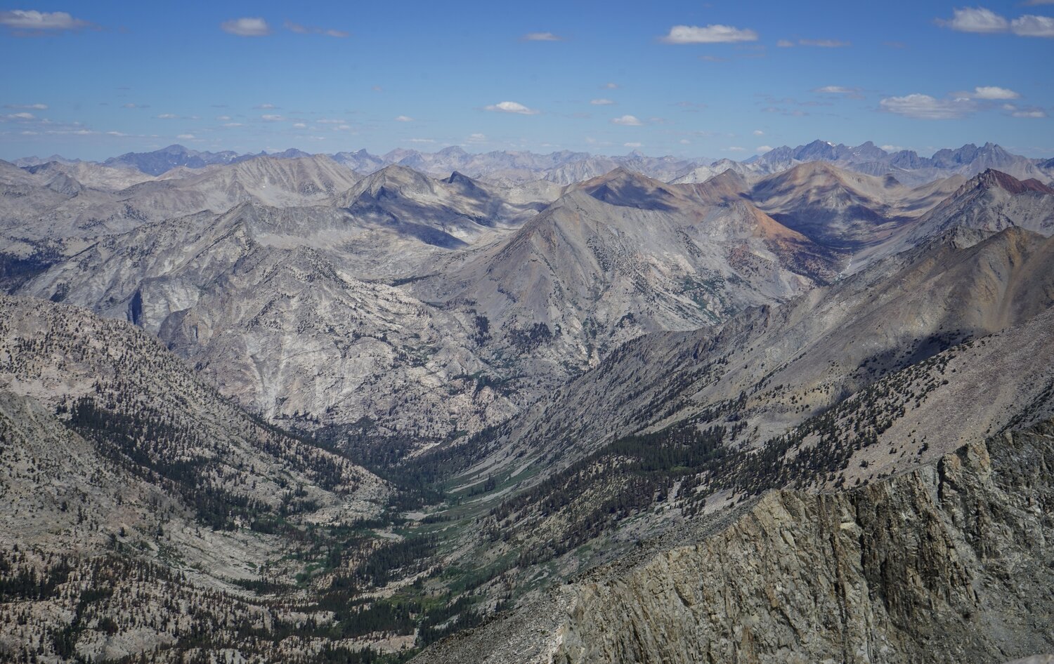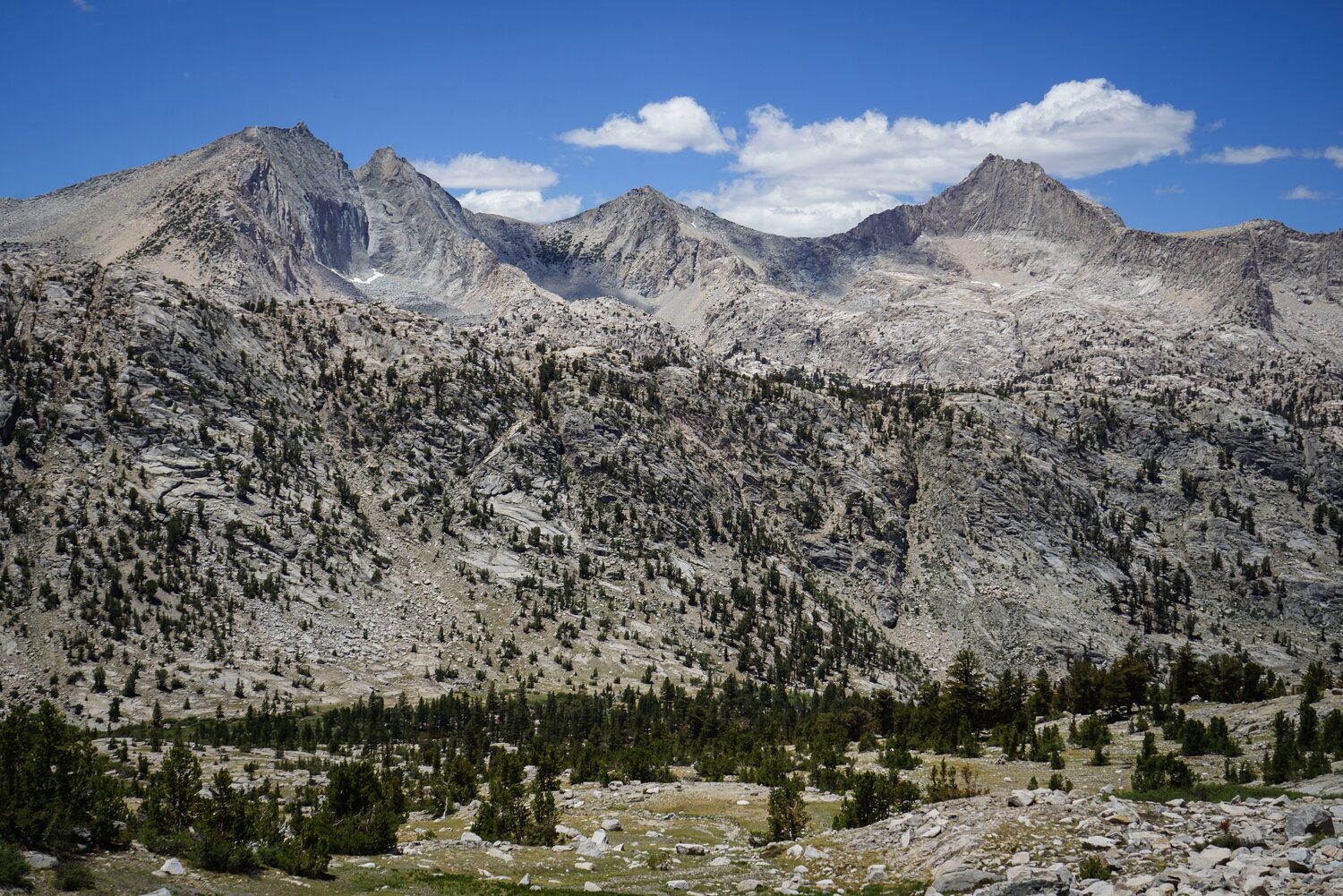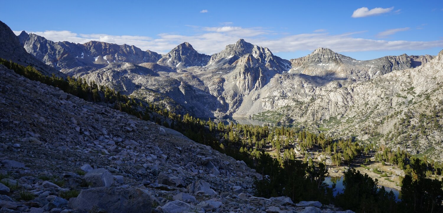 From the talus sidewalk there were incredible views in all directions. Looking north, the Palisades and the Evolution Group loomed on the horizon, and the White Fork (of Woods Creek) was easily visible.