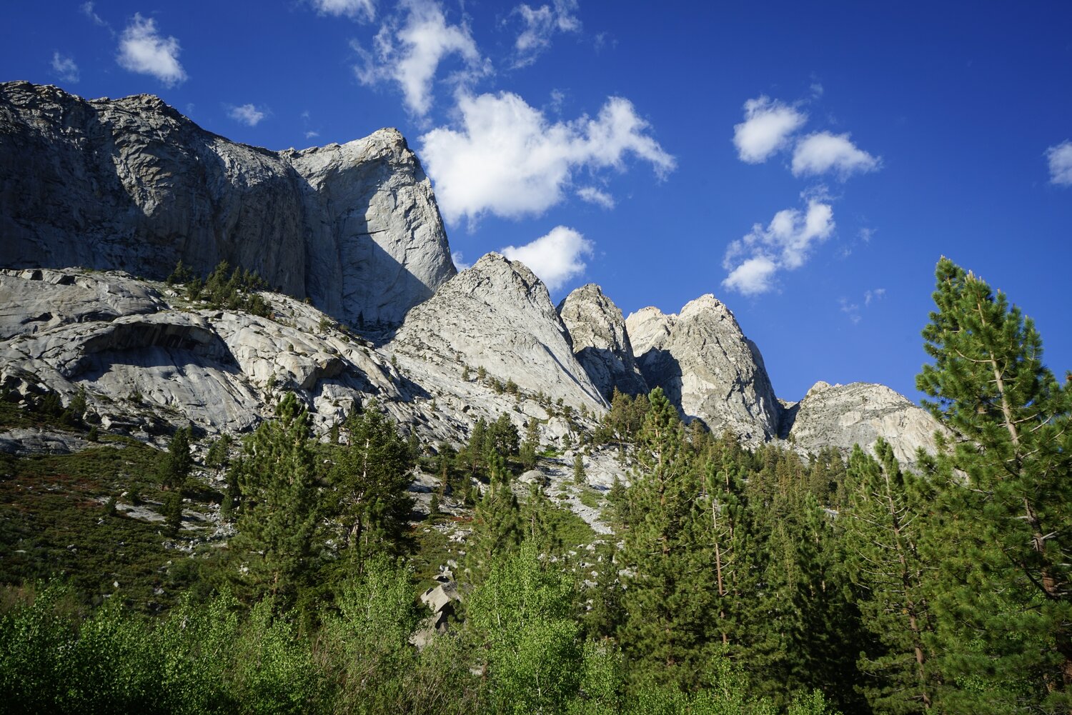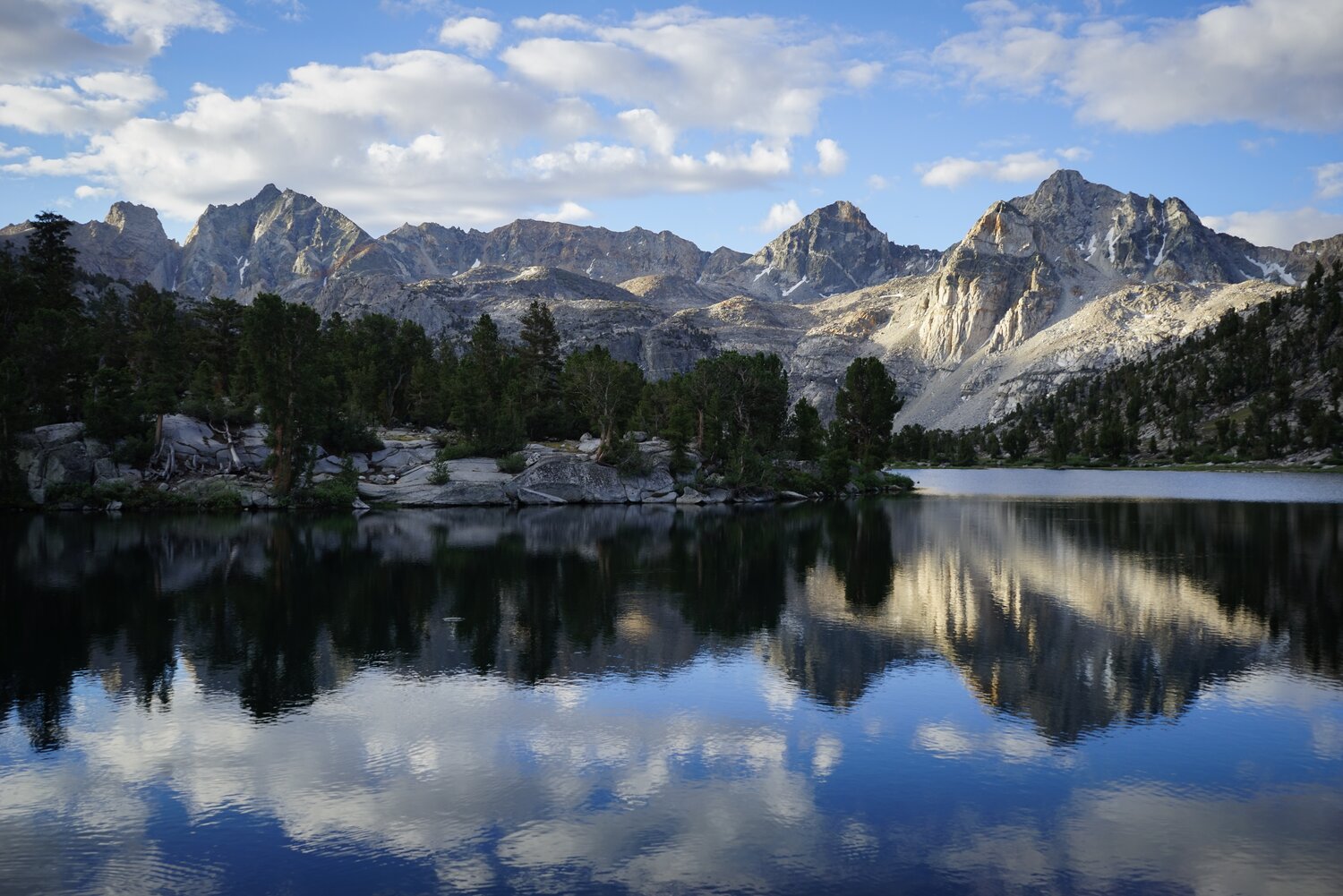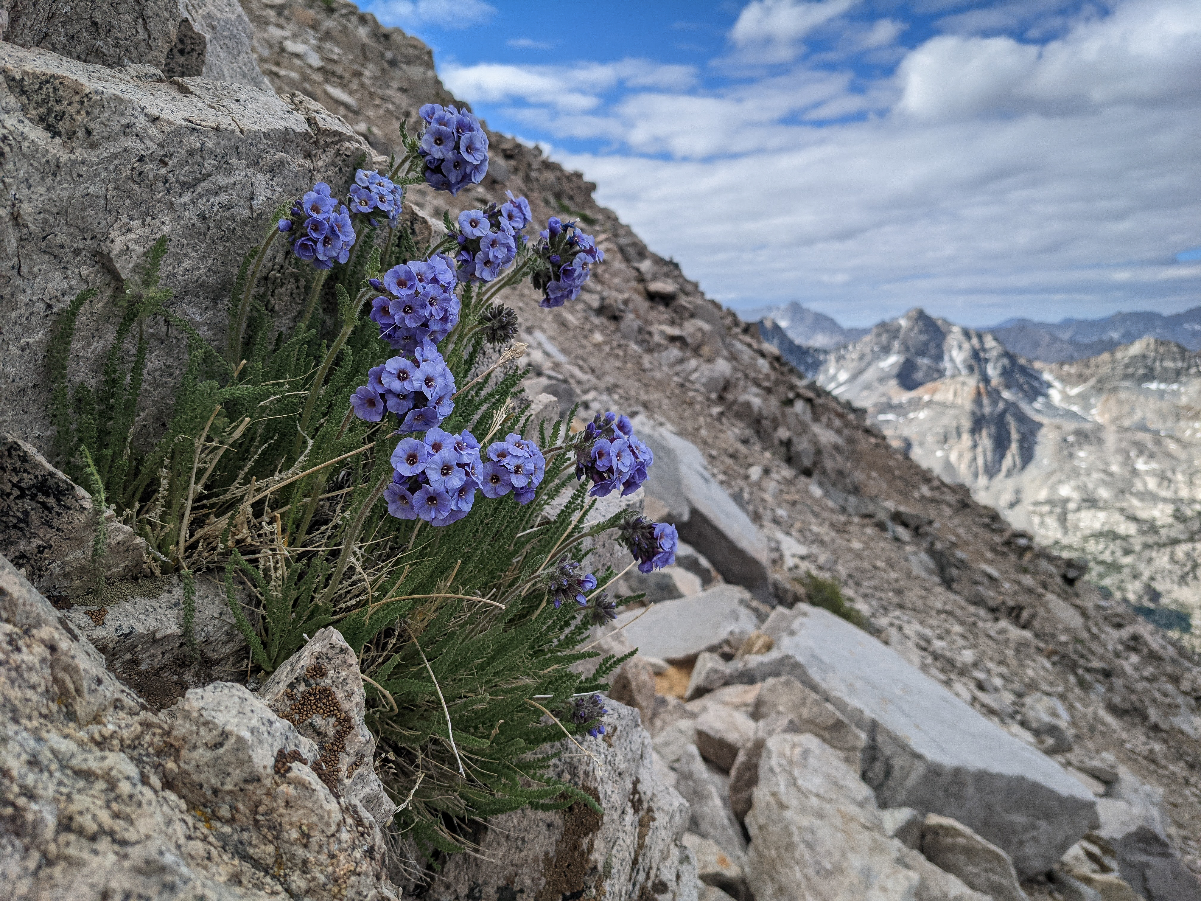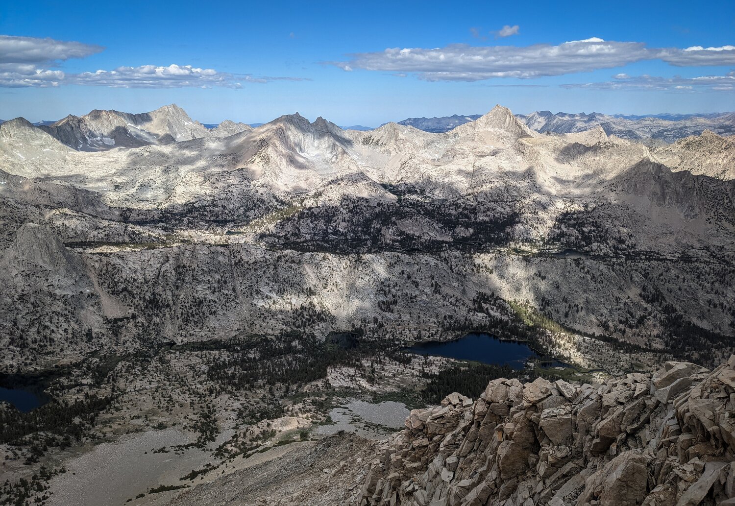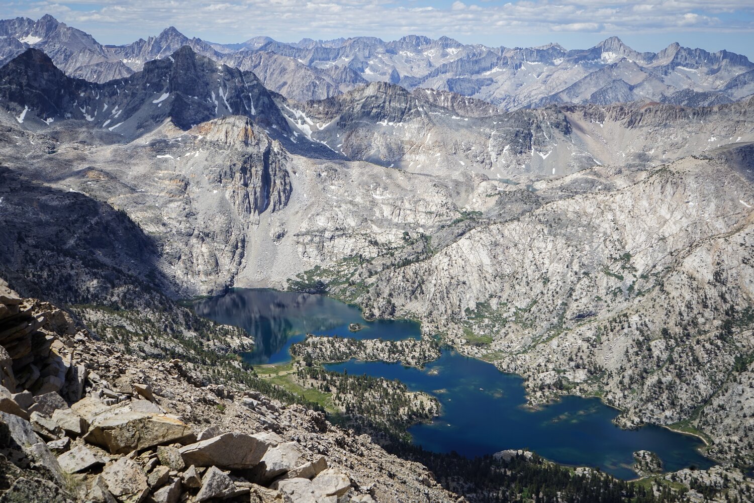 From the talus sidewalk there were incredible views in all directions. Looking north, the Palisades and the Evolution Group loomed on the horizon, and the White Fork (of Woods Creek) was easily visible.