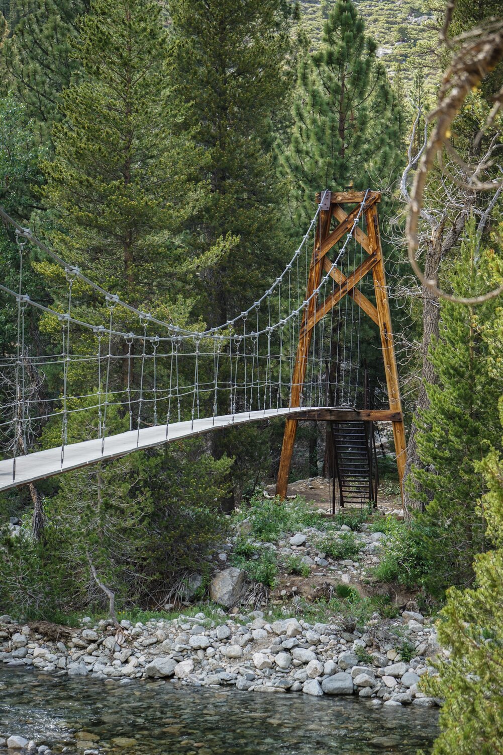 The impressive Woods Creek suspension bridge. We crossed the bridge and continued on down Woods Creek.