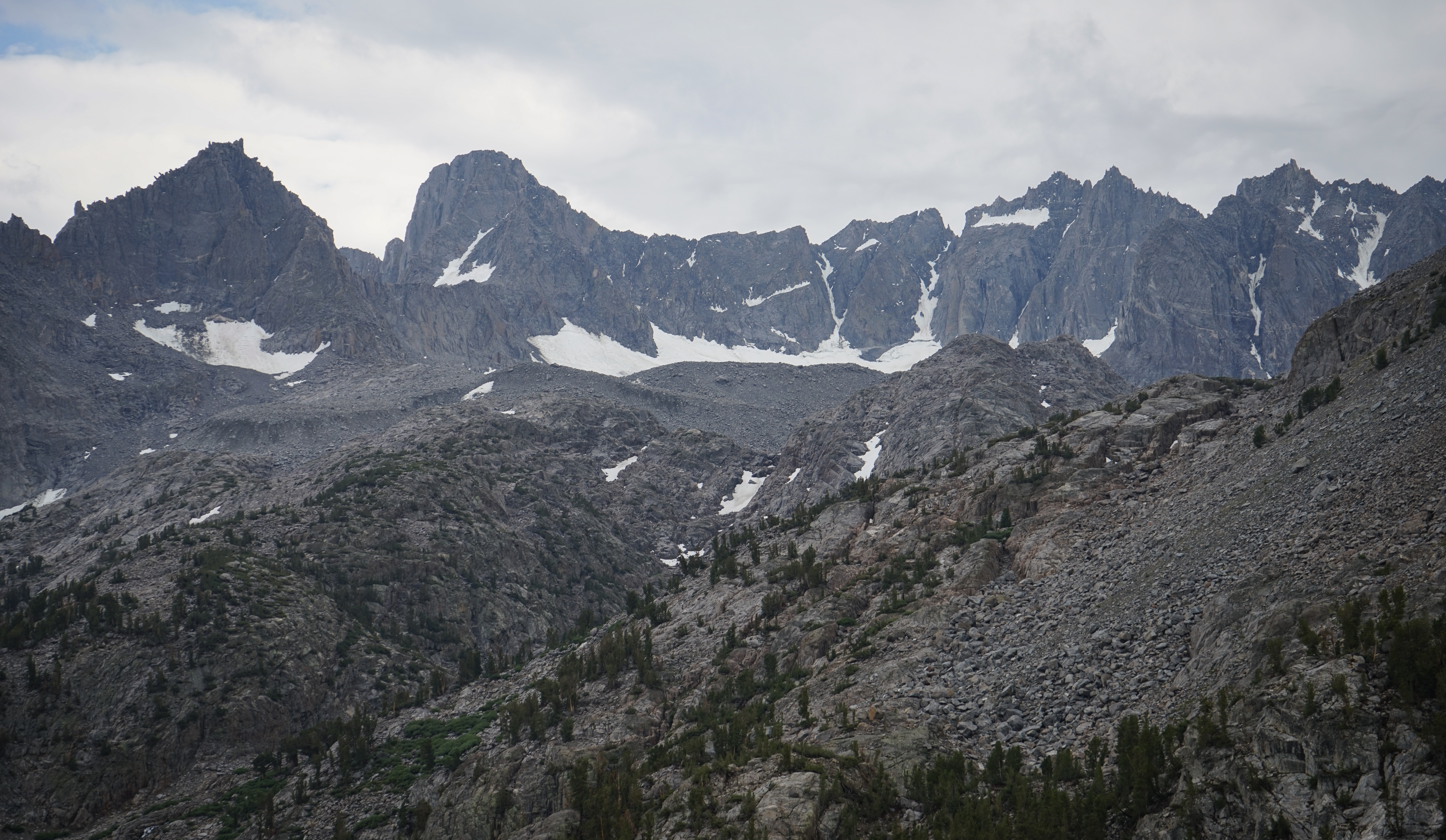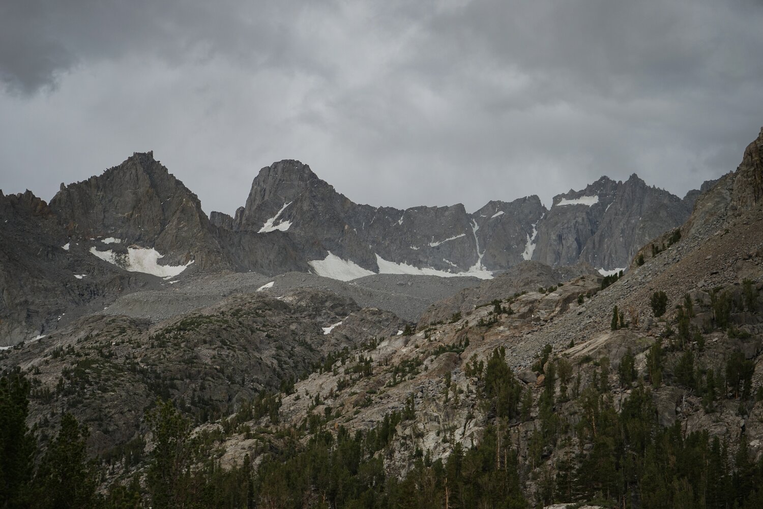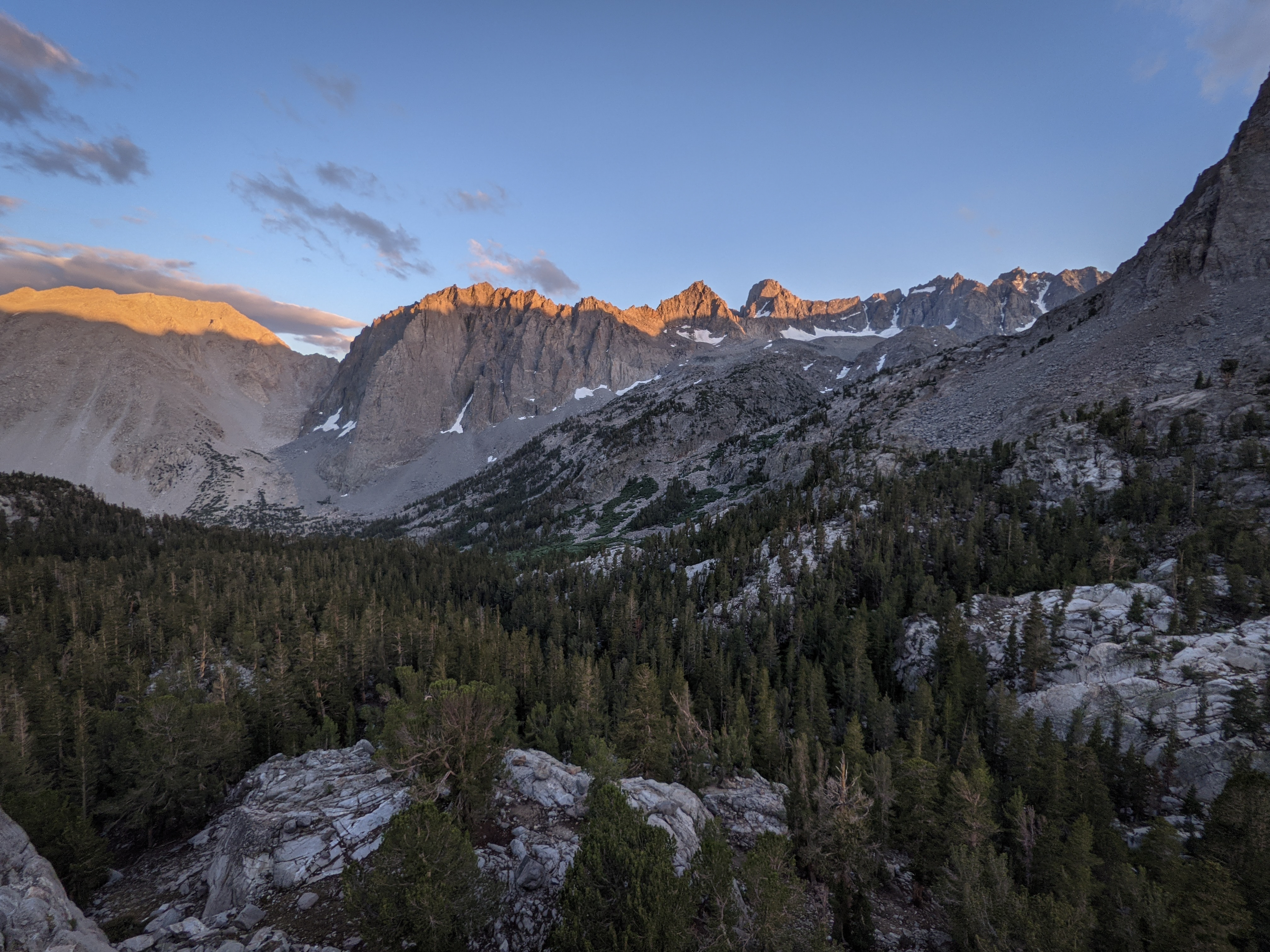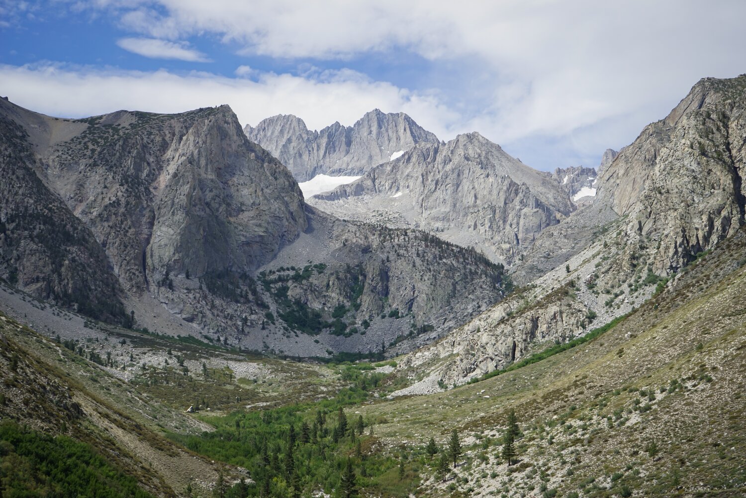 From the trailhead one can just spy Middle Palisade and Norman Clyde Peak up the South Fork.