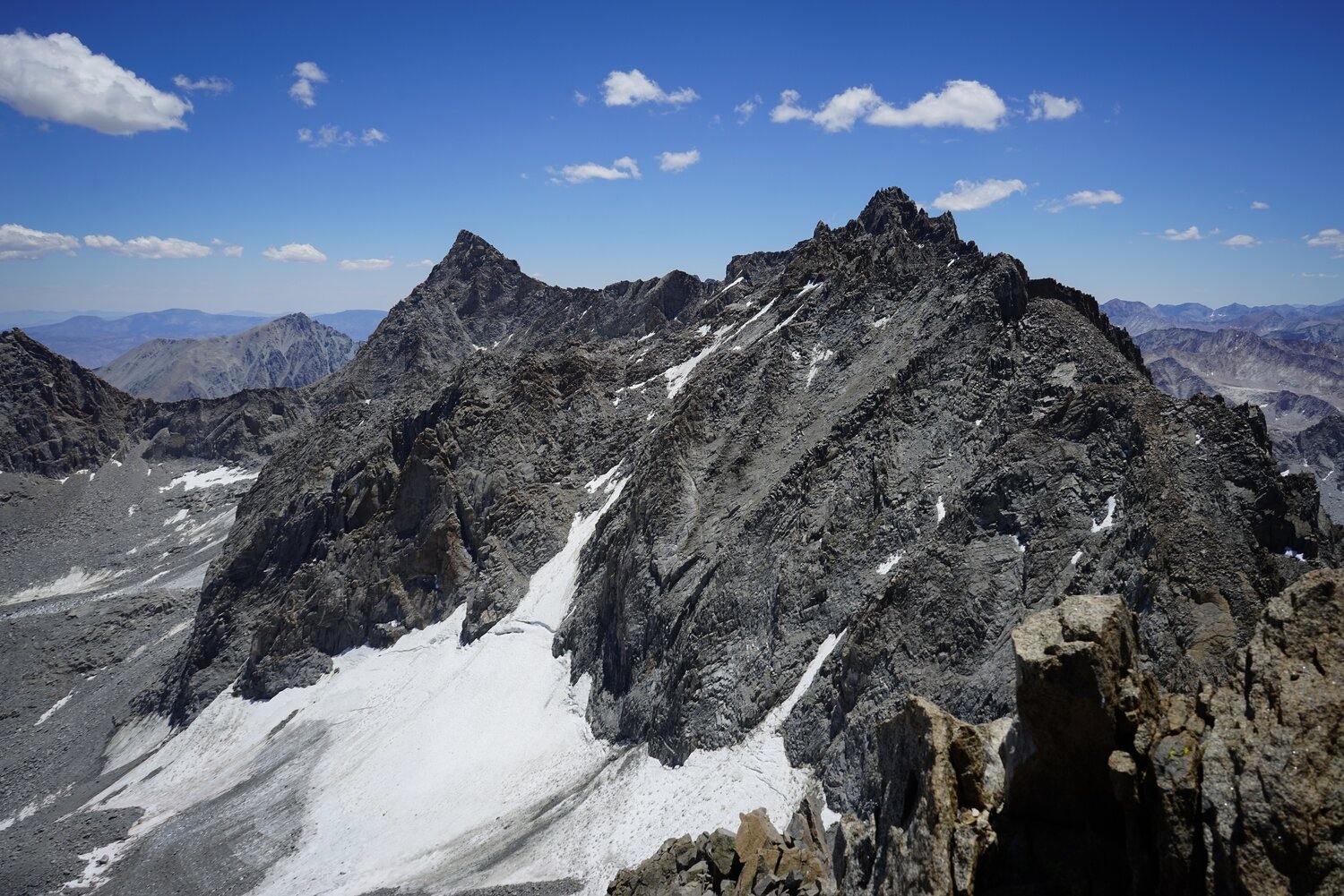 Looking through the notch between Mount Winchell and Thunderbolt Peak.
