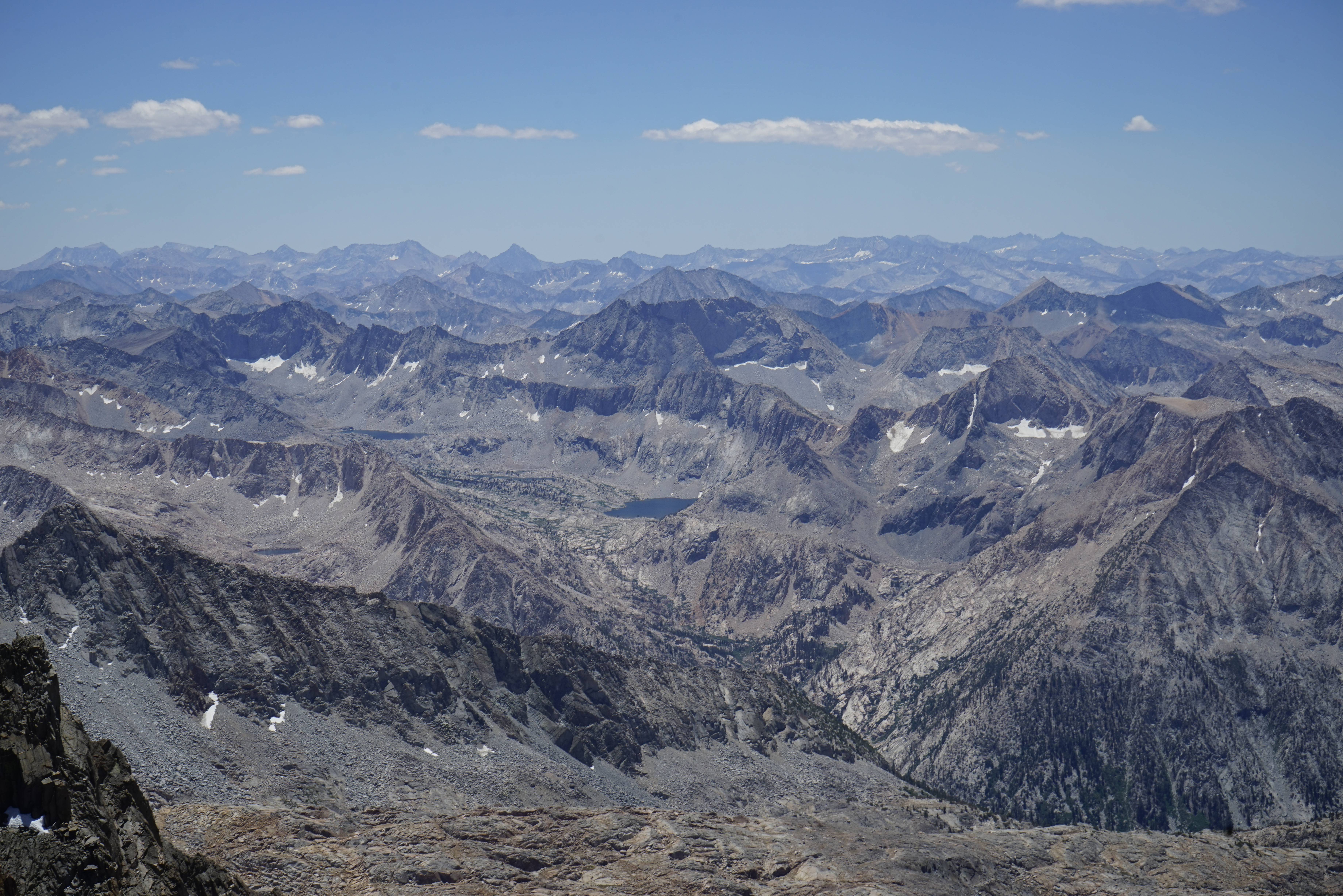 A jumble of mountains just north of Bishop Pass, including Mount Darwin.