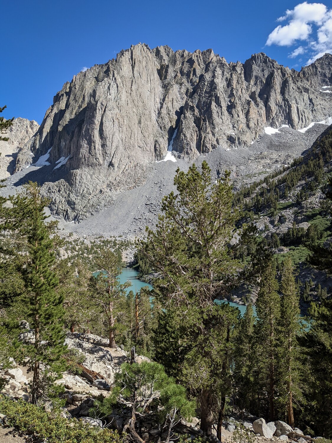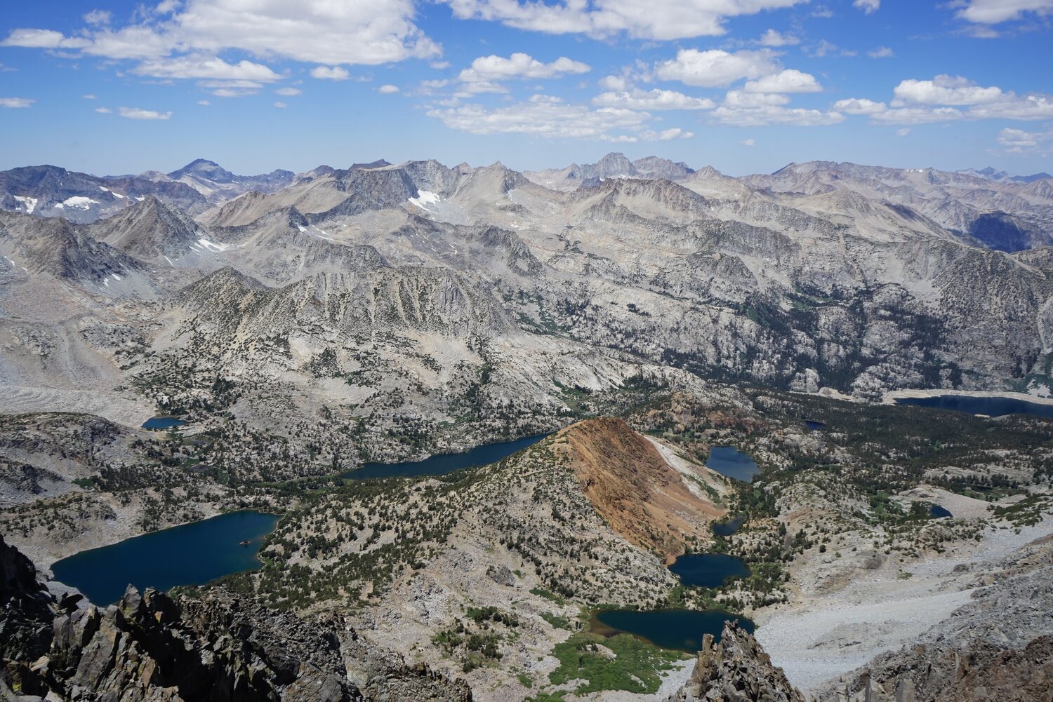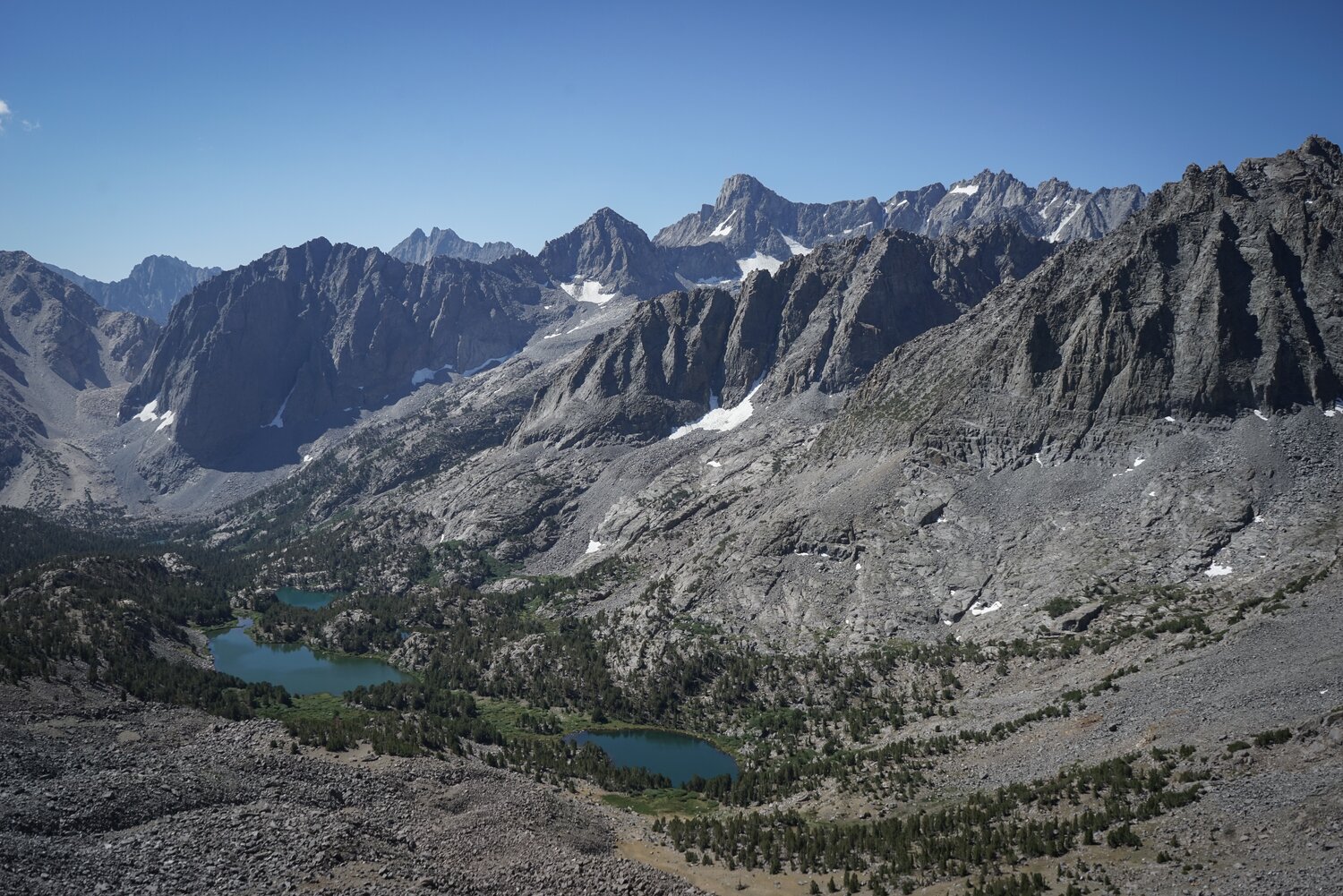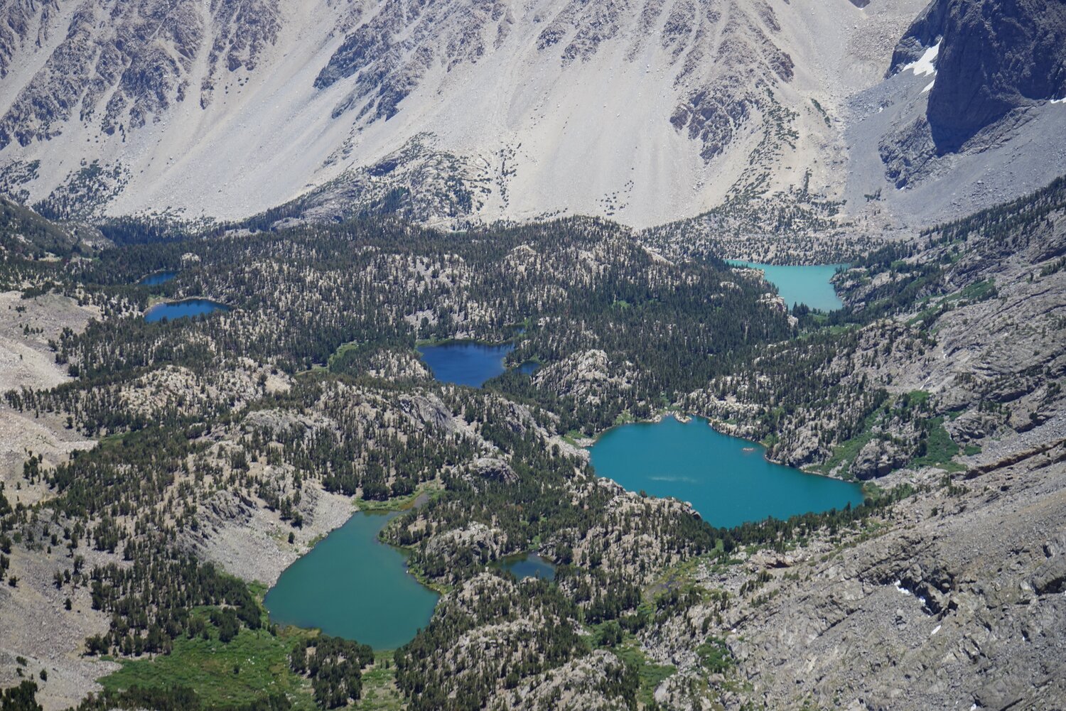 Looking back down at the lakes of the North Fork of Big Pine Creek.