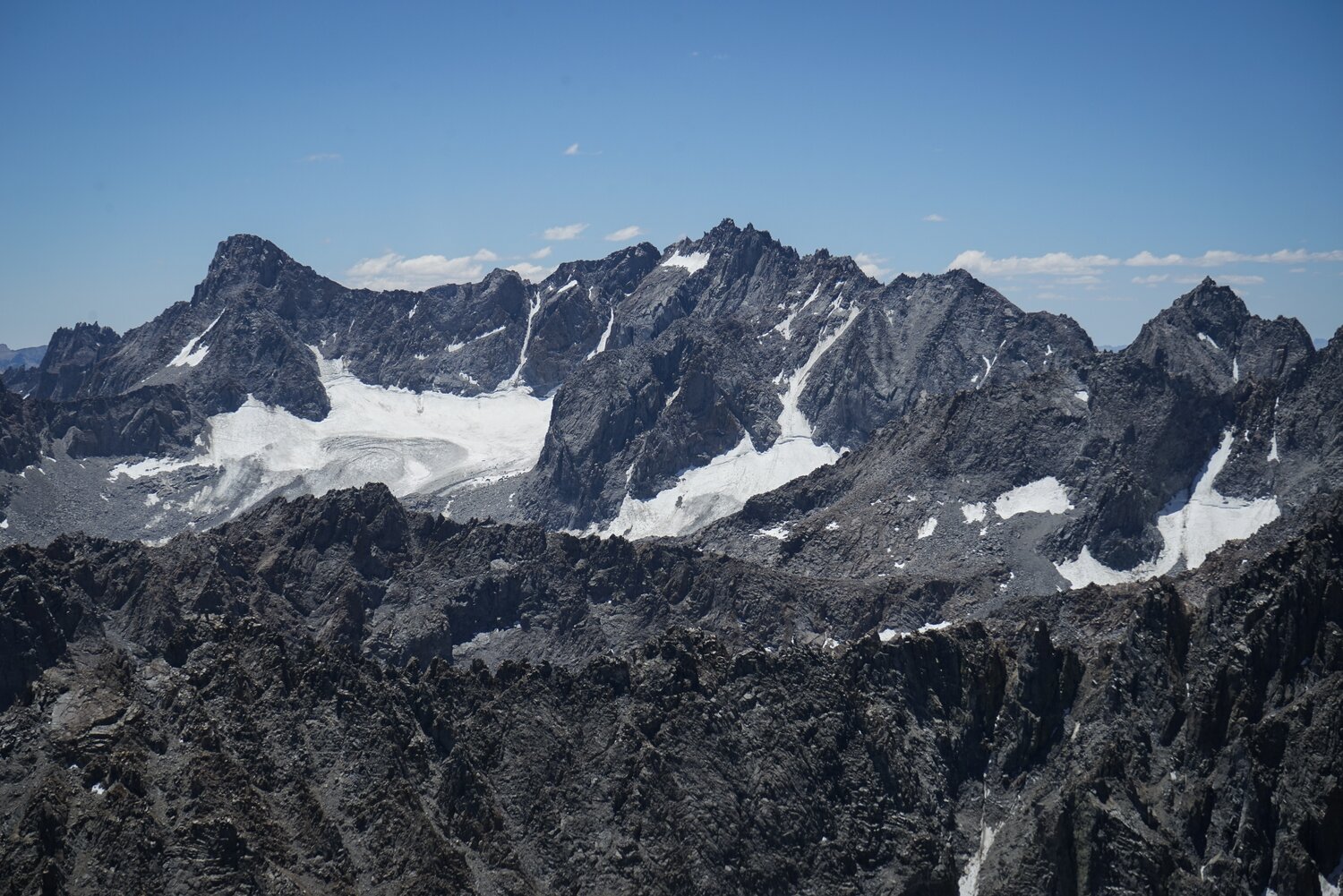 The impressive view south to the Palisades from the summit of Cloudripper.