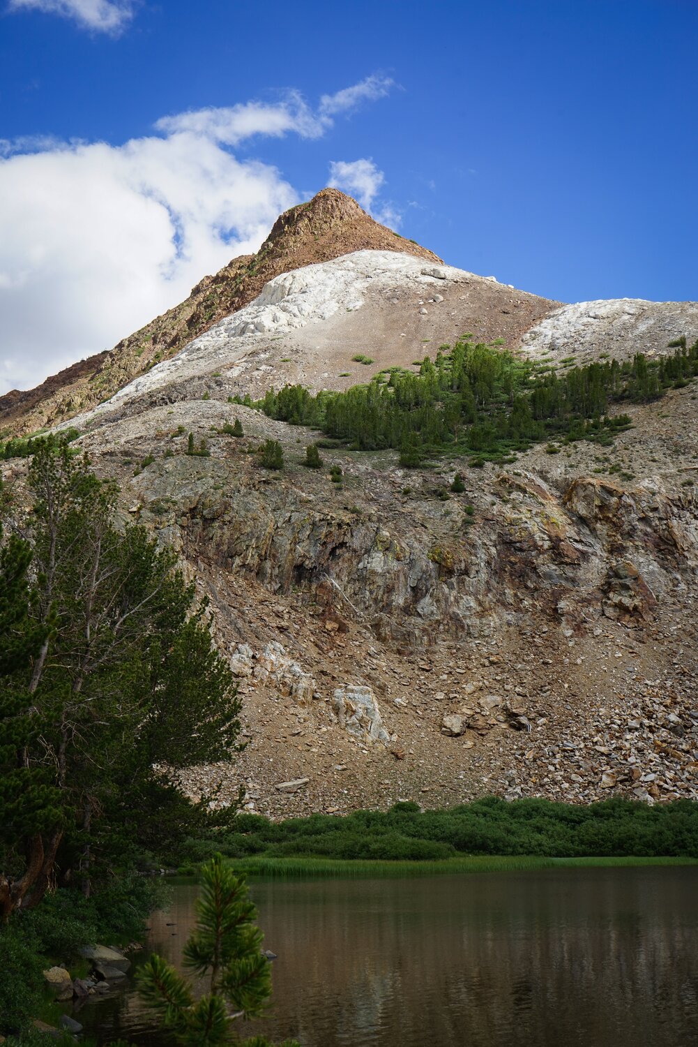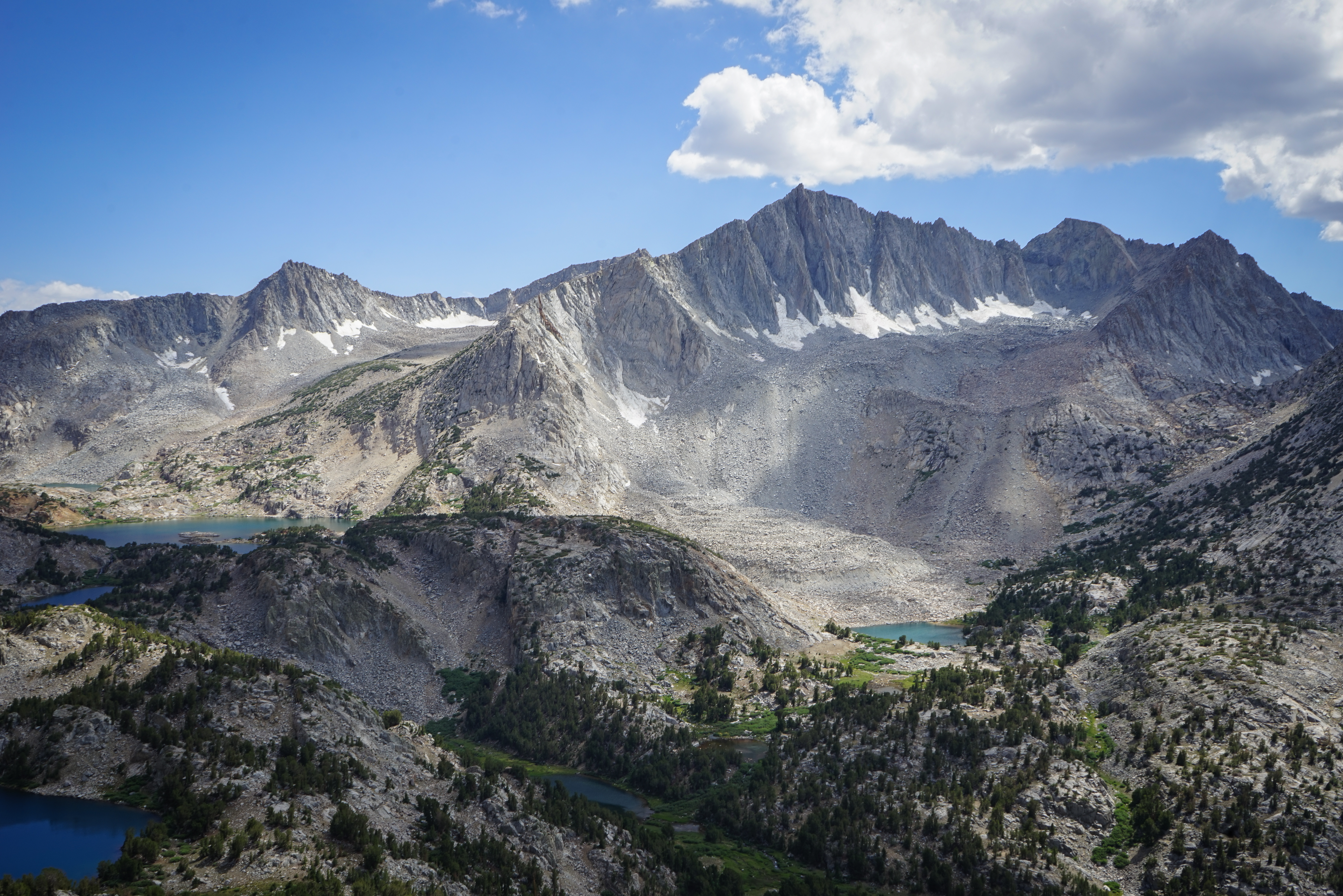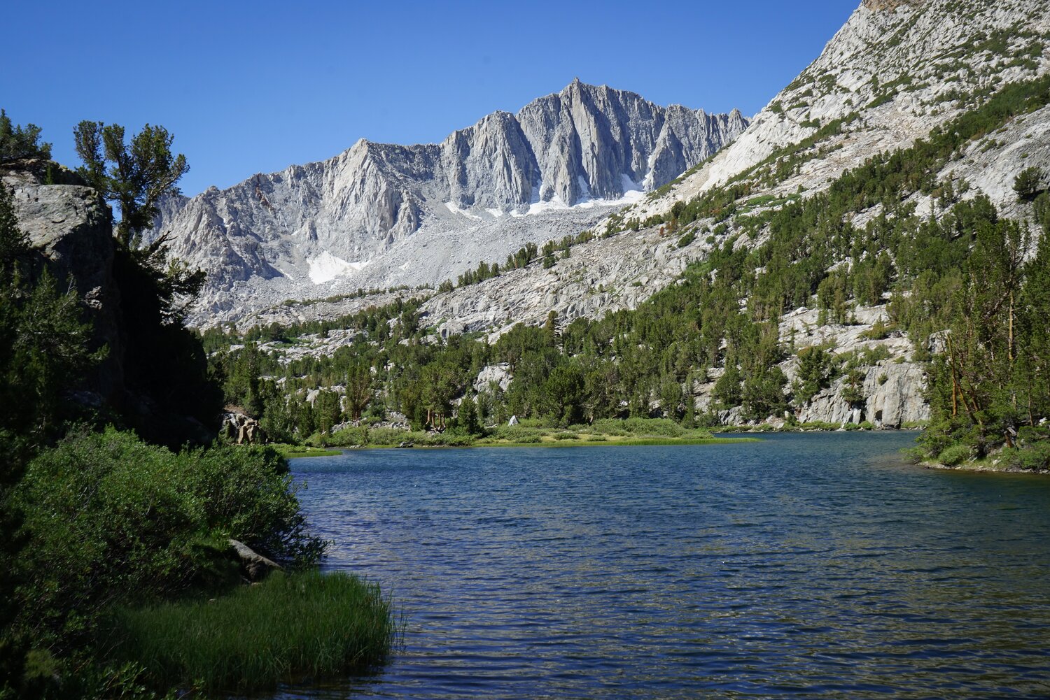 Mount Agassiz above Bishop Lake and Bishop Pass. Some clouds came in, but nothing too concerning. I took a slightly different route down, dropping lower to Saddlerock Lake and stopping to soak my feet for a bit before rejoining the trail.