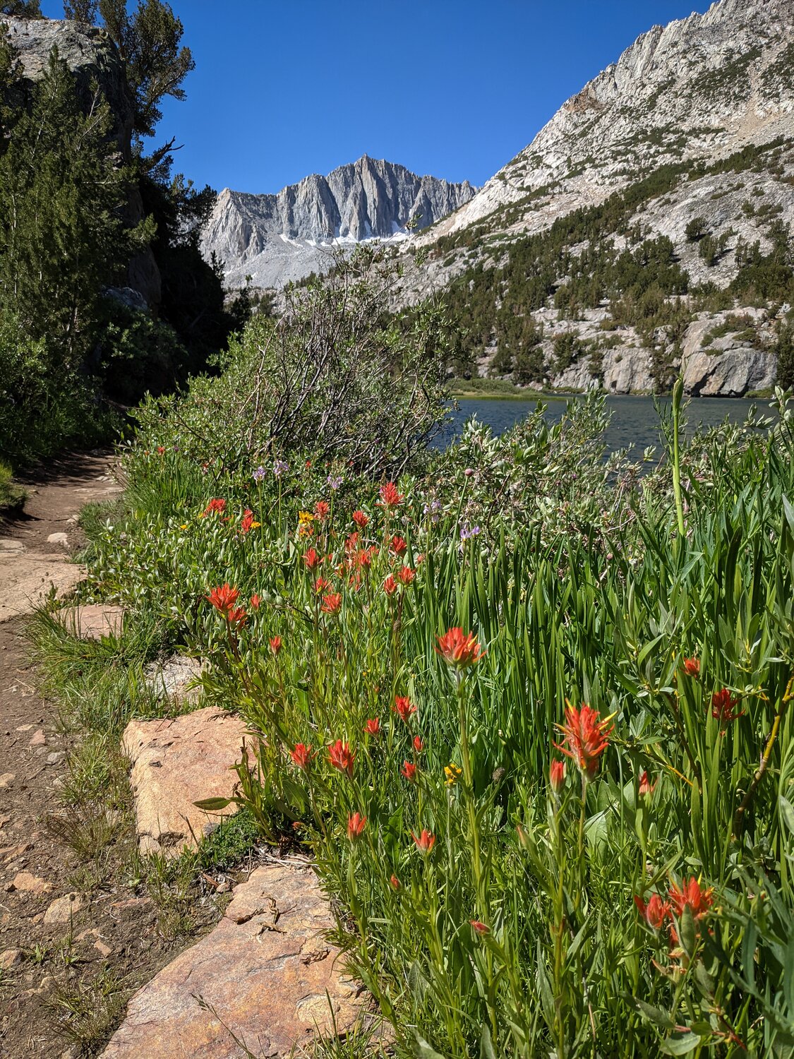Below the lowest Chocolate Lake I got very lost in the thin woods and headed off towards Marie Louise Lakes before realizing my mistake. I reversed course and crossed a small saddle before rejoining the Bishop Pass Trail and hiking the final mile and a half or so back to my car and then driving back north to Mammoth for the night.