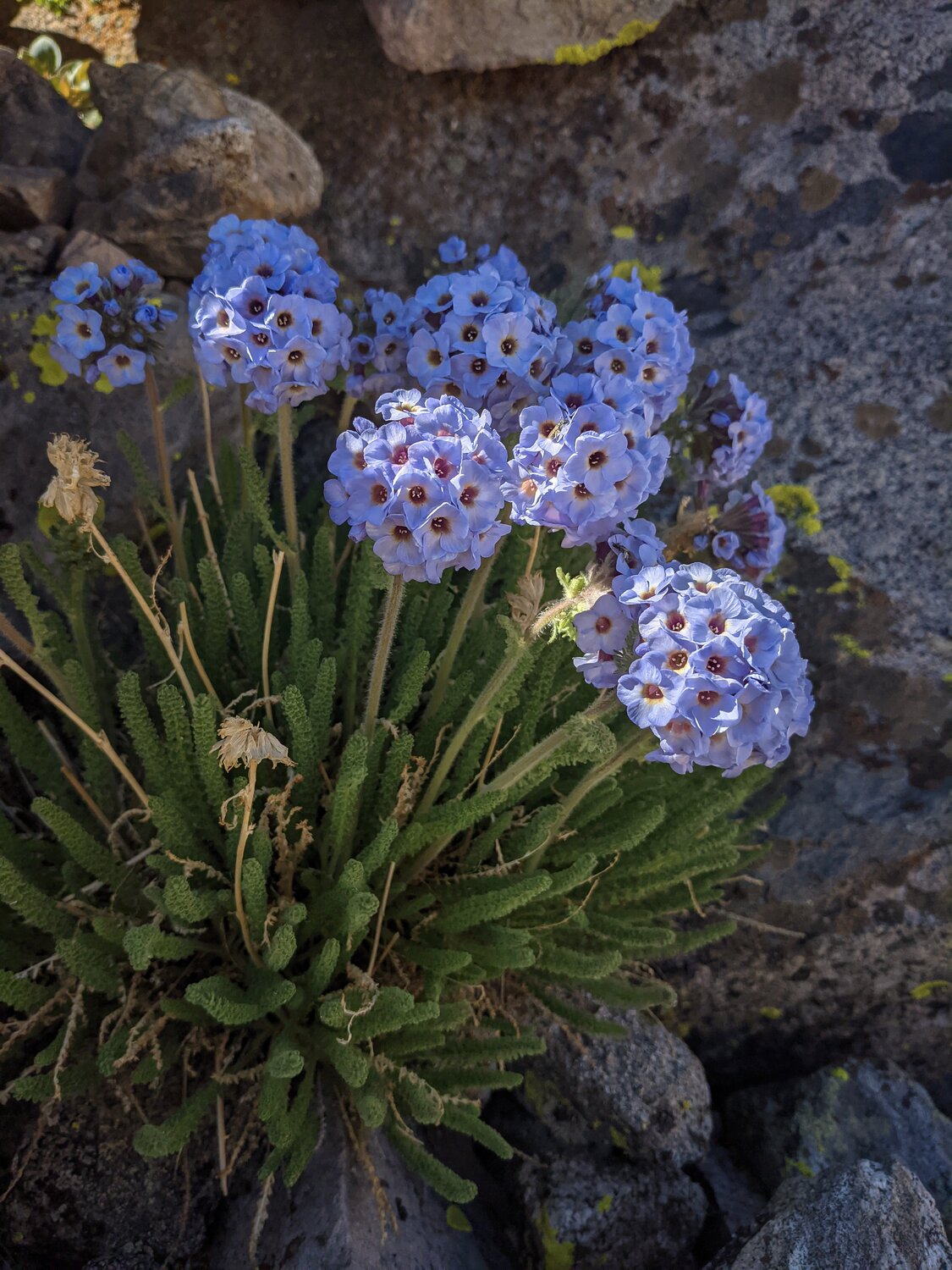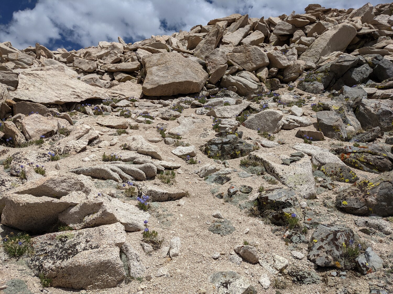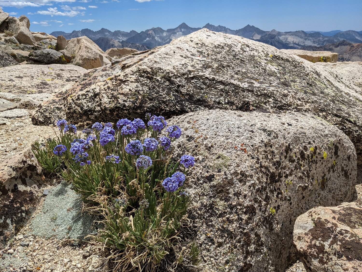Some Sky Pilot flowers near Lilley Pass. After reaching Lilley Pass it was an easy 500’ up to the summit of Kearsarge Peak. One down!