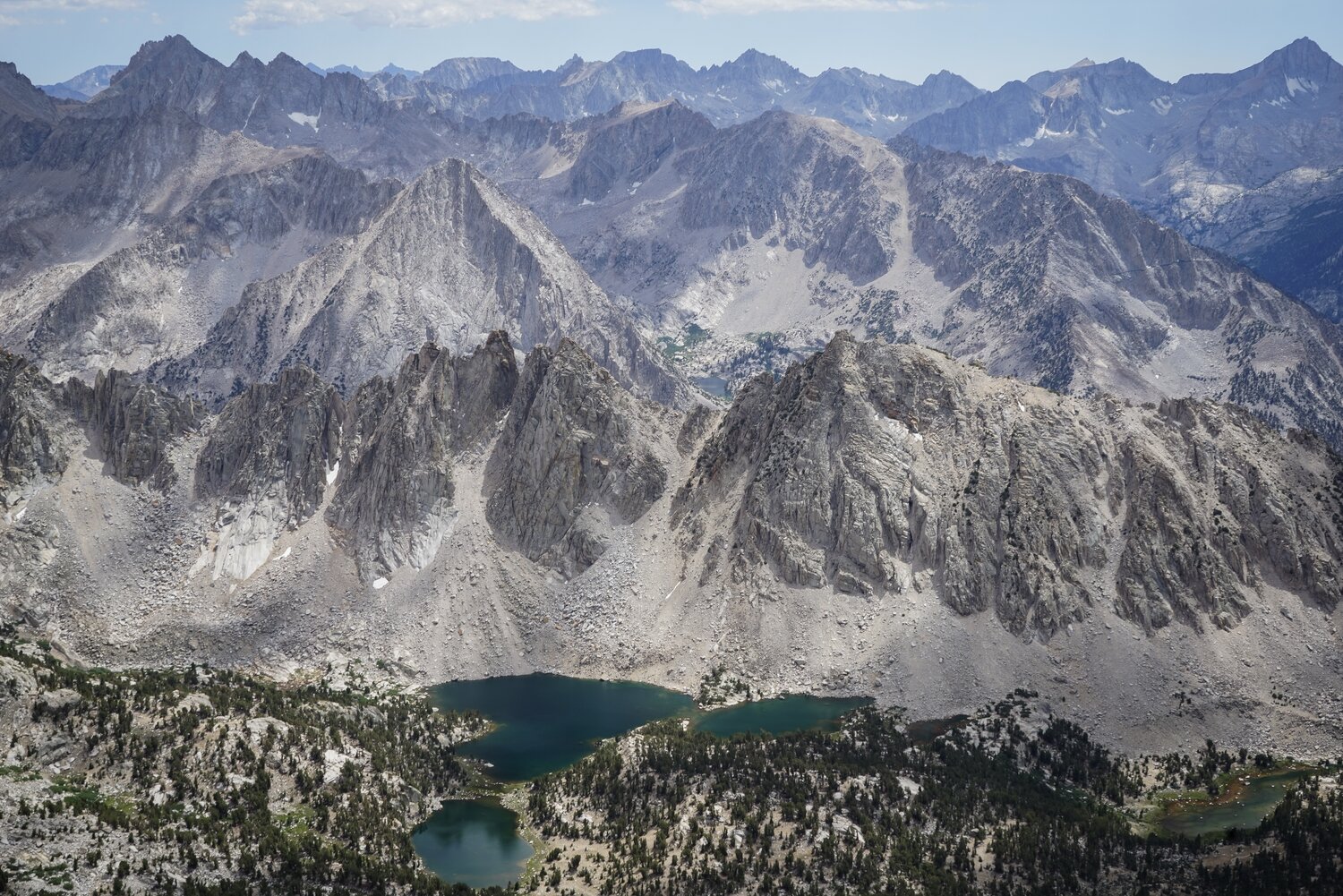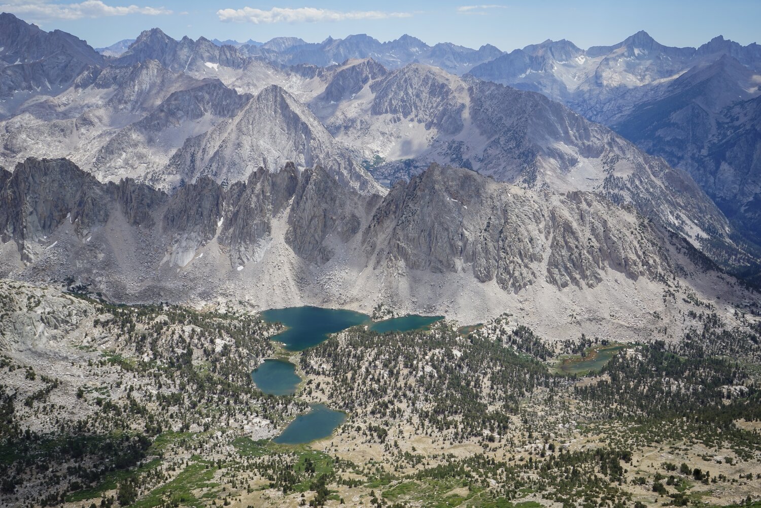 The Rae Lakes area from the summit of Dragon Peak.