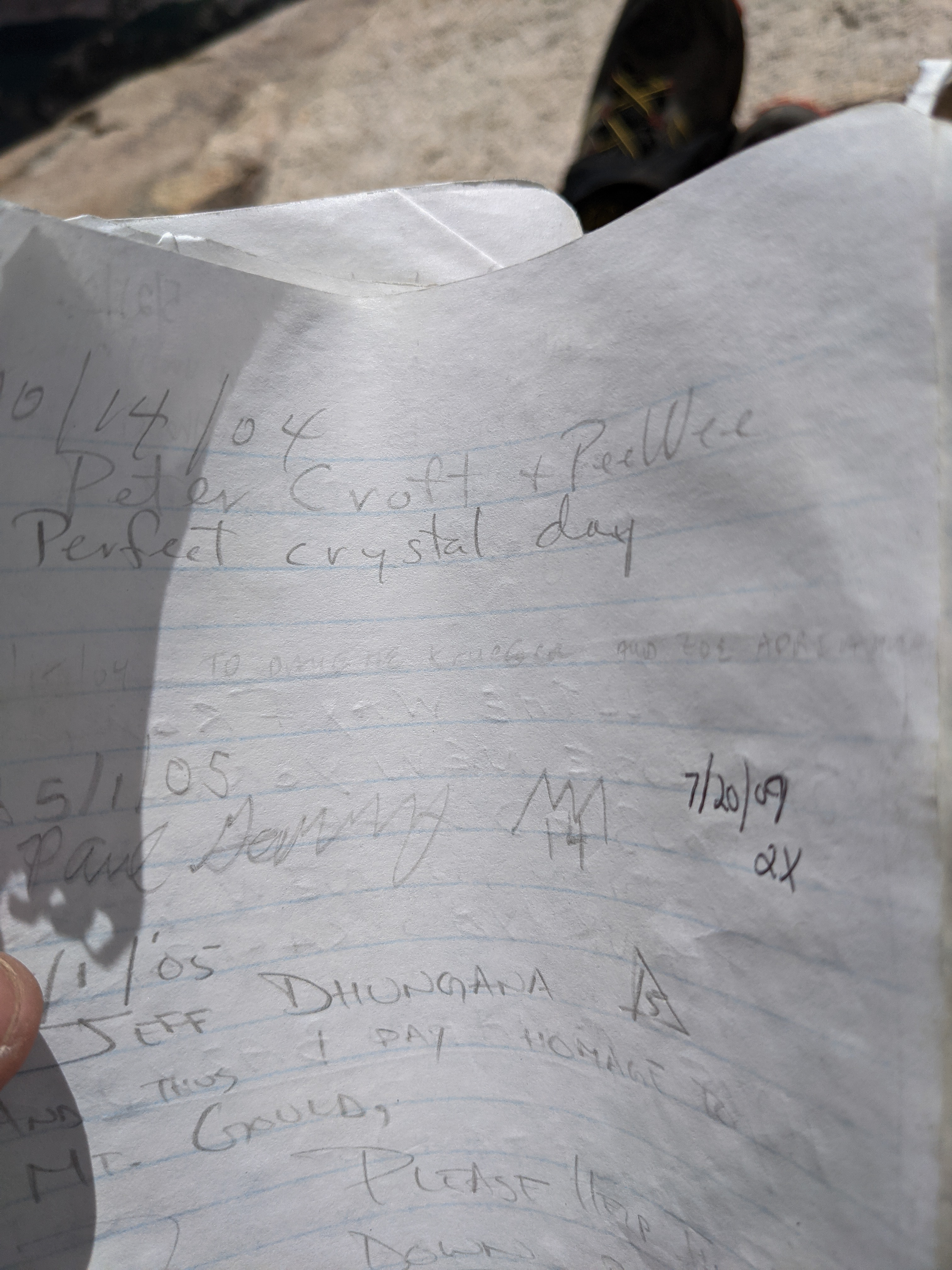The register was pretty busy, but I managed to pick out a Peter Croft entry. After a brief rest I started heading down. I headed east off the summit rocks and found them a bit harder on this side, but only for a few moves.