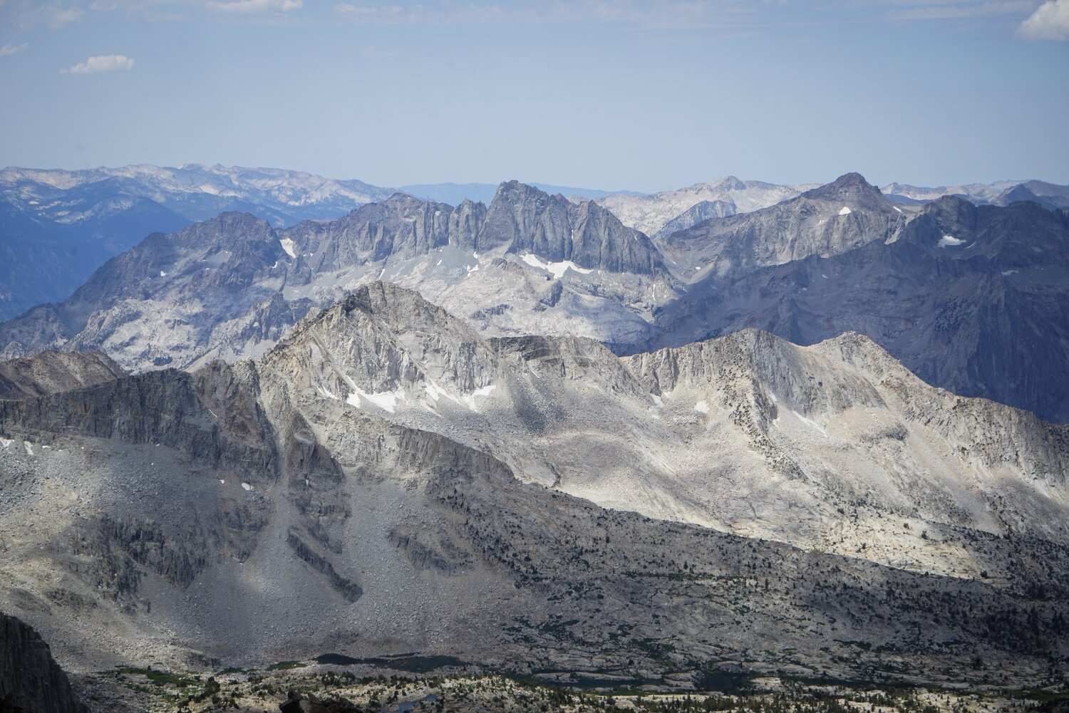 The view west to the Black Divide and Mount Goddard from the final summit slope.