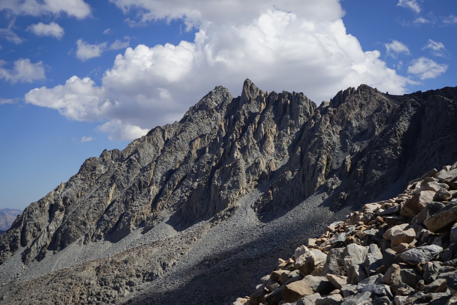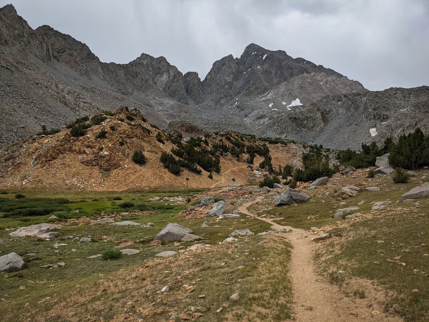 Mount Agassiz from the Bishop Pass Trail. We were somewhere around here when we heard the first thunderclap of the day. While we didn’t hear anything to our south, an impressive thunderstorm formed to our north over Mount Tom, which produced a good bit of thunder.