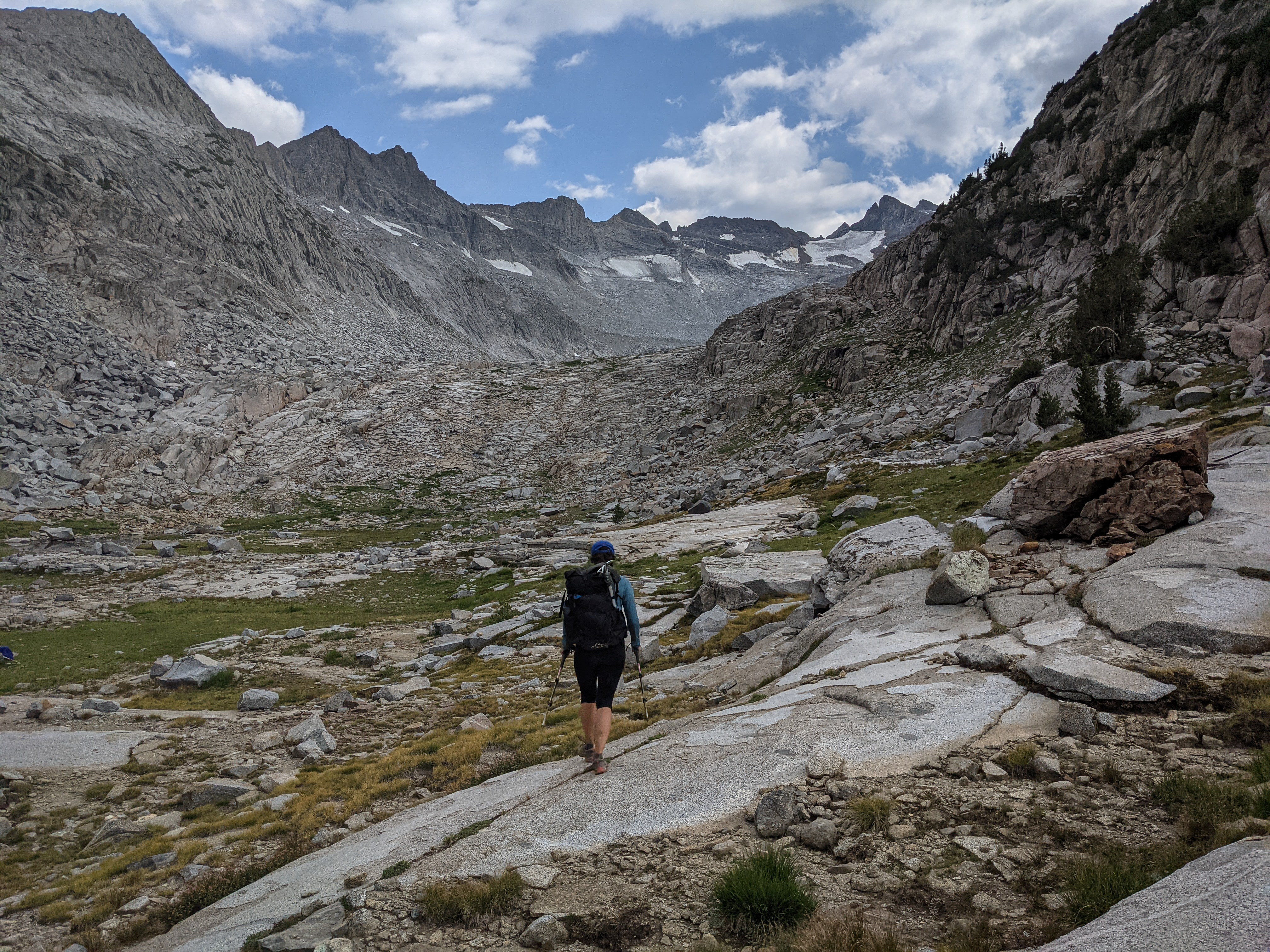 Near the head of the canyon, Mount Lyell and Maclure appeared high above. In this area, the beautiful U-shaped canyon comes to an end and the 2,000’ climb to Donohue Pass begins. It was a little rough to transition to climbing after about 9 miles of easy walking, but we survived.