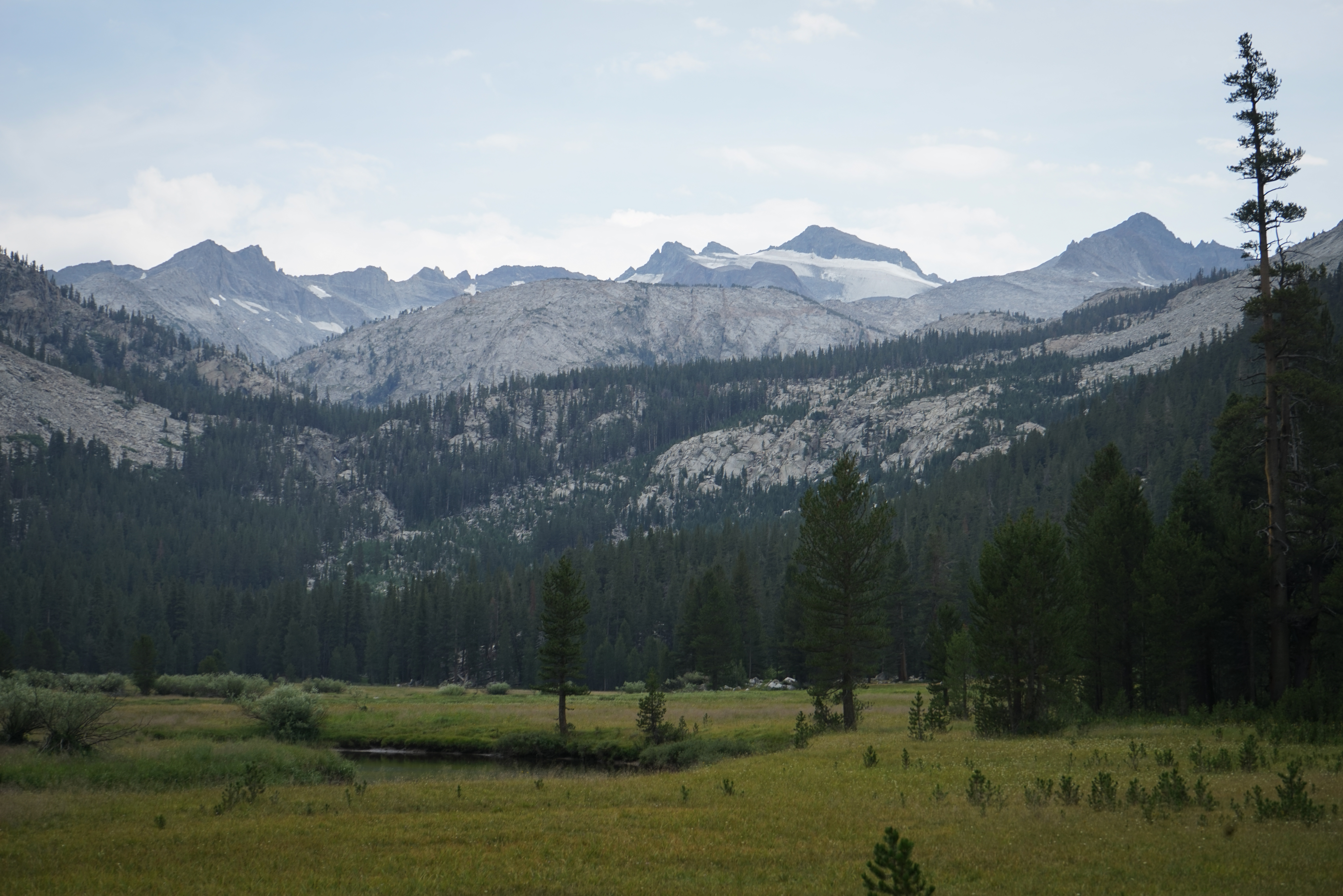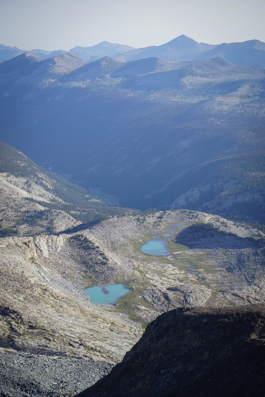 Lyell Canyon, and the glacially fed lakes near our campsite far below.