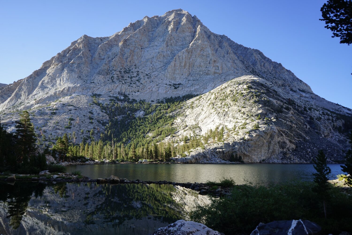 All of this during a week I had taken off for hiking too! On Monday night, after having sorted all of this out, I sat down to figure out some reasonable objective for the next day. I could get up early, but needed to be back before too late to move over to our new place. After some deliberation I settled on Royce Peak and Merriam Peak, a pair of SPS peaks just west of the Sierra Crest in the Pine Creek area. I had visited this area two years ago on a backpacking trip, but hadn’t climbed any of the mountains. It would be a longer outing, 20-ish miles with a good amount of cross country, but I knew I could get up and down the Pine Creek Trail quickly. And I also knew I didn’t have to climb both peaks.