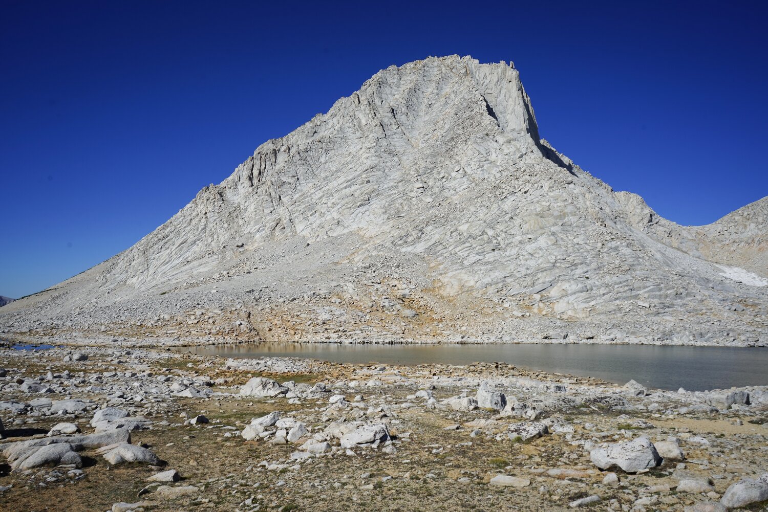 From this angle, Merriam Peak looked particularly impressive. It’s easy to see why it was at one time called Isosceles Peak. Around here I ran into a solo backpacker wandering around. We talked for a bit and he told me he planned to camp in the area and take some star photos in the night. He explained all of this stuff he had studied up on about how at 2:30AM the moon would set and the milky way would be at just the right angle over Merriam Peak. It sounded like he knew his stuff and I’m sure he got some incredible shots.